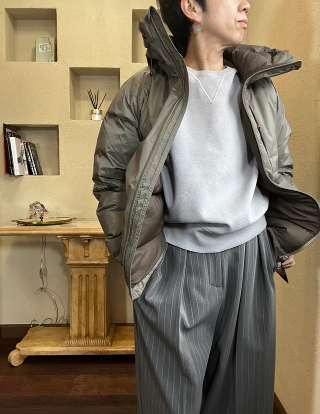 身幅にゆとりのあるリラックスシルエットのノーカラーダウンコート フーディーやストールとのレイヤードを楽しめるノーカラーデザインは 襟元の化粧品付着のストレスもなく、安心して着て頂けます 軽量でフワッとダウンを纏う事ができ、腰回り腿まで暖かく着て頂ける着丈感 切り替えやステッチを極力減らしたシンプルなデザインは モードからカジュアルまで幅広くコーディネートして頂けます 内ポケットにはカイロも入れて頂けます カラー ブラック サイズ WM(Mサイズ) 素材 表地 ナイロン100% 裏地 40dn ナイロンタフタ ダウン リサイクルダウン (650FP) ダウン量 140g