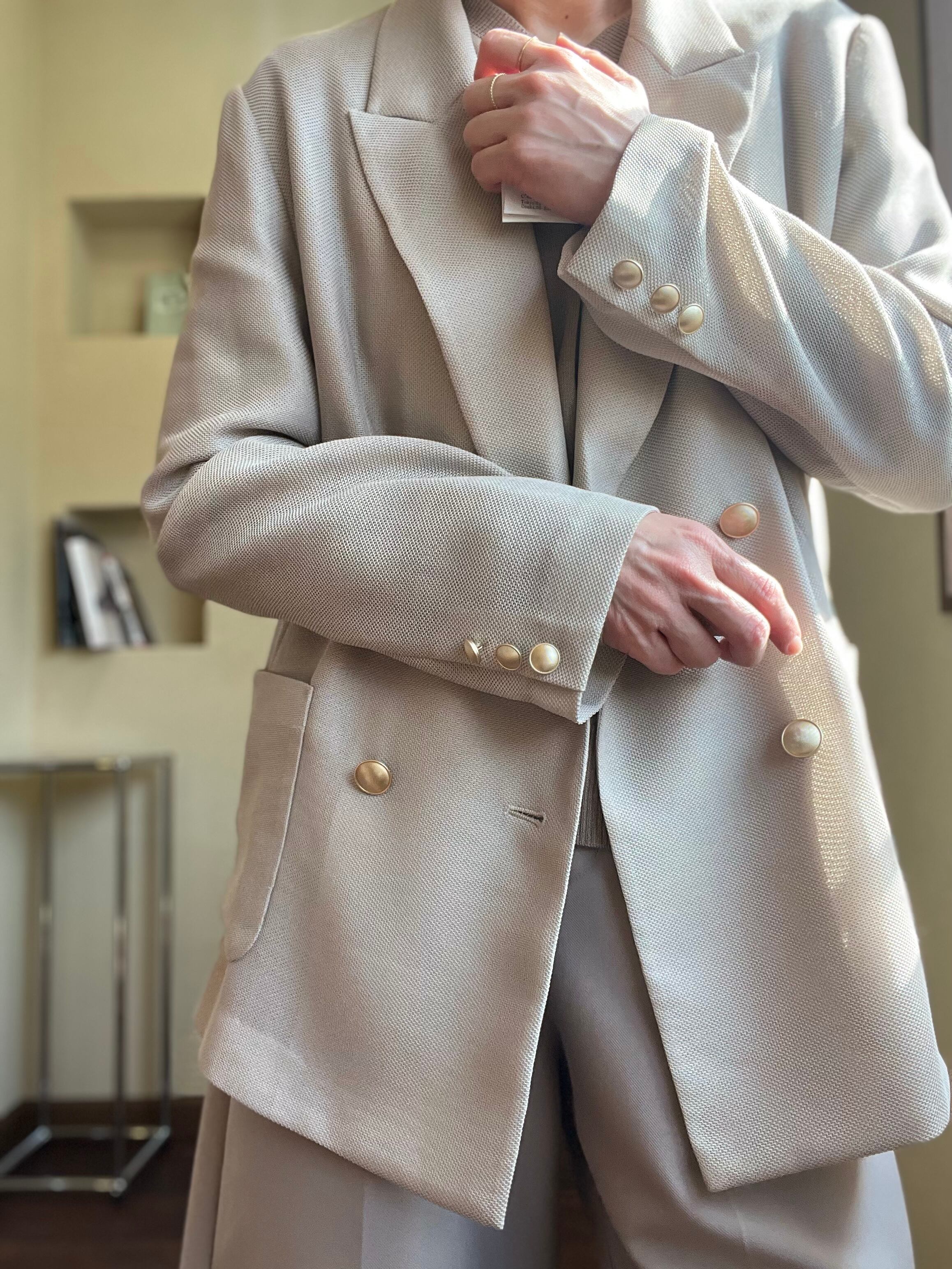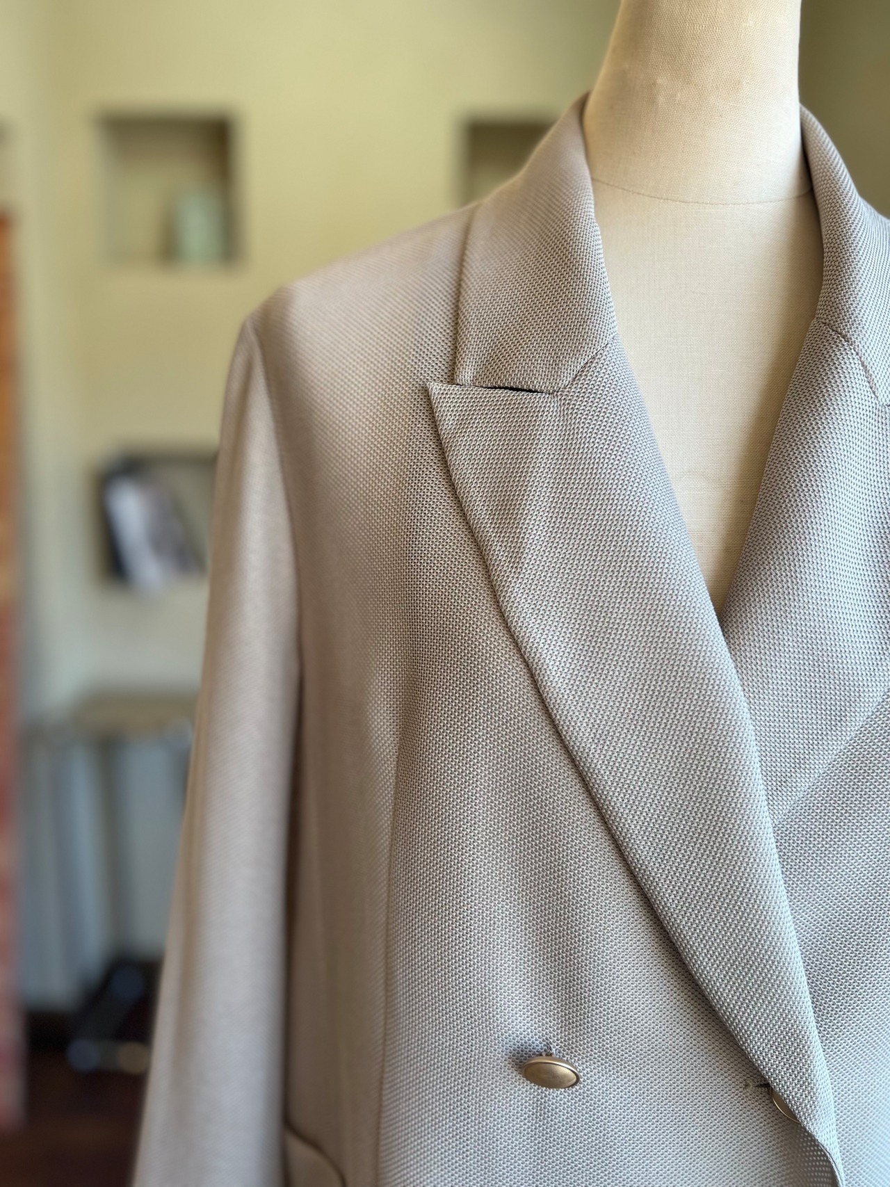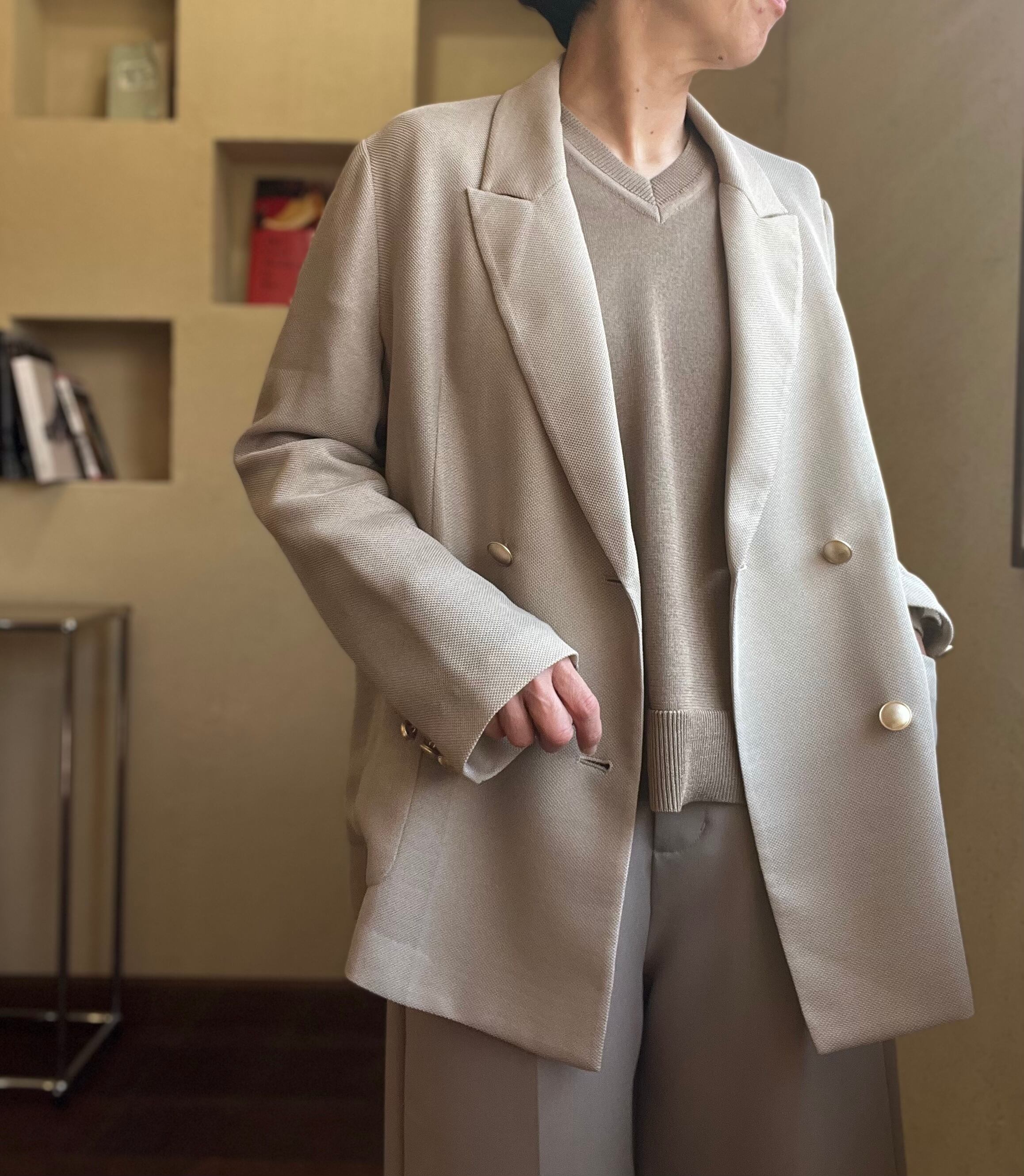 メッシュ生地の程よいサイズ感のダブルブレストジャケット