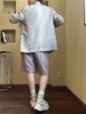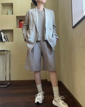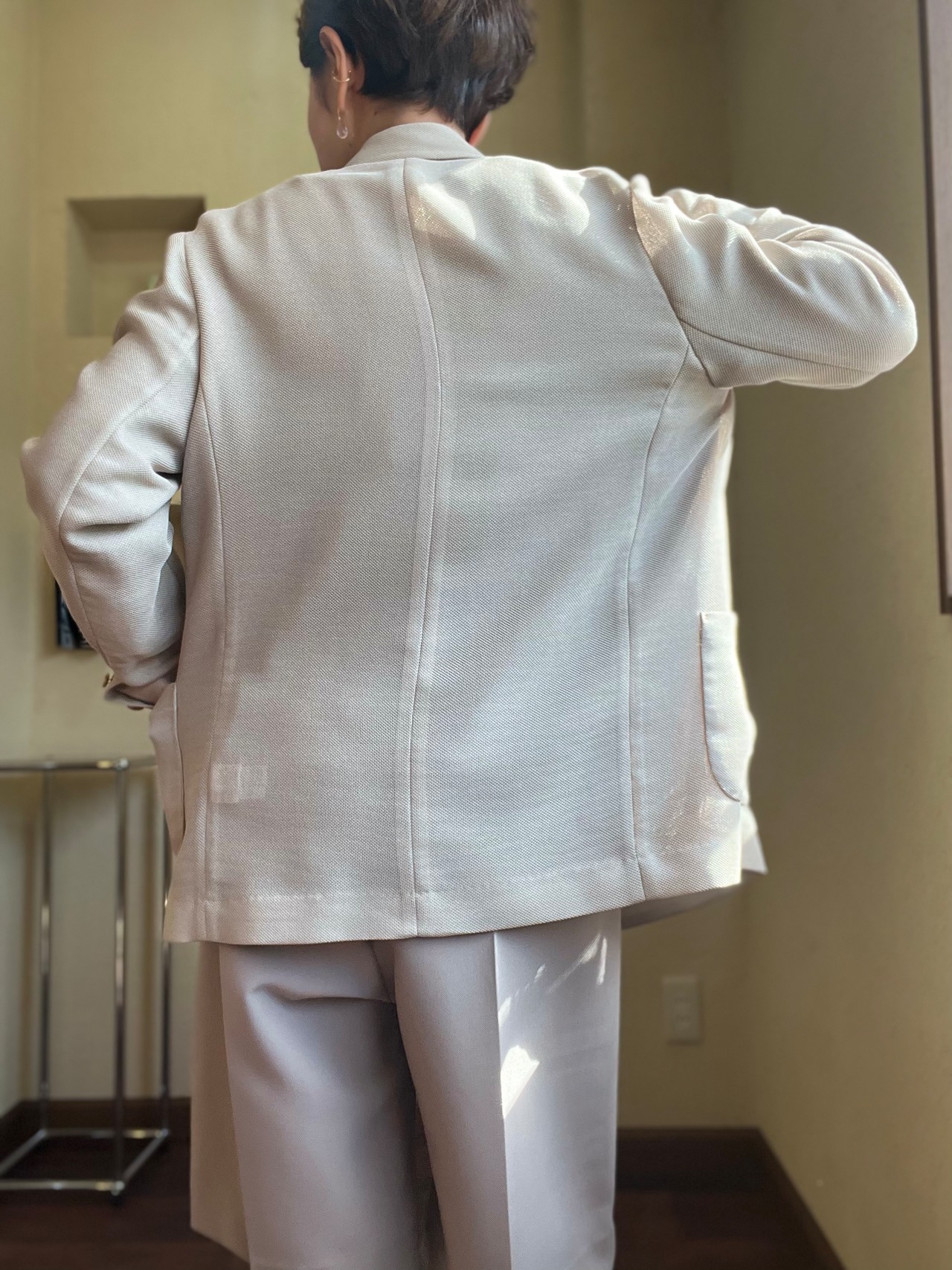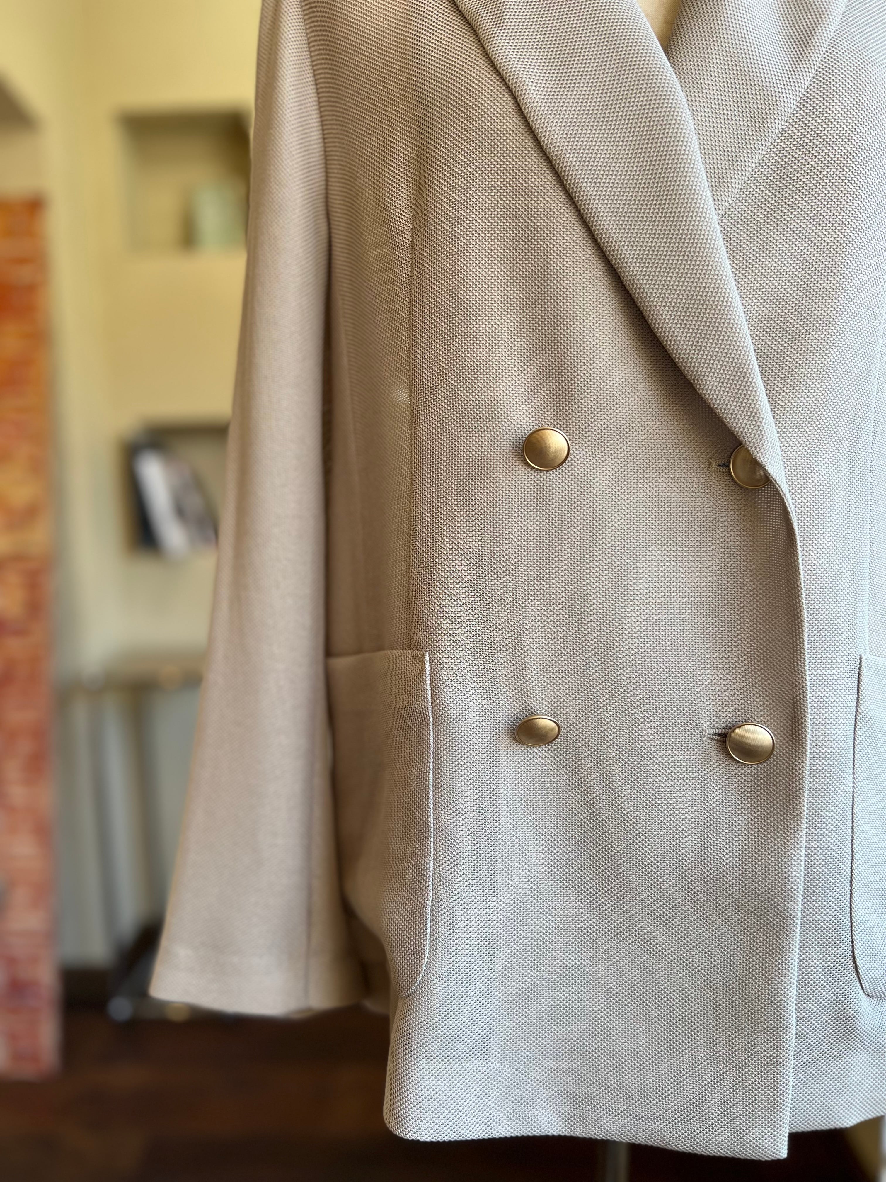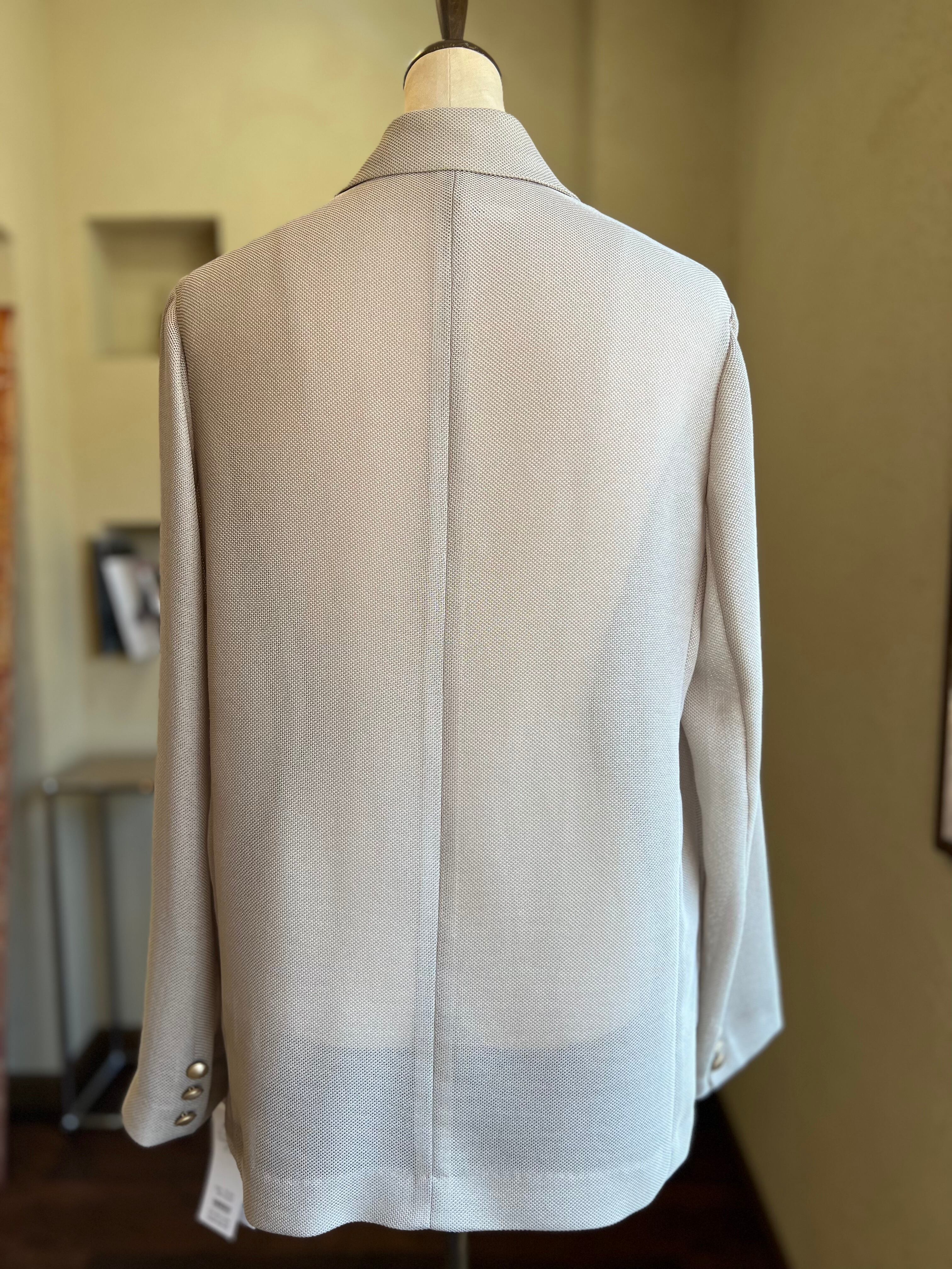メッシュ生地の程よいサイズ感のダブルブレストジャケット