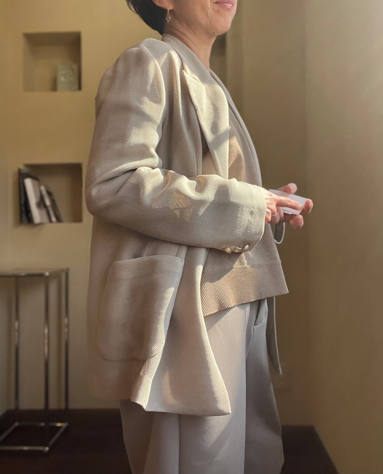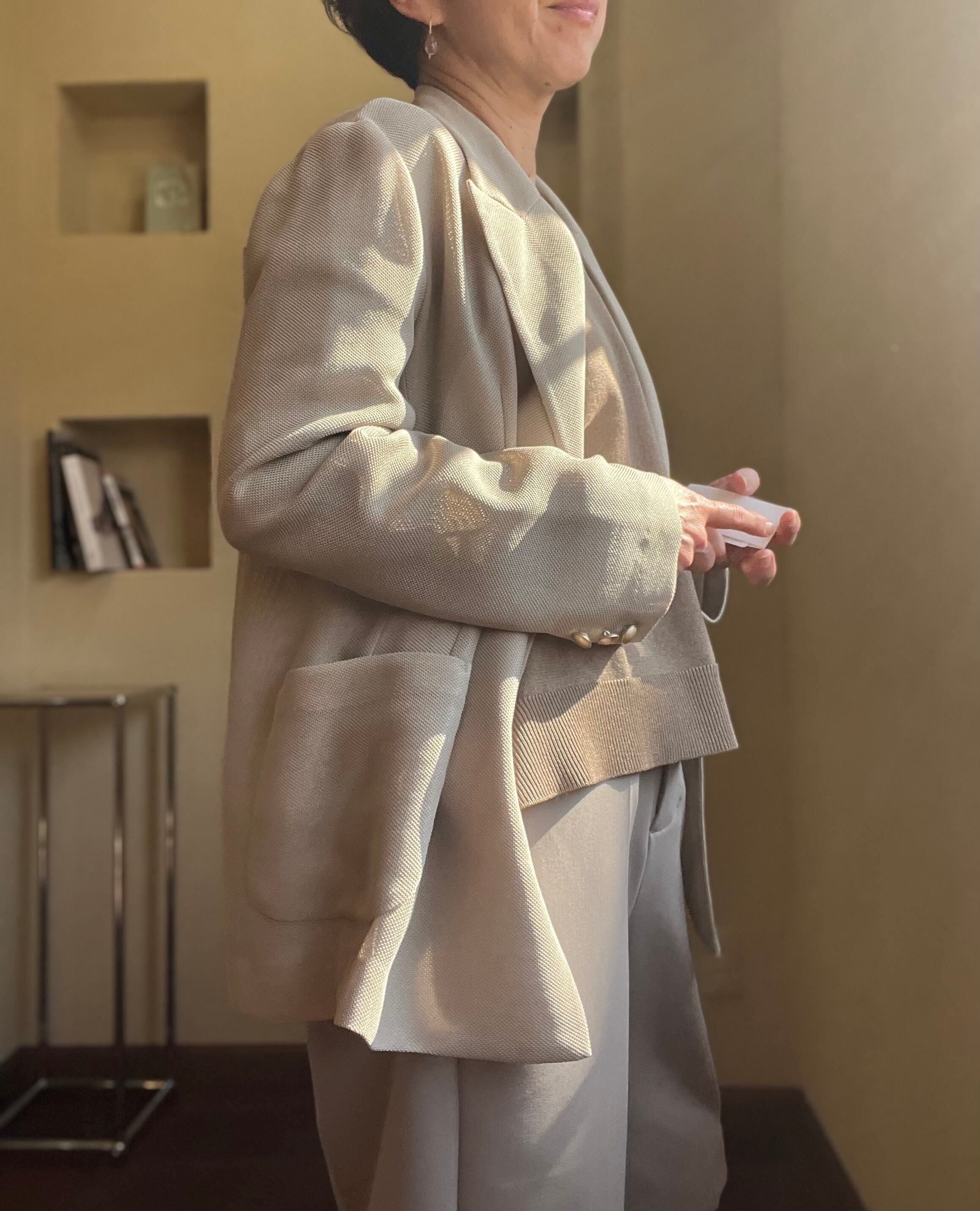 ジャケットのきちんと感もありつつ、カーディガンのようなリラクシーな着心地が魅力