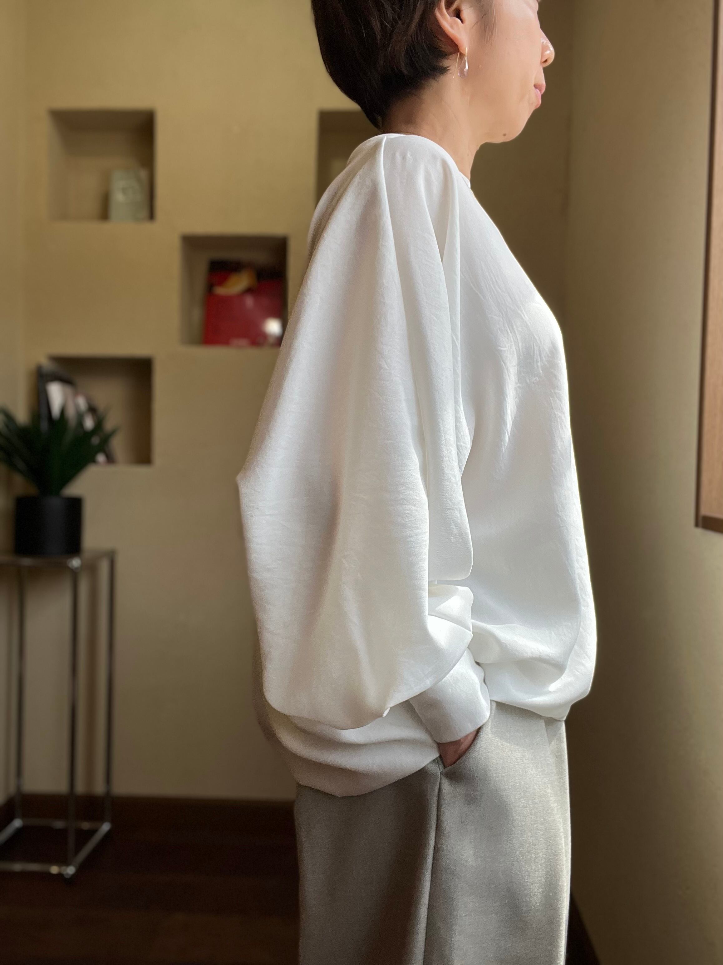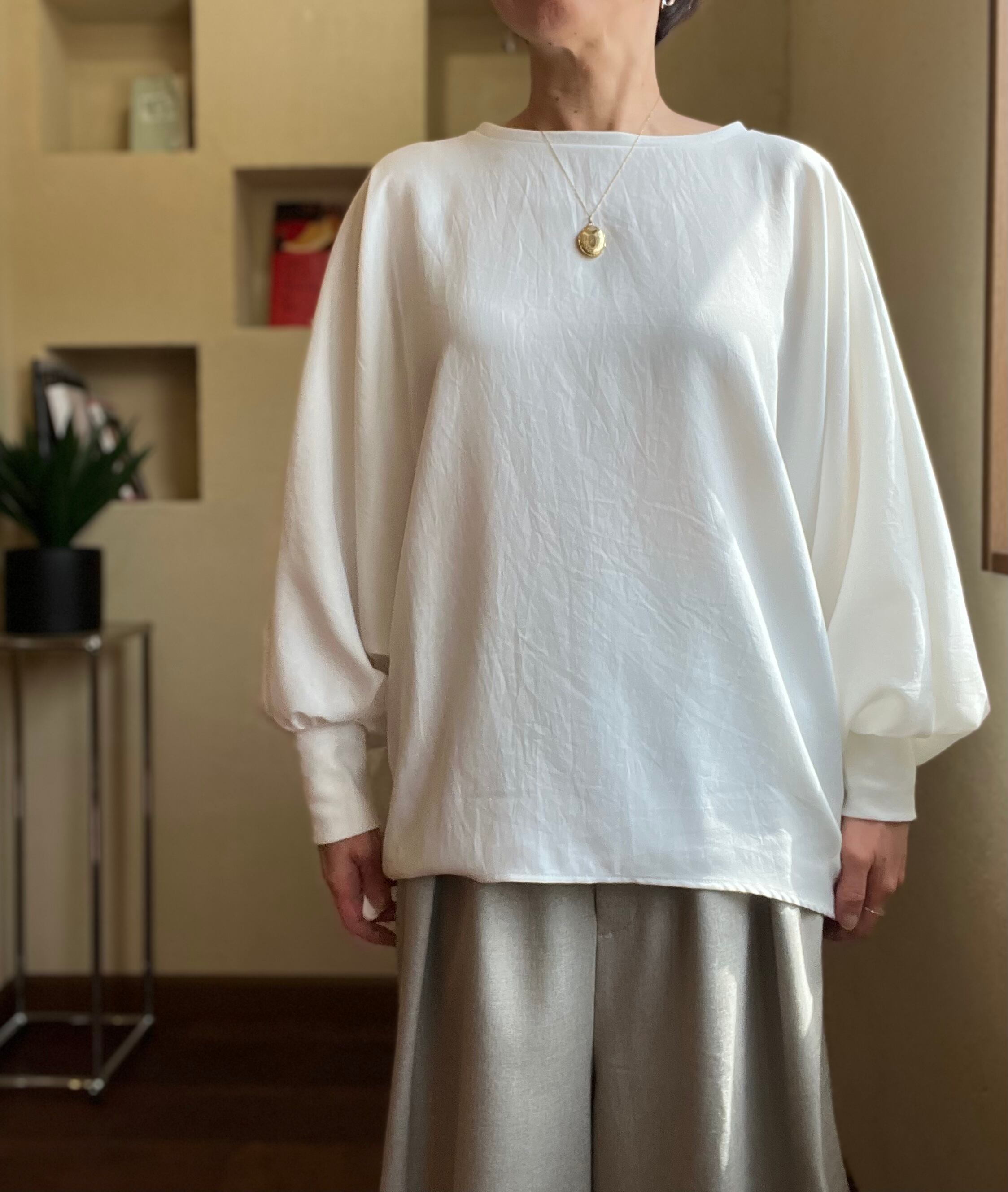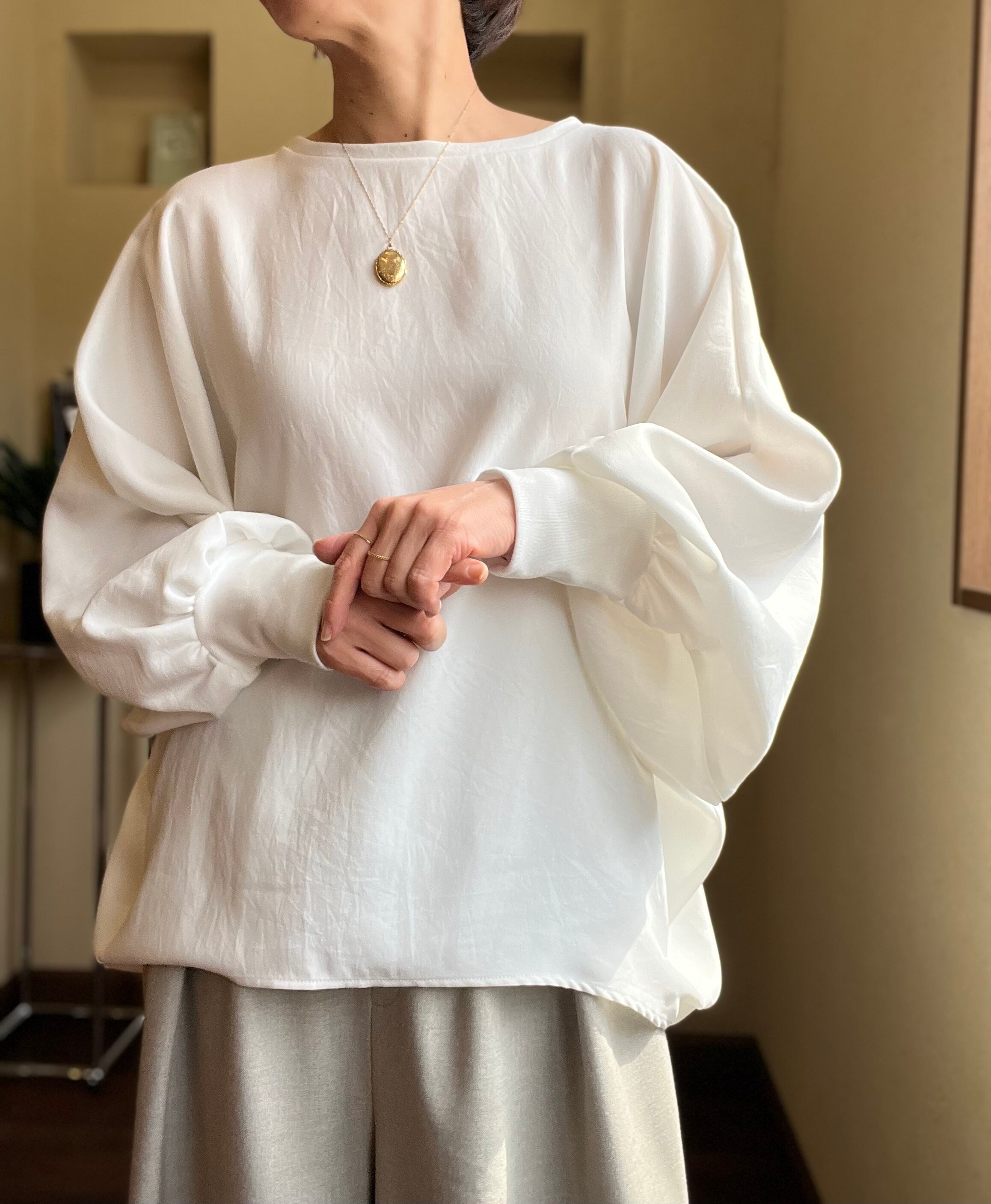 後ろ裾がバルーンのように立体的なフォルムの着映えするブラウス