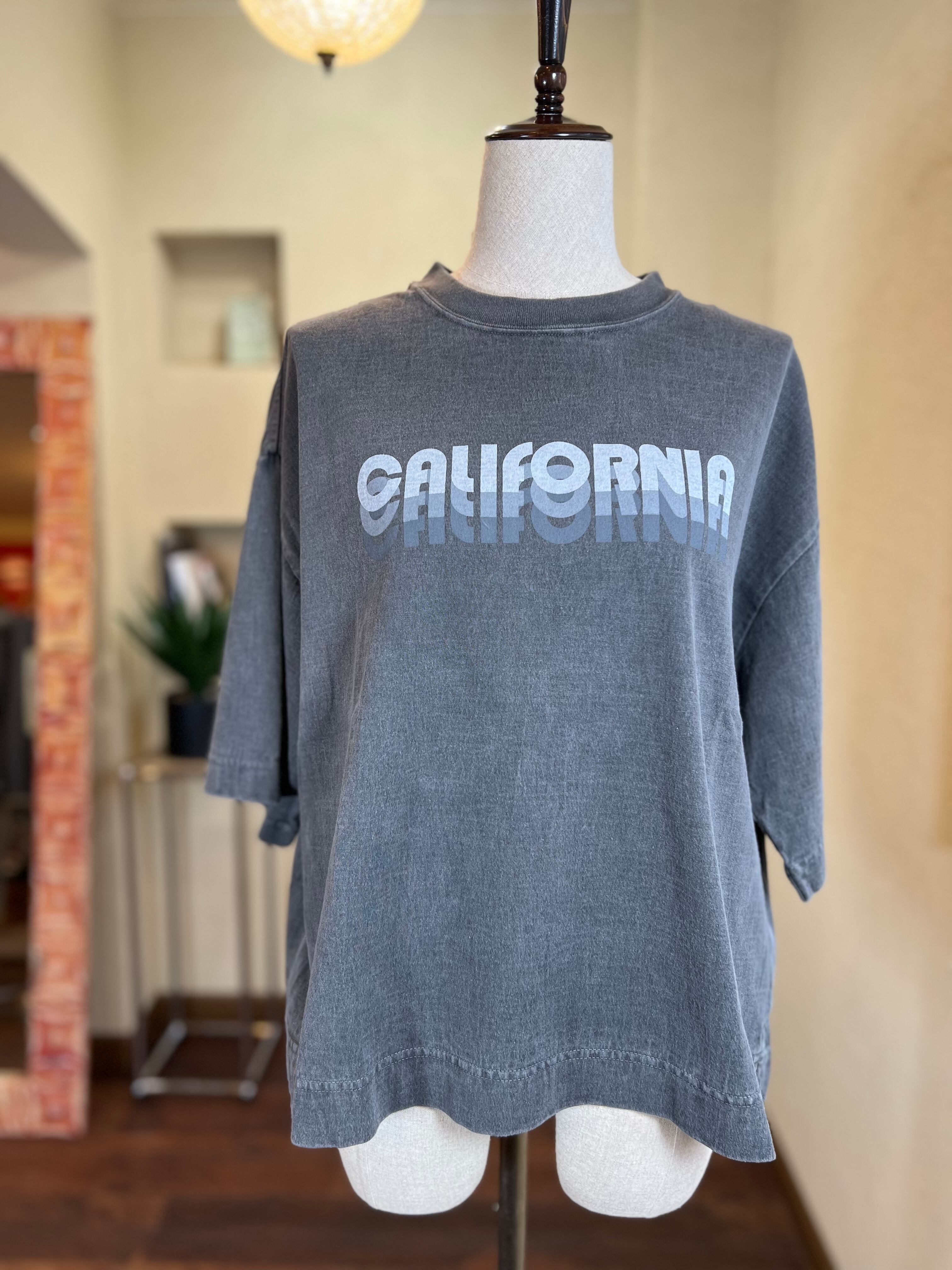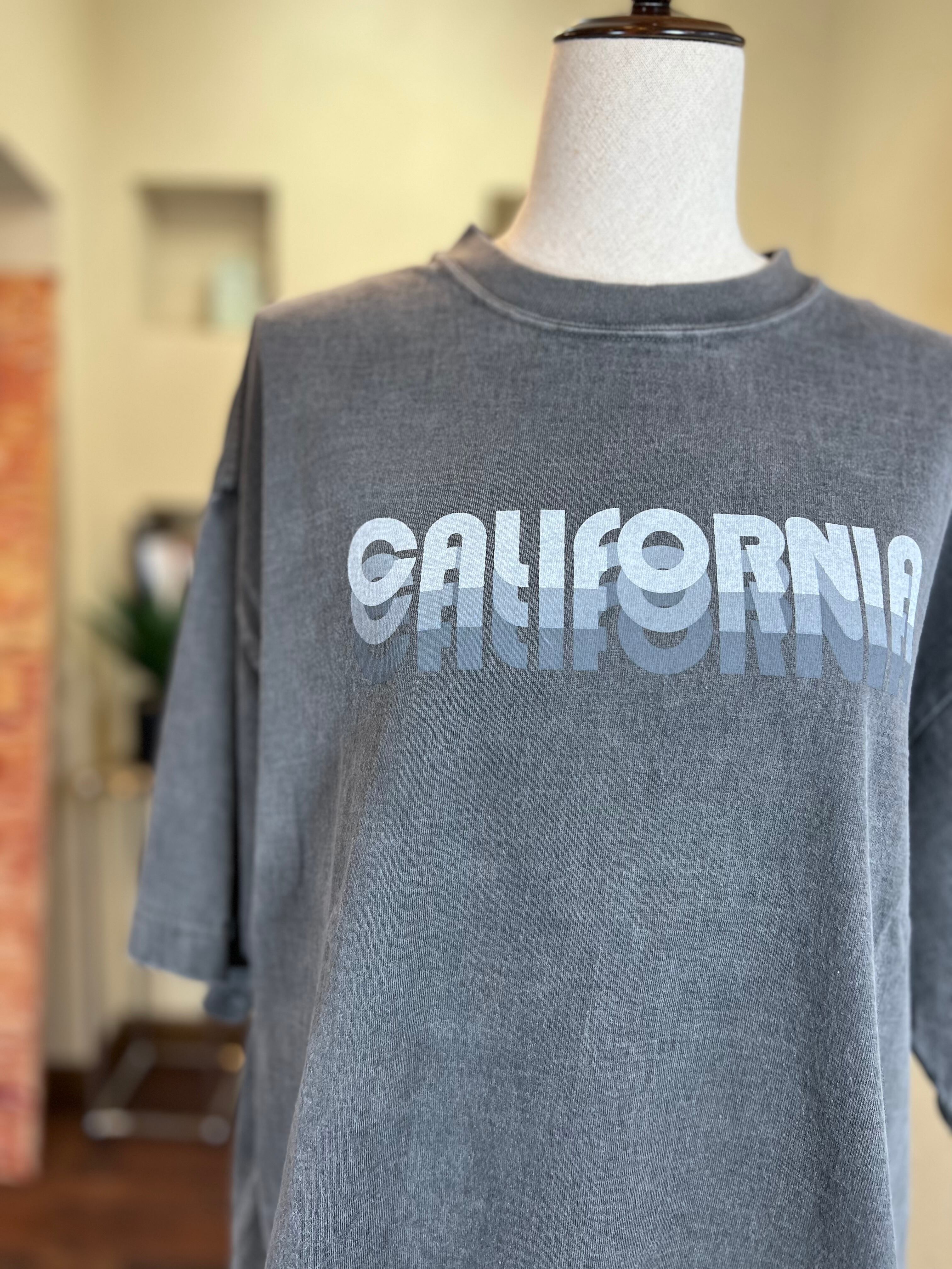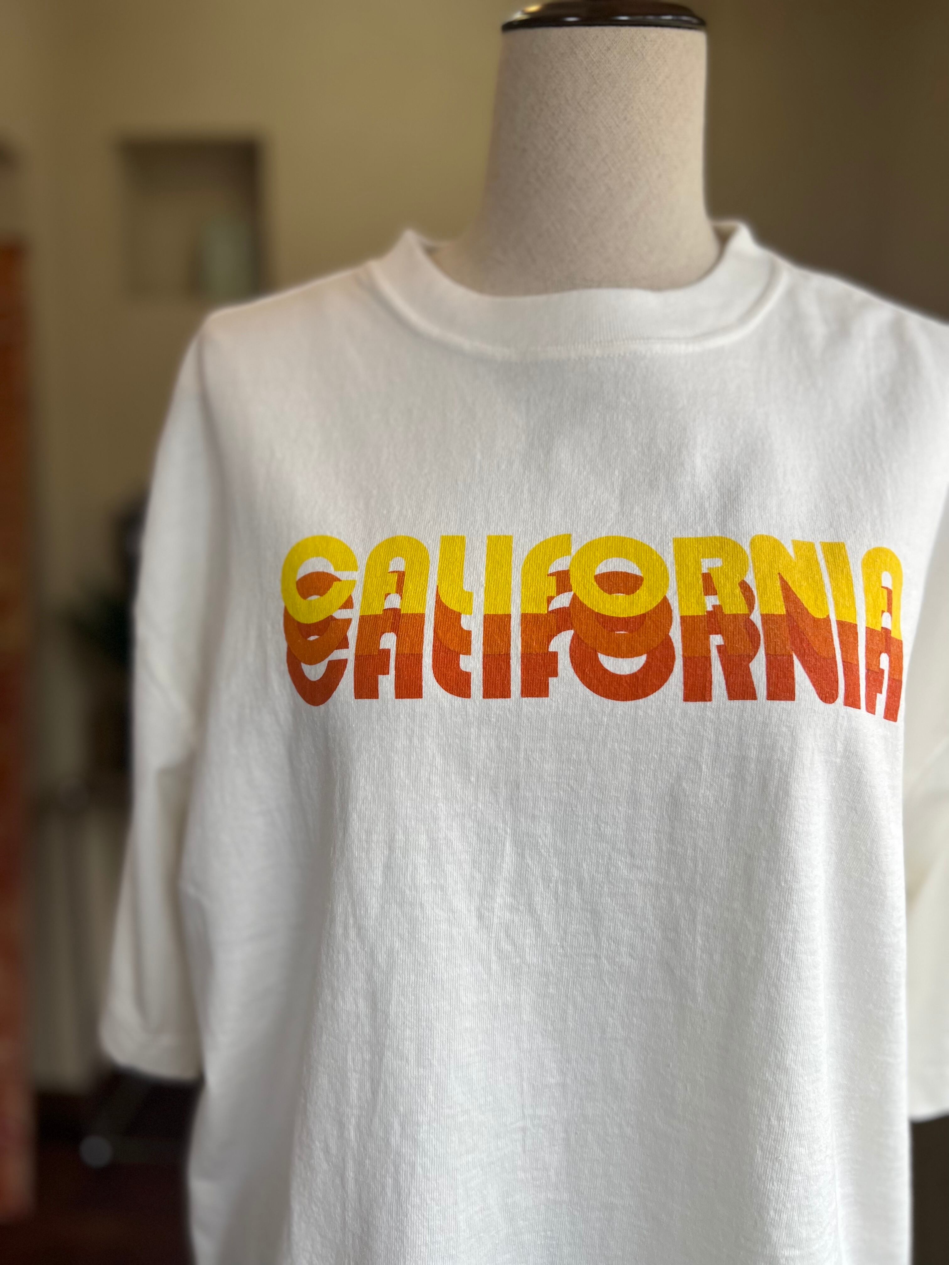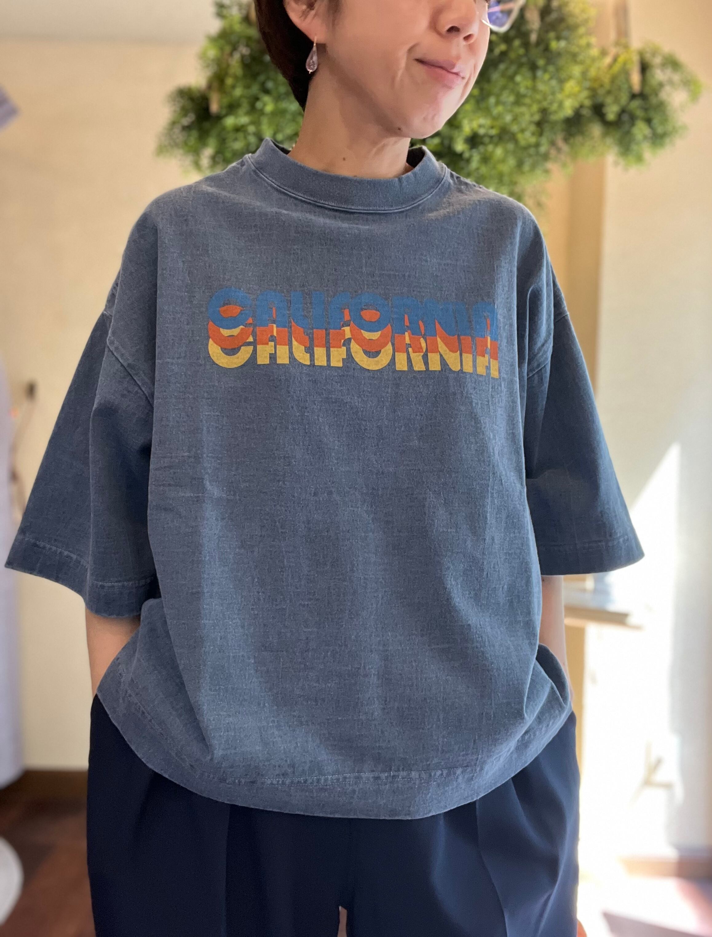 「CALIFORNIA」をグラデーションにかけたシンプルなギミックをピグメントダイで施した