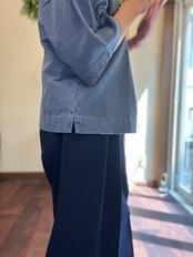 透け感がない使いやすい厚みと肘が隠れる5分袖は、春先の気温にも適し