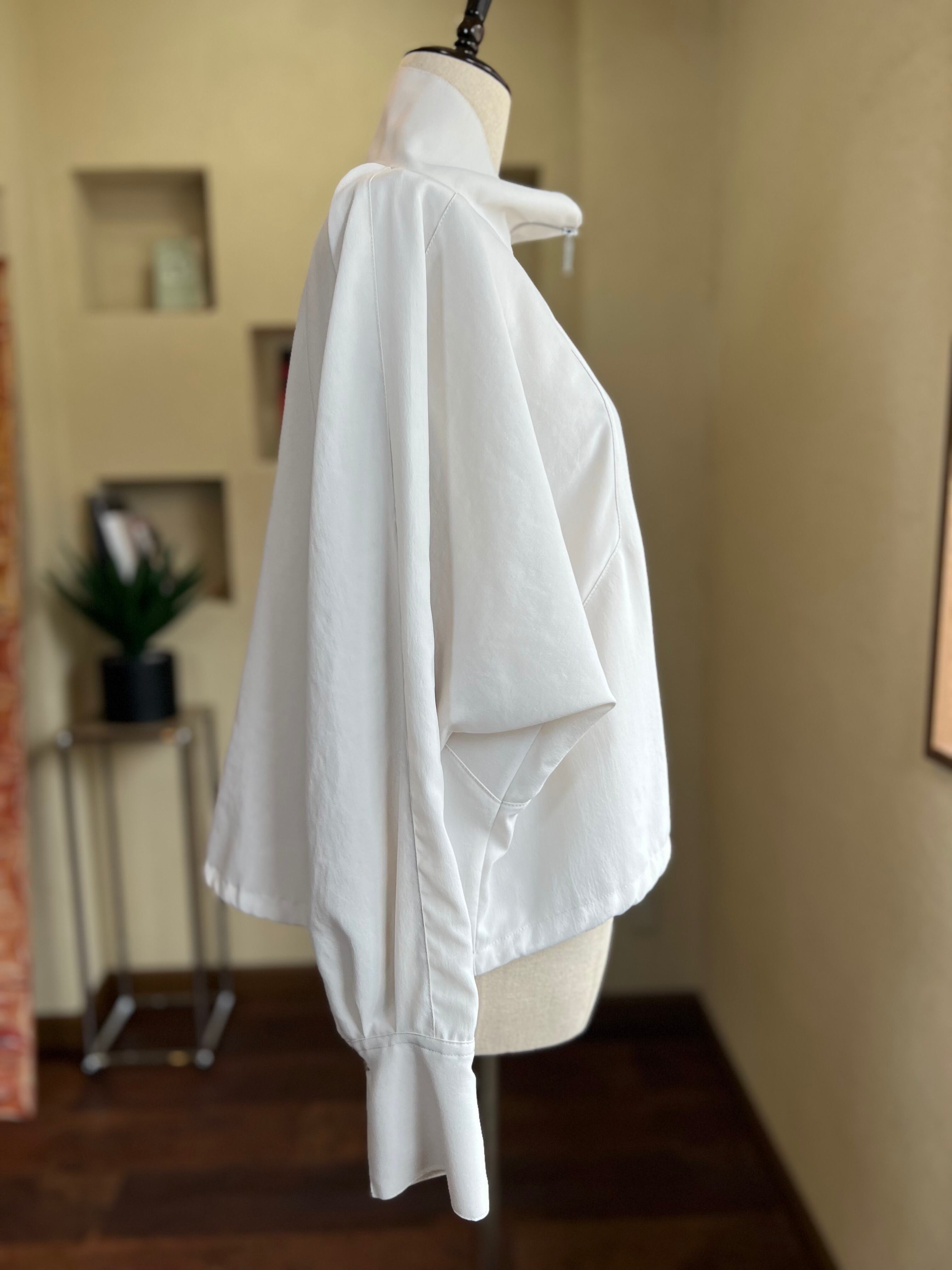 スポーティーな見え方ながら、袖はカフス仕立てで、綺麗めな印象です