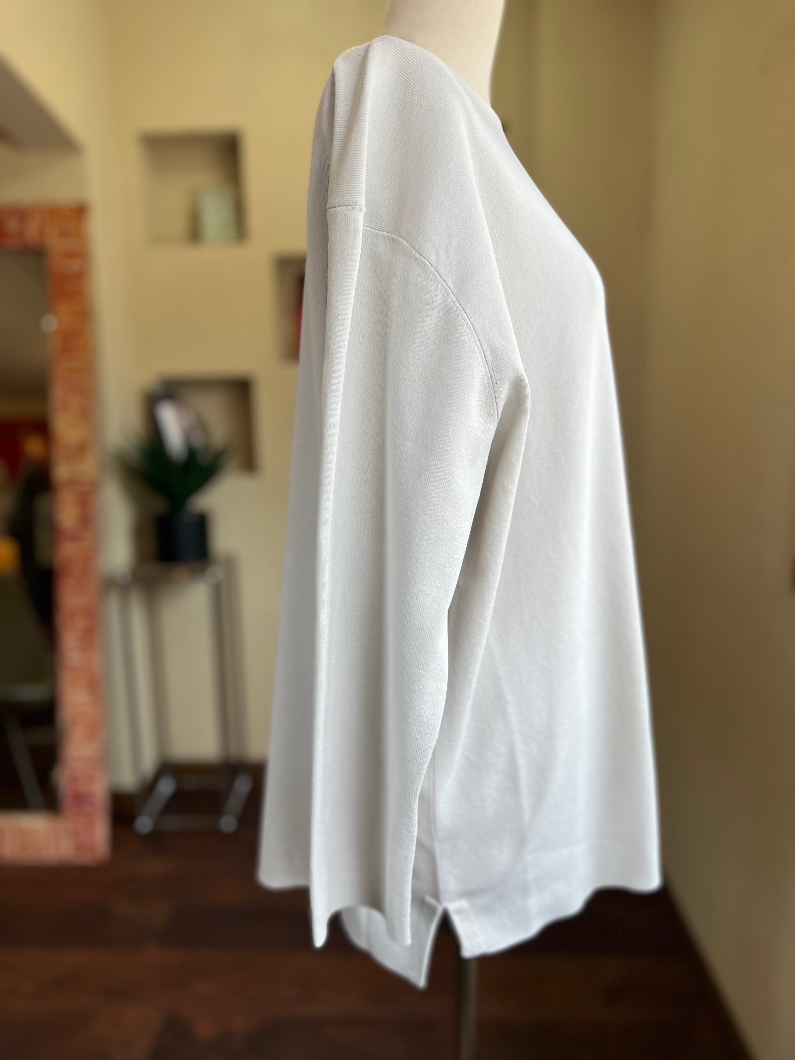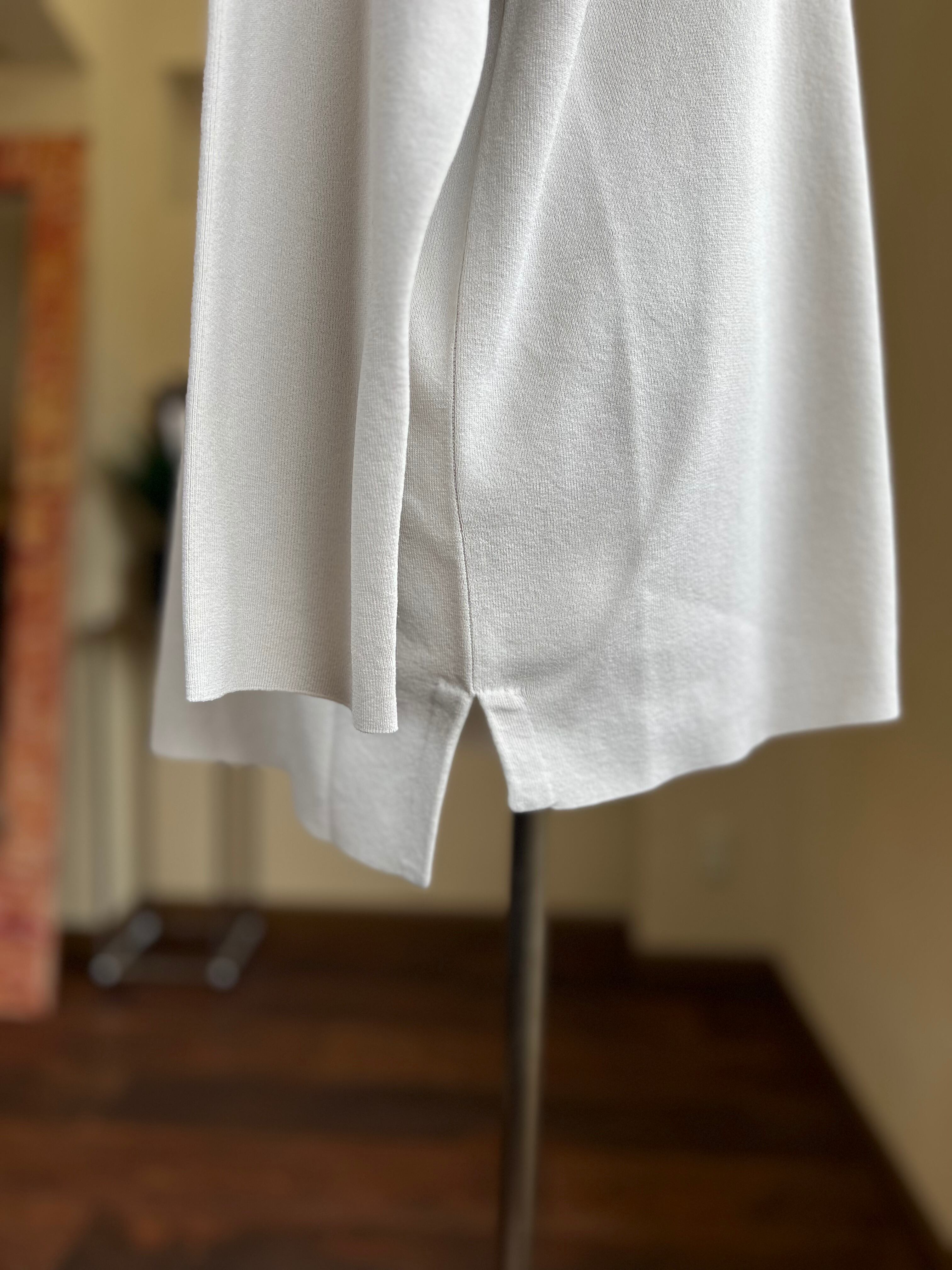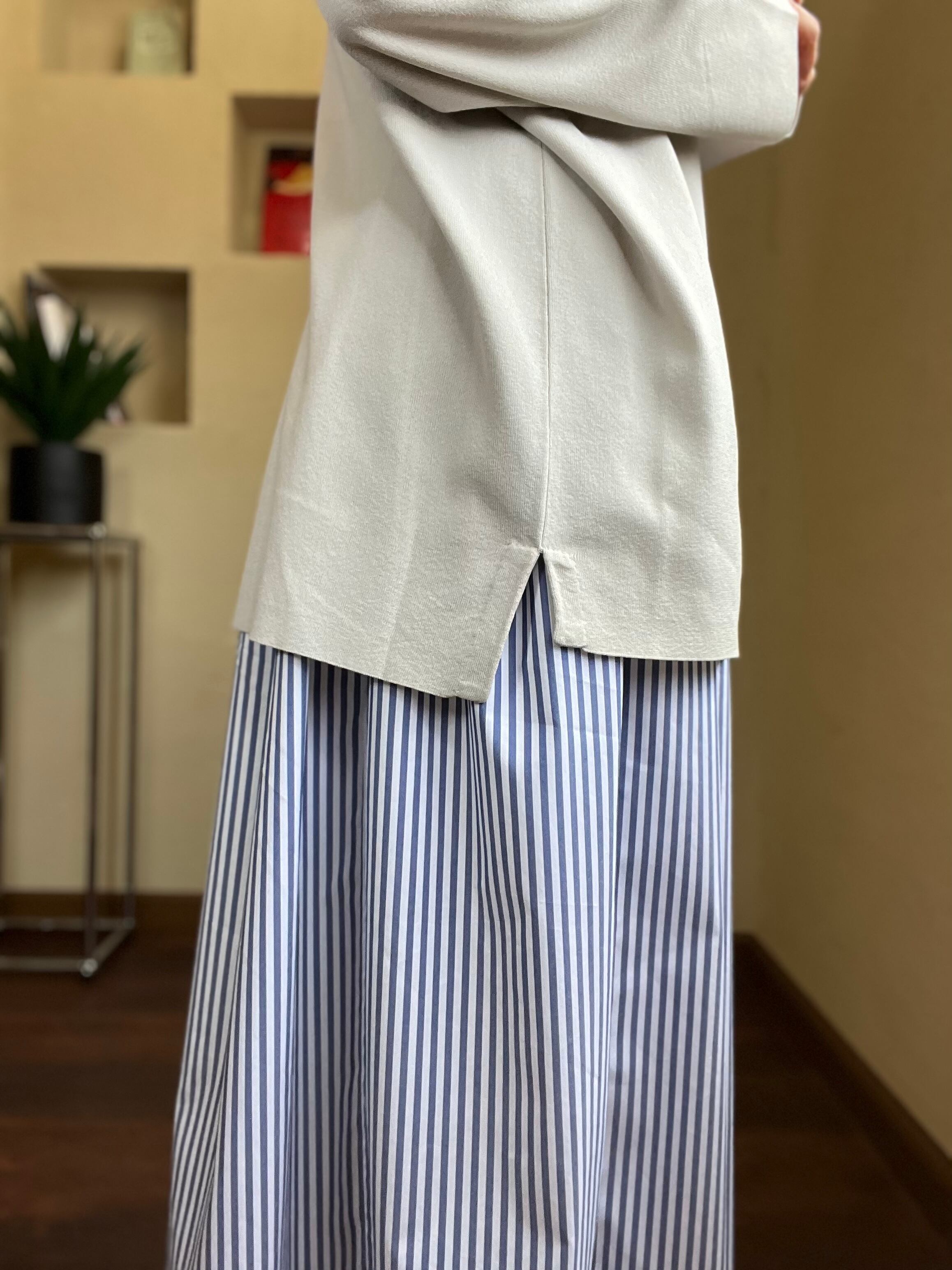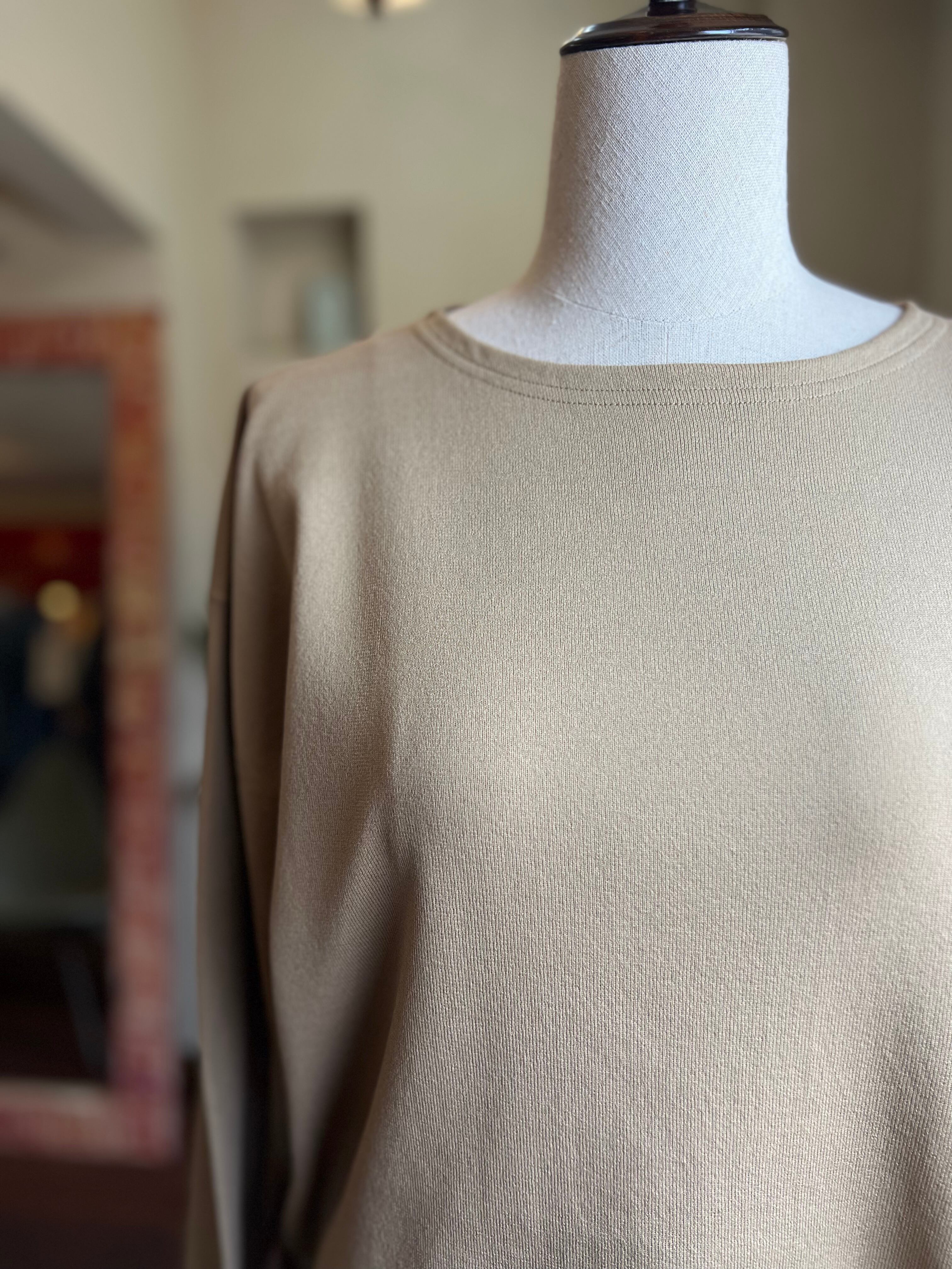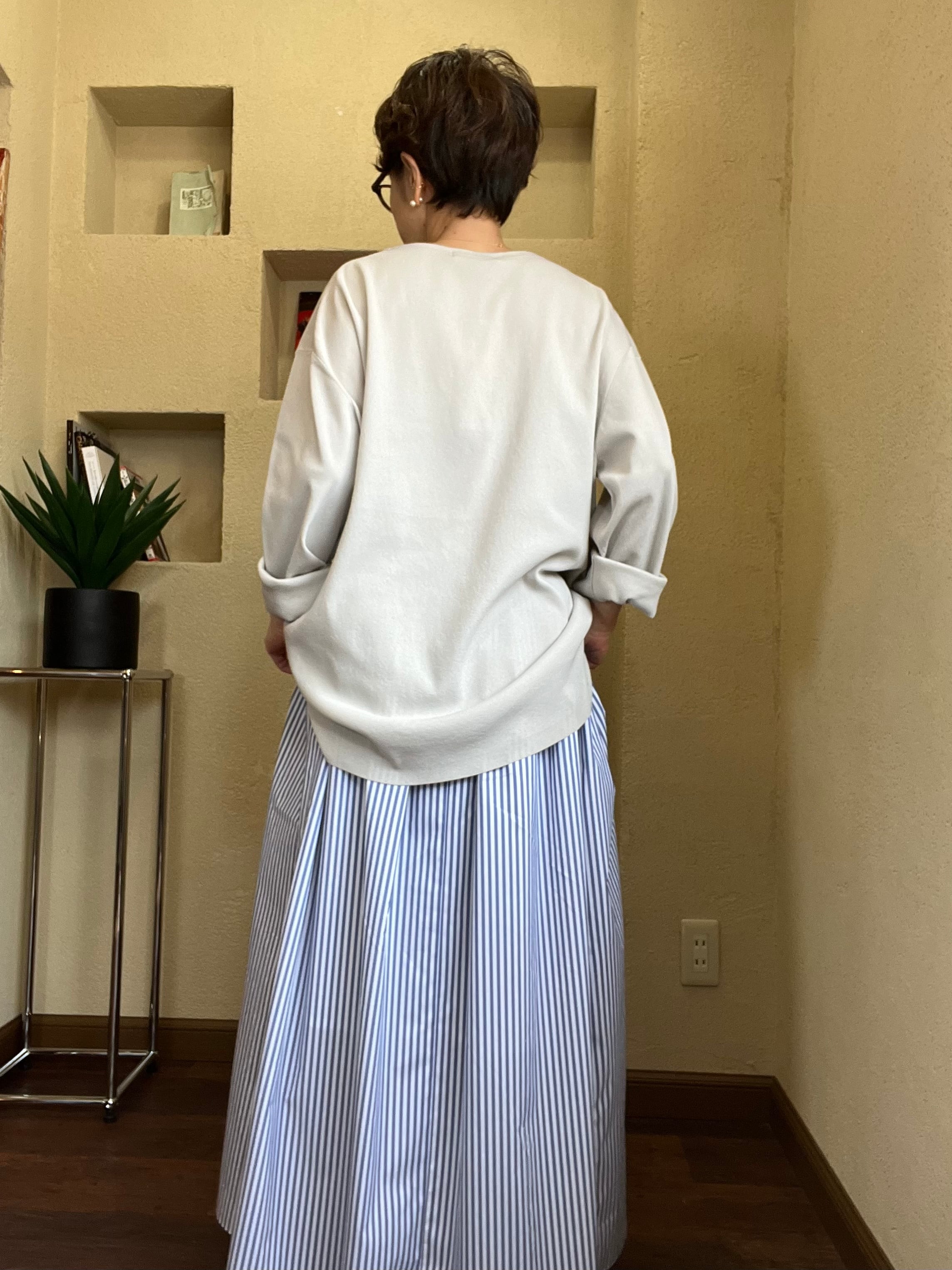 伸縮性抜群なので一枚着としてはもちろん、インナーにシャツと重ねる着こなしもおすすめです