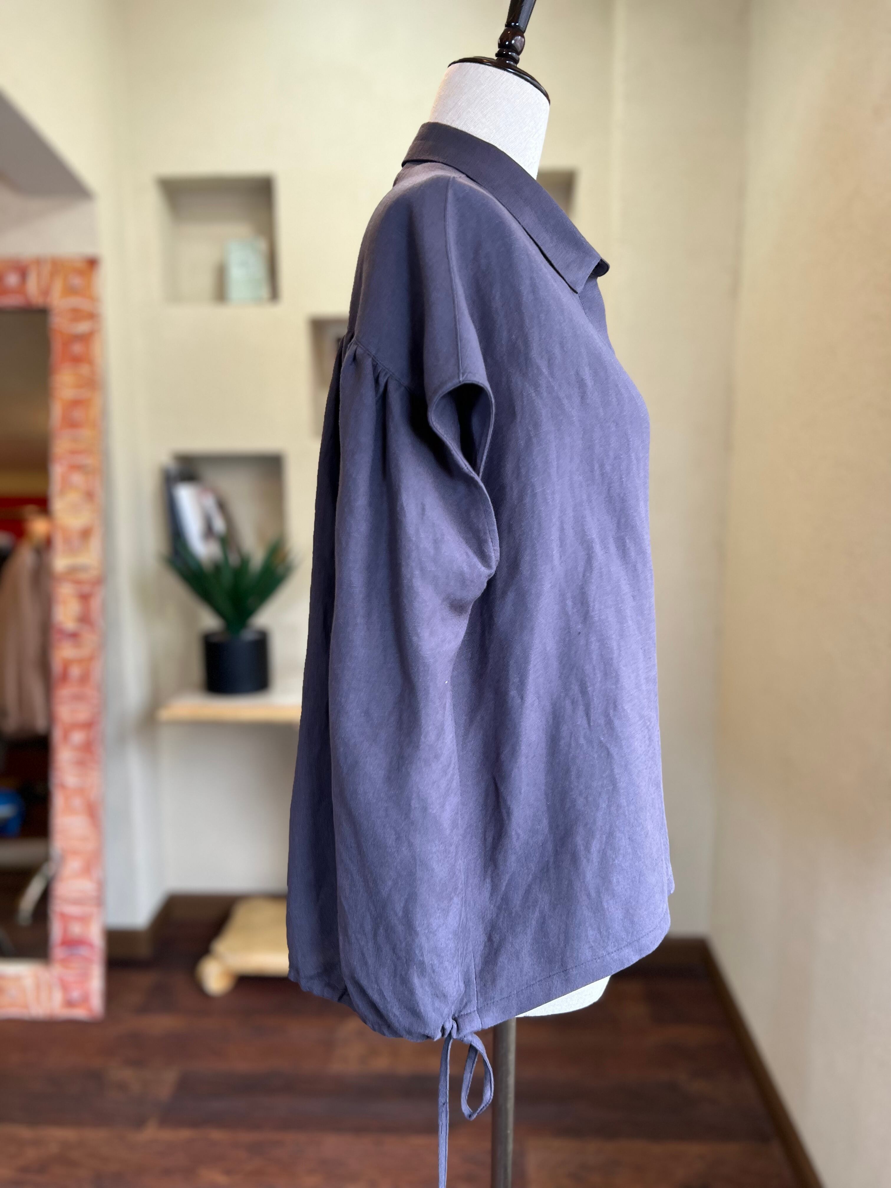 リネン・レーヨン素材の柔らかな肌触りの良い素材を採用したブラウス