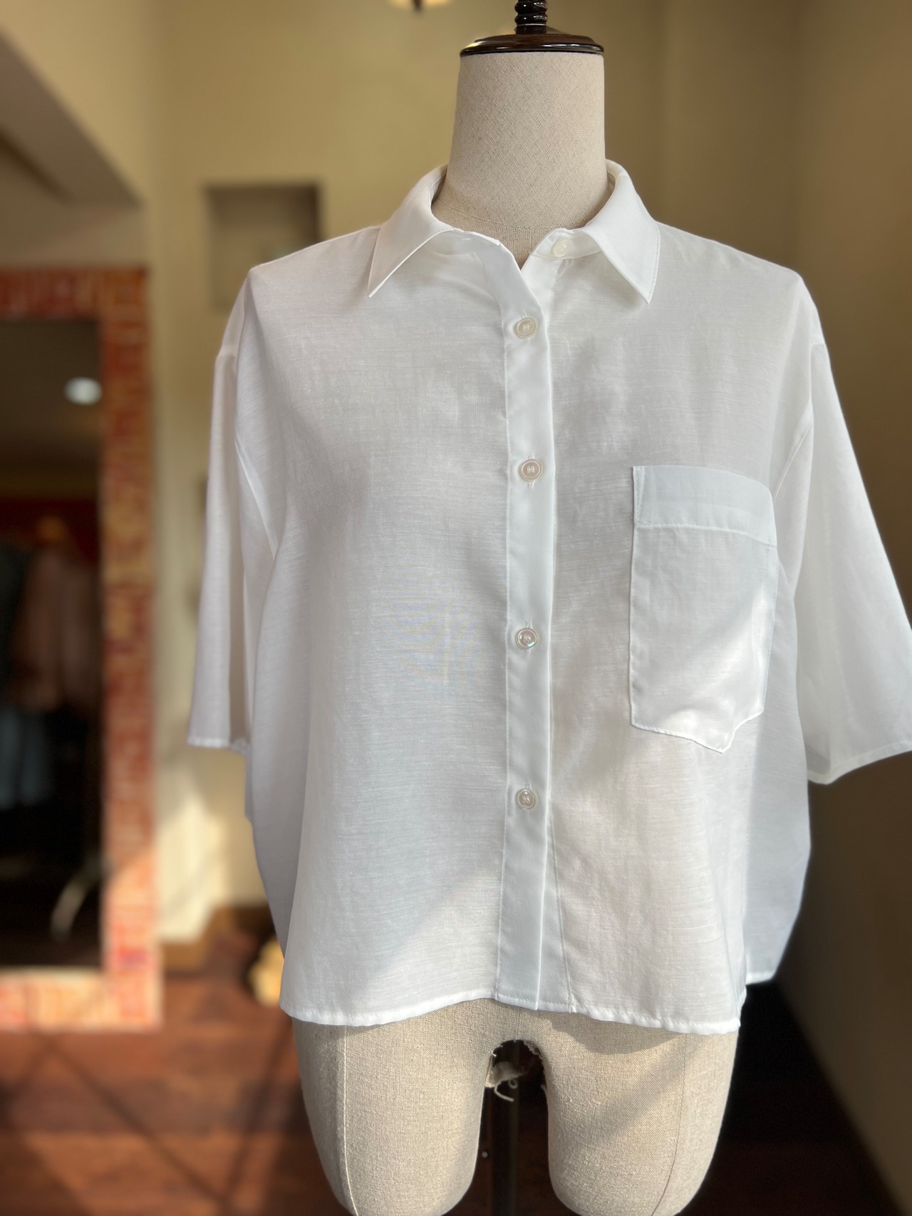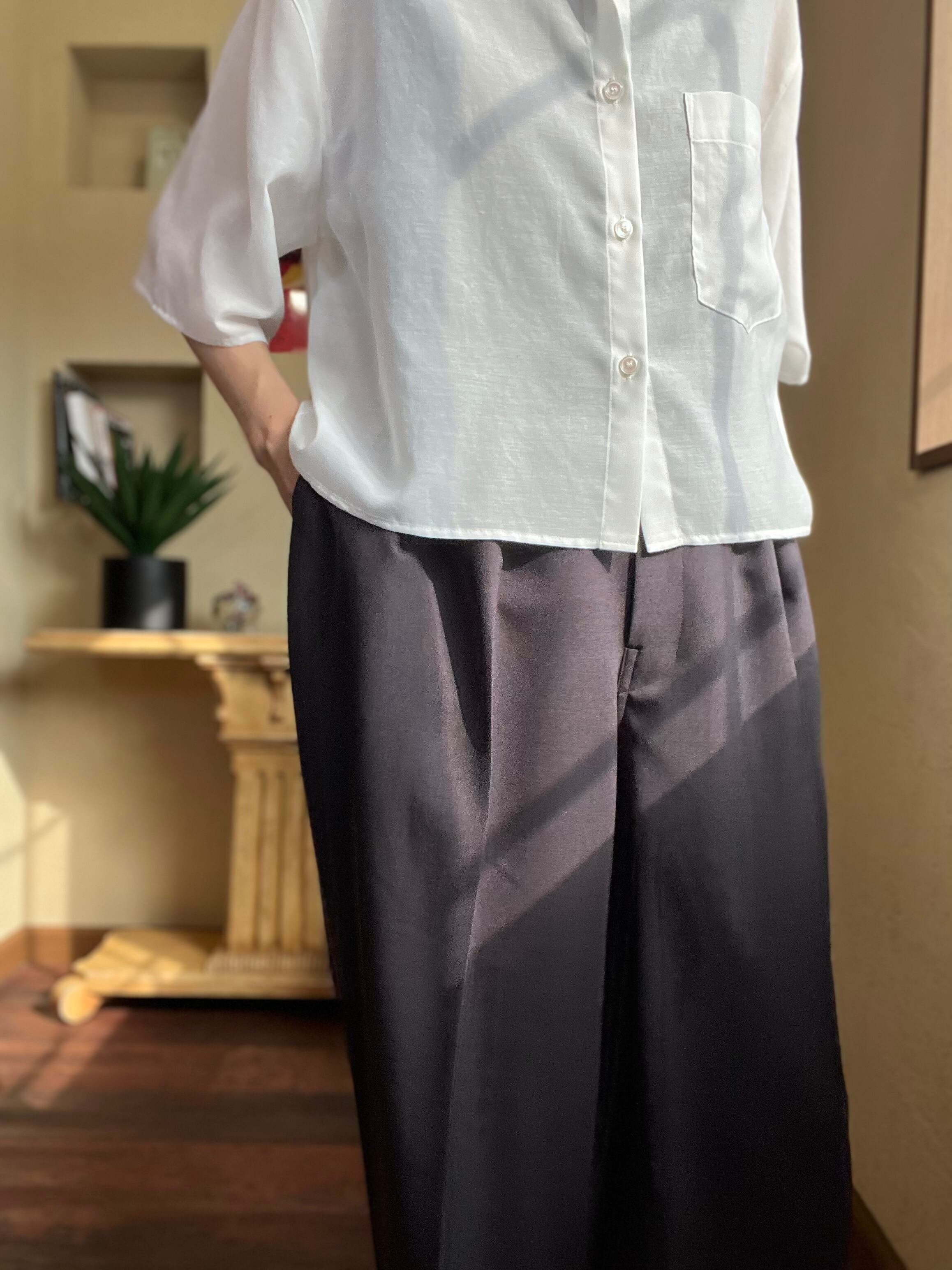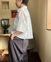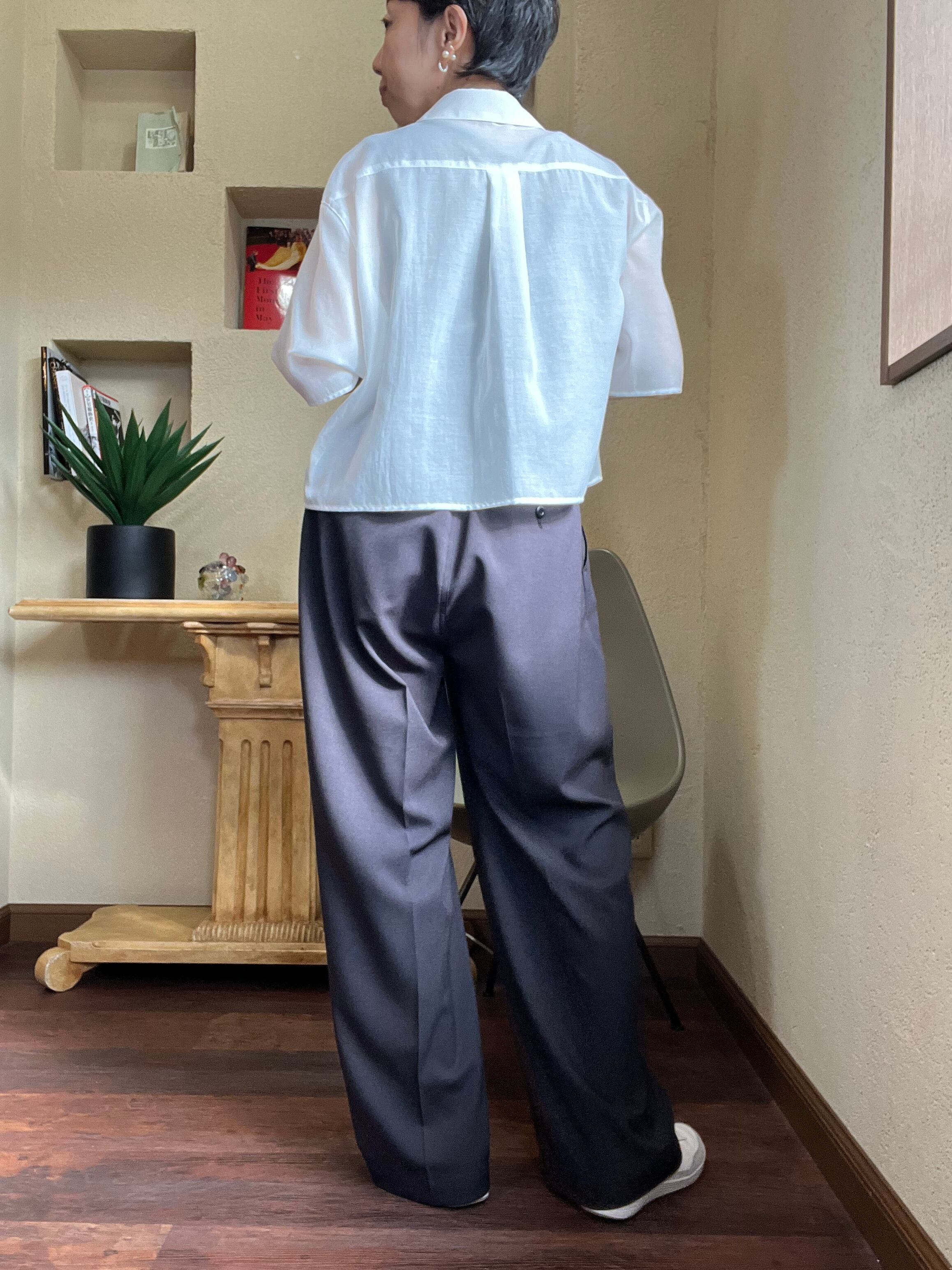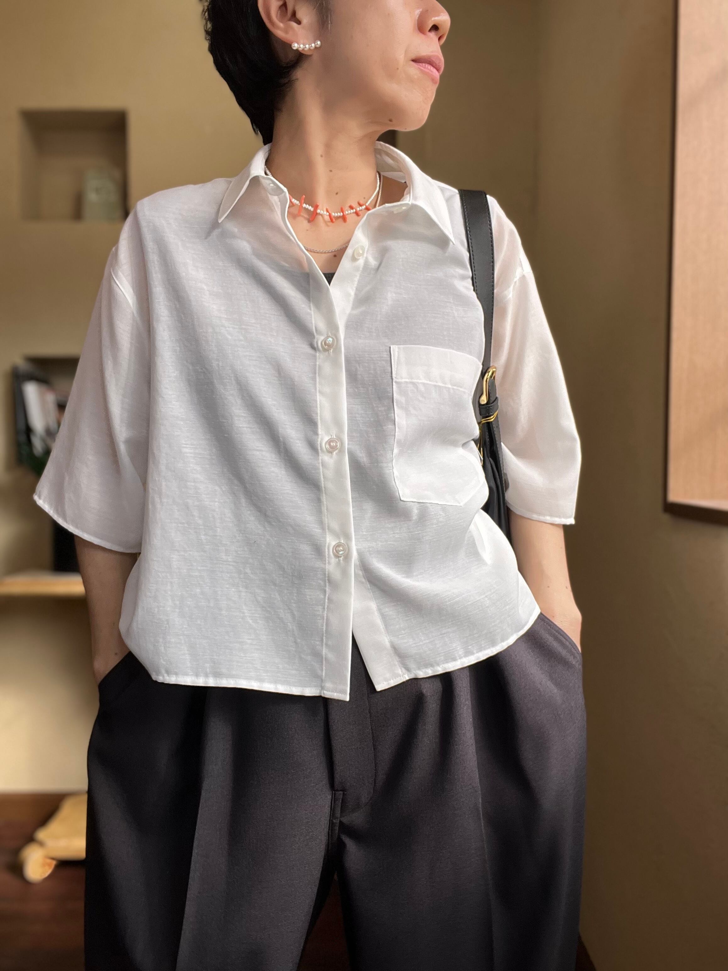 超軽量なブラウスはクロップド丈でボトムとのバランスが作りやすく