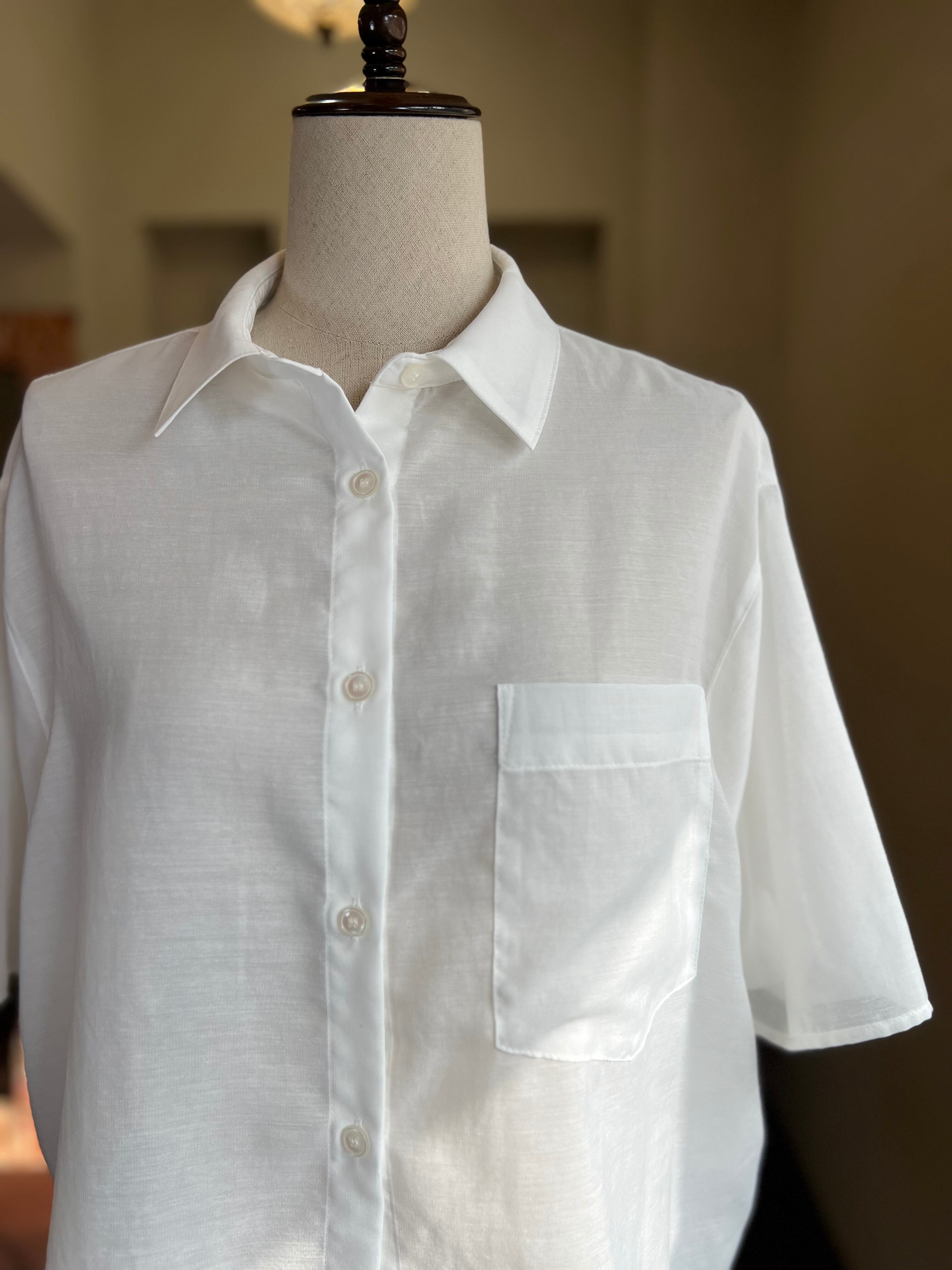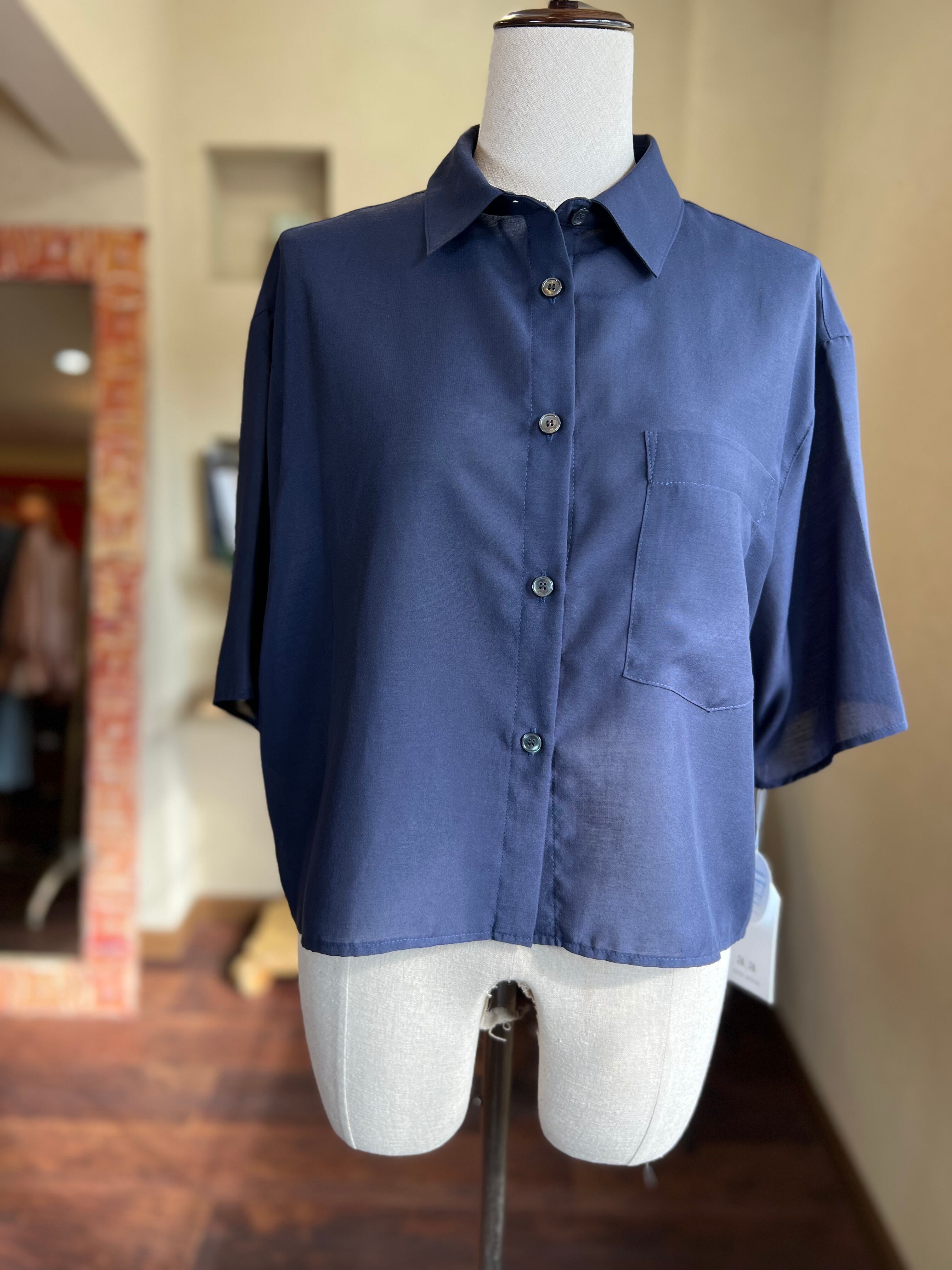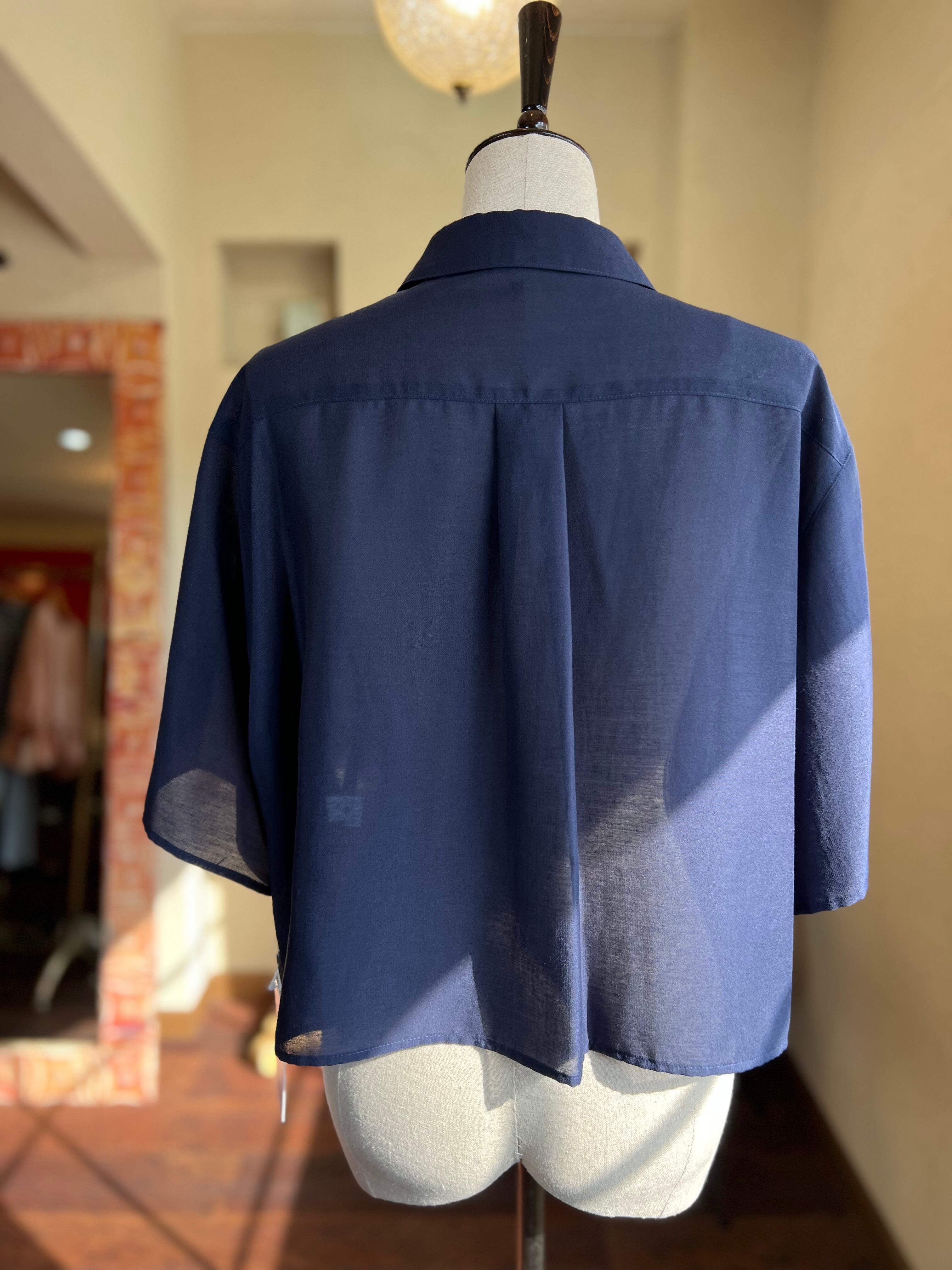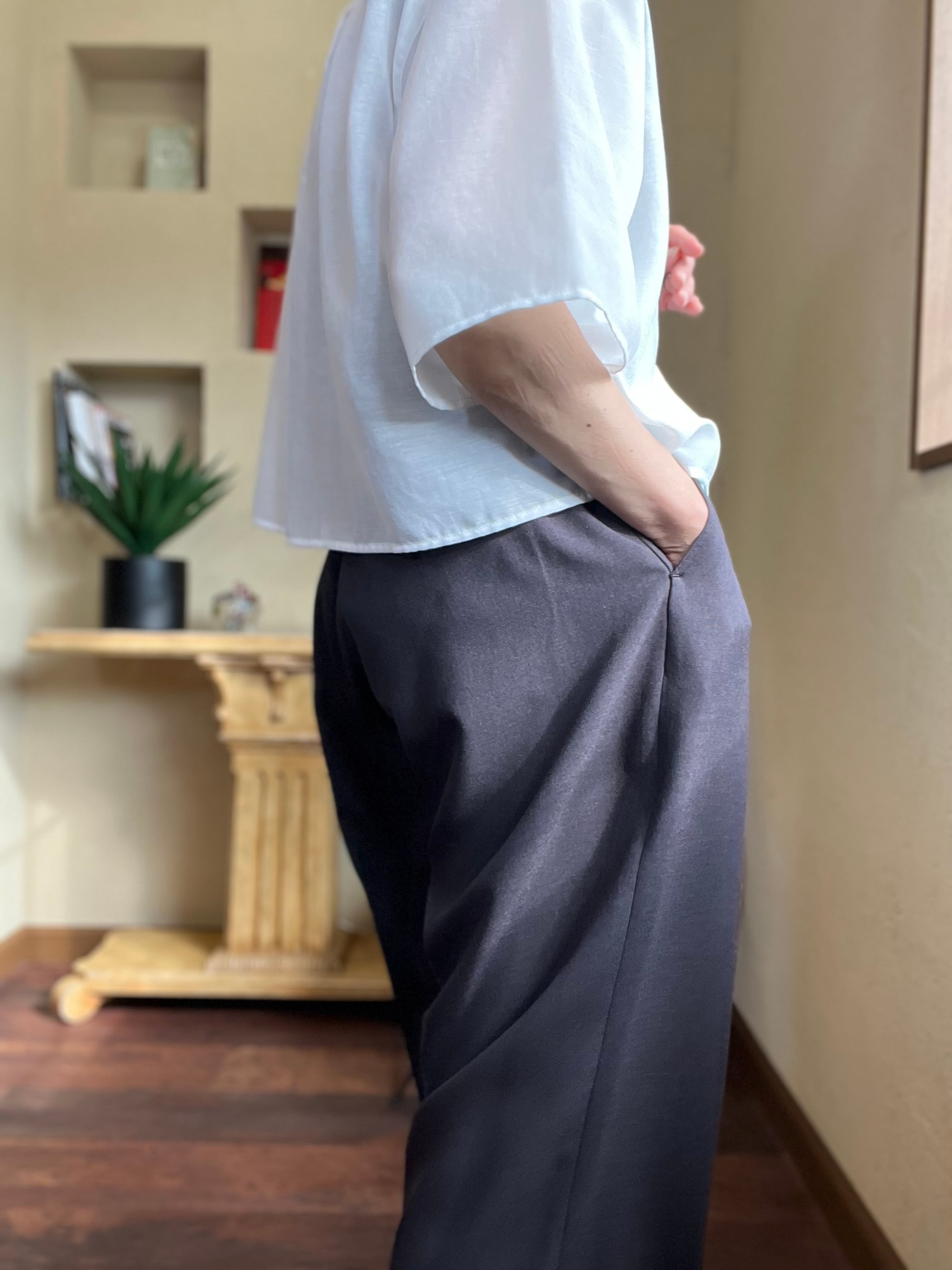 超軽量なブラウスはクロップド丈でボトムとのバランスが作りやすく