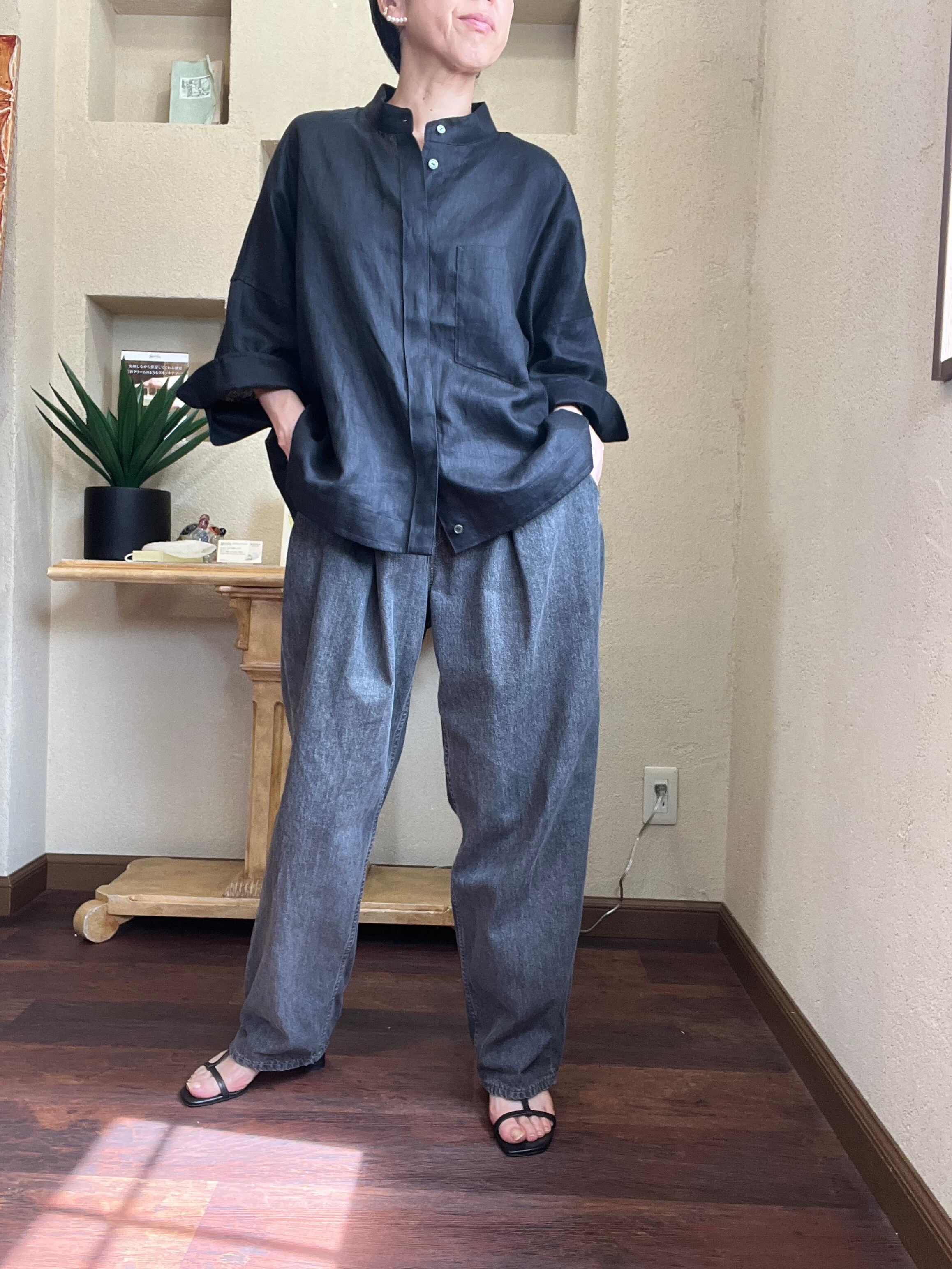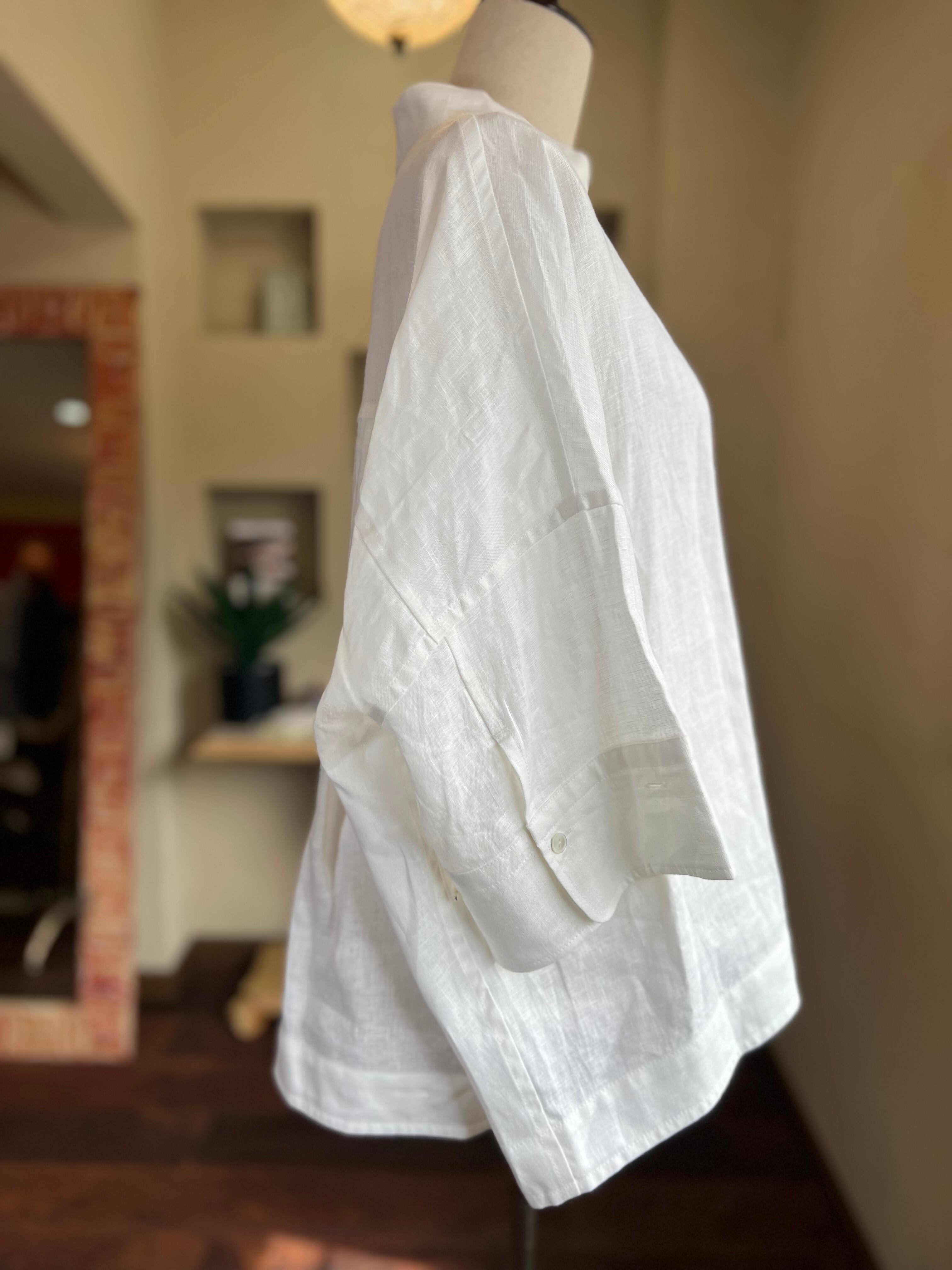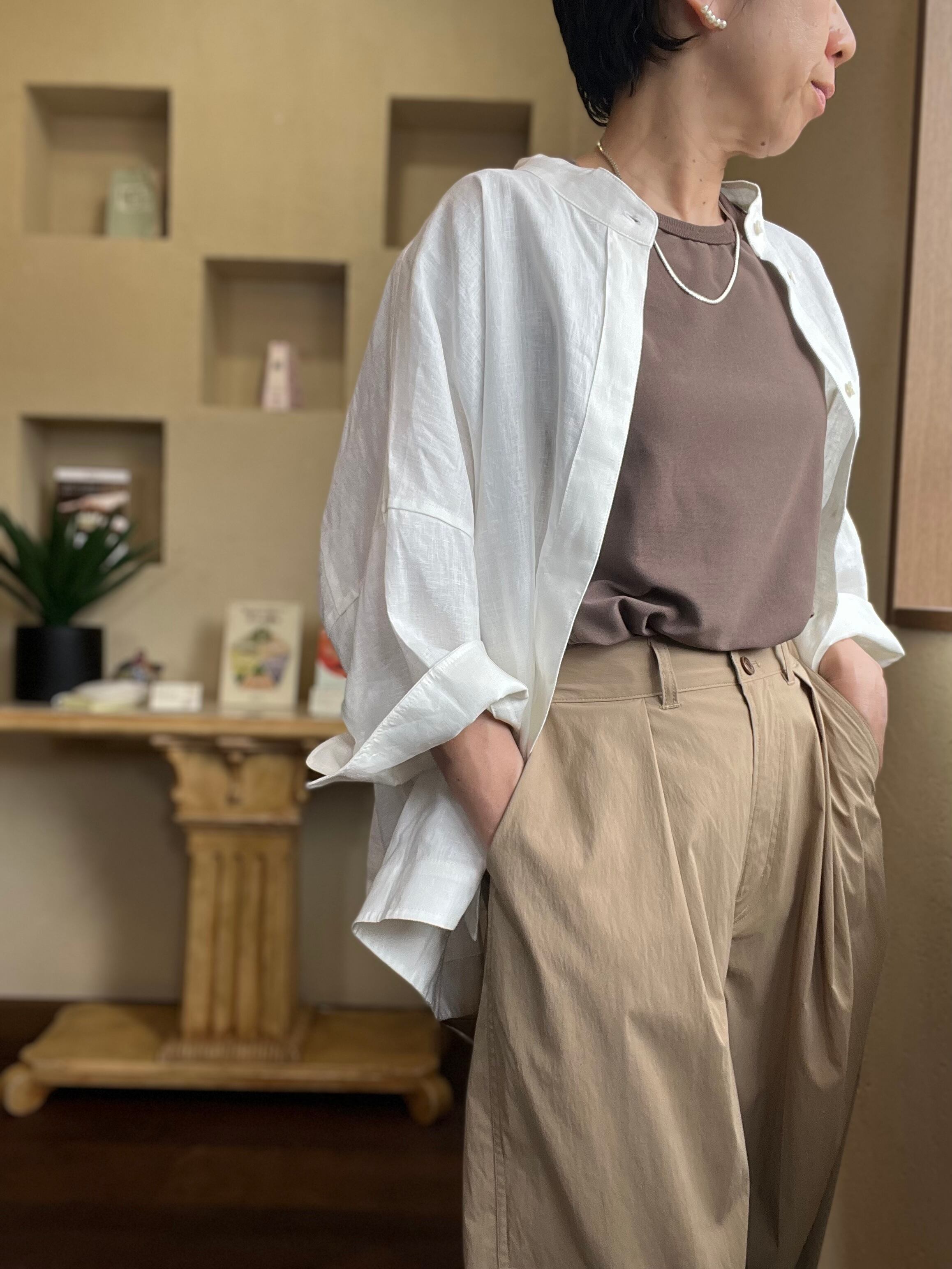 lelillの夏の定番のしっかりとした厚みと、光沢感、密度感の高い高級リネンを採用したワイドシャツ
