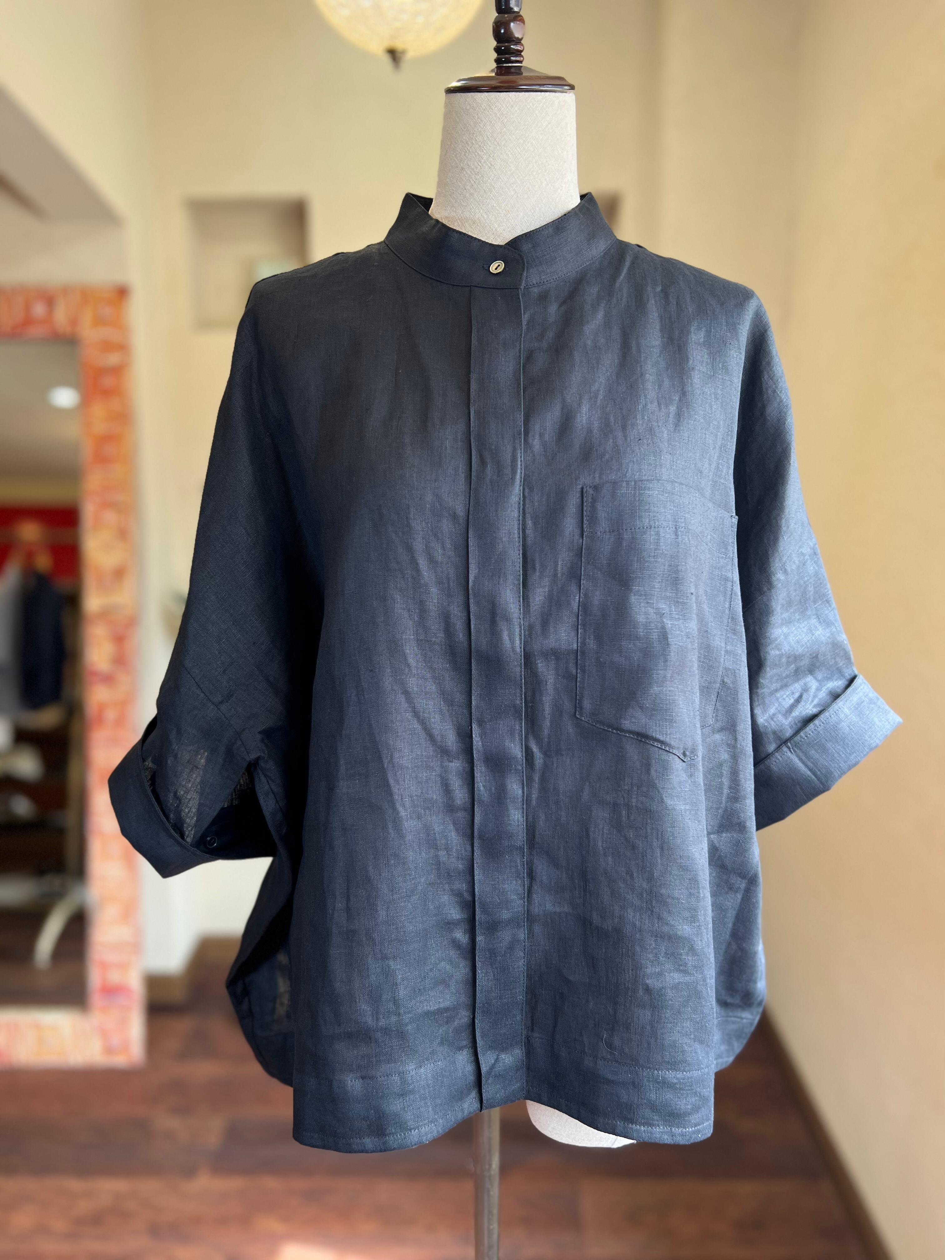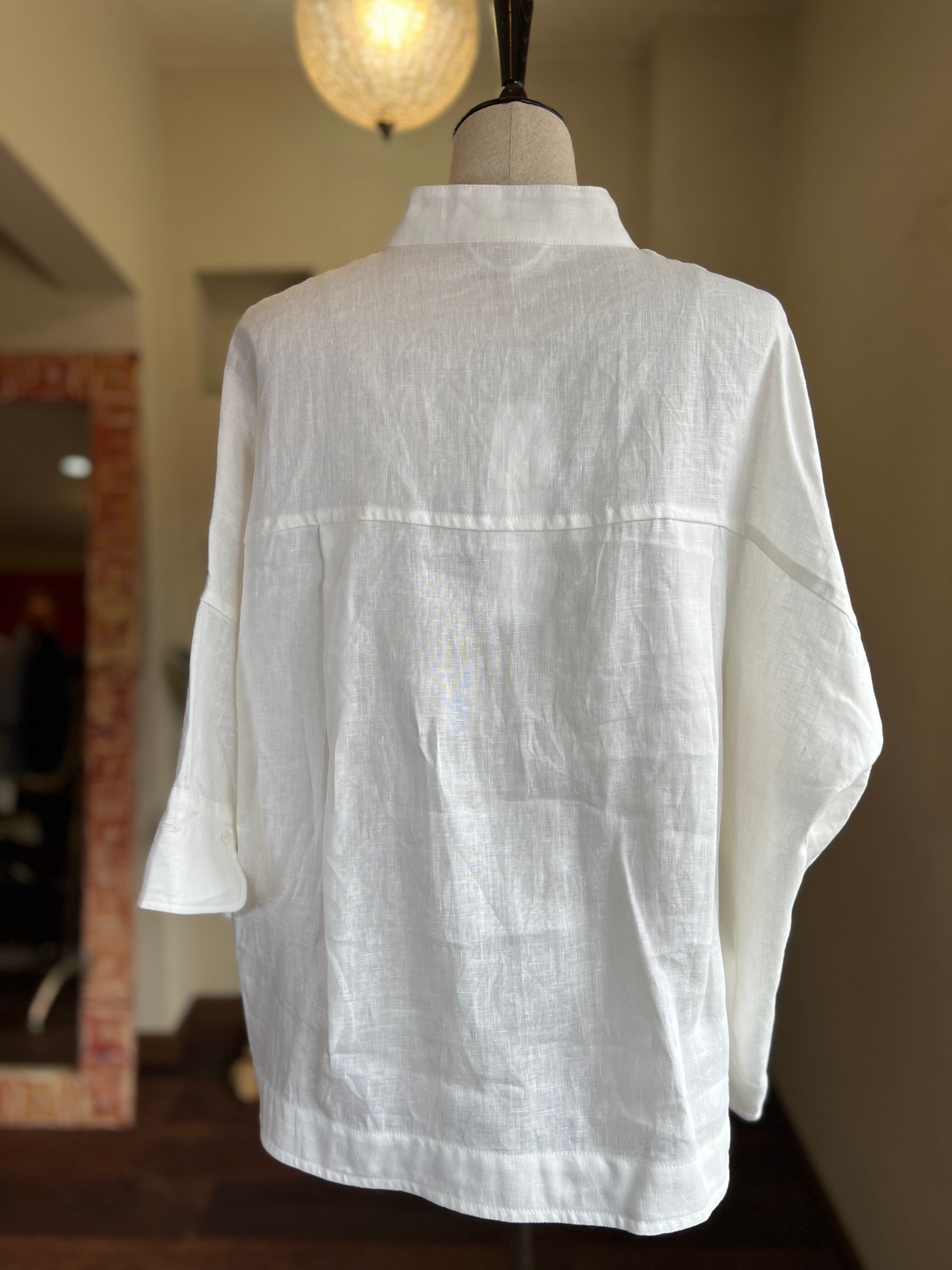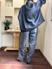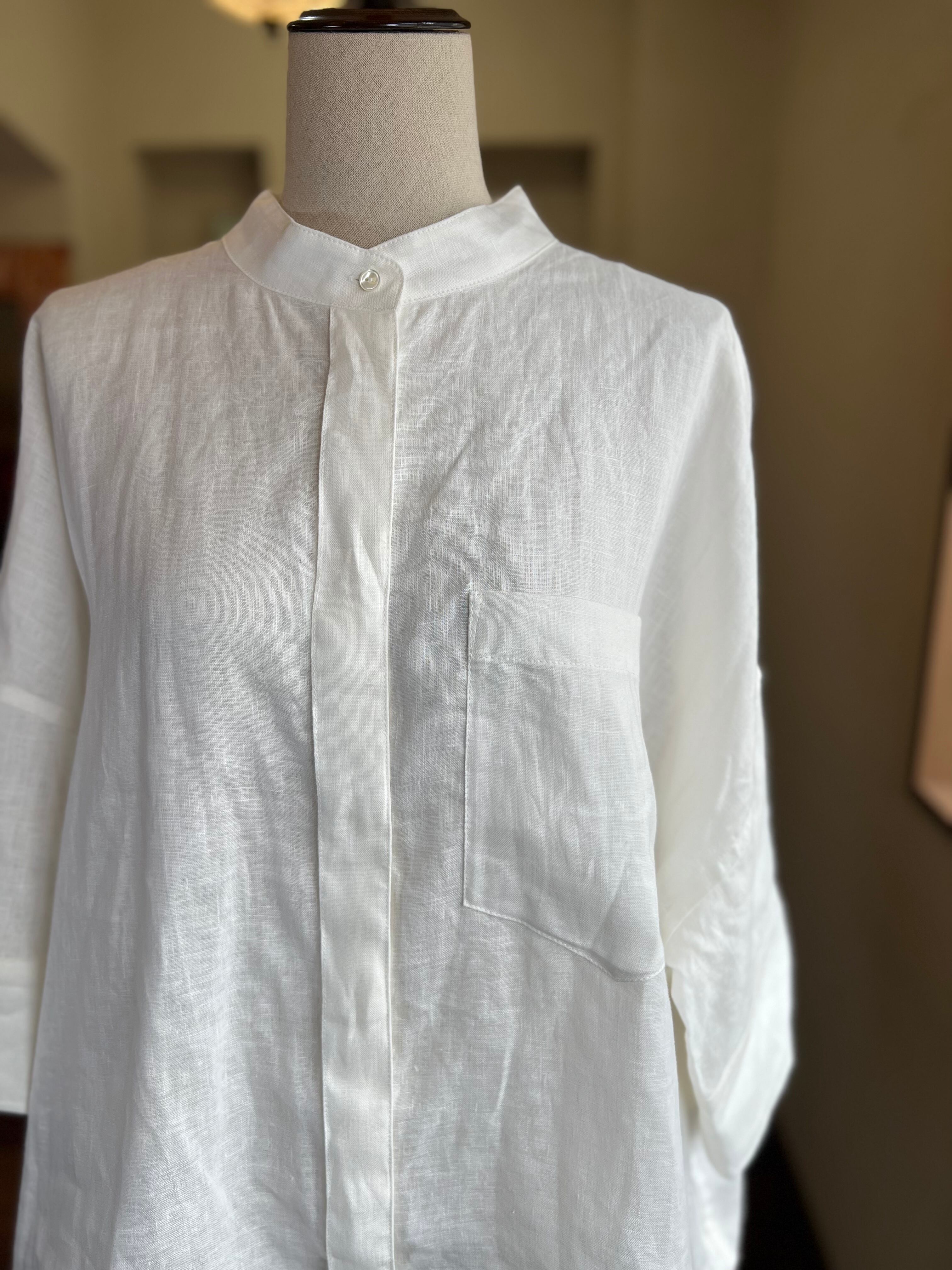 lelillの夏の定番のしっかりとした厚みと、光沢感、密度感の高い高級リネンを採用したワイドシャツ