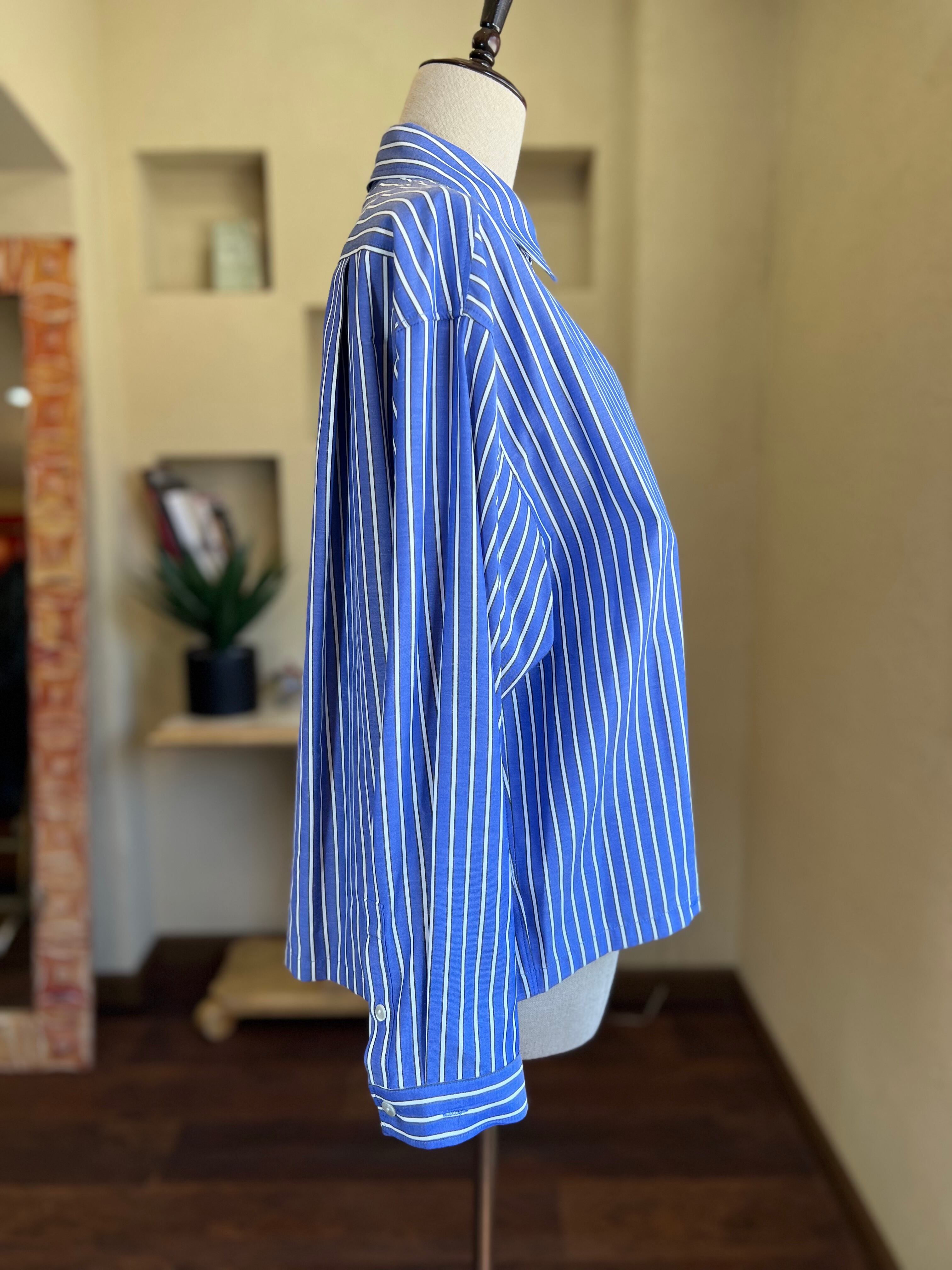 ワイドでややショートなボックスシルエットがポイントのシャツ仕立てですが