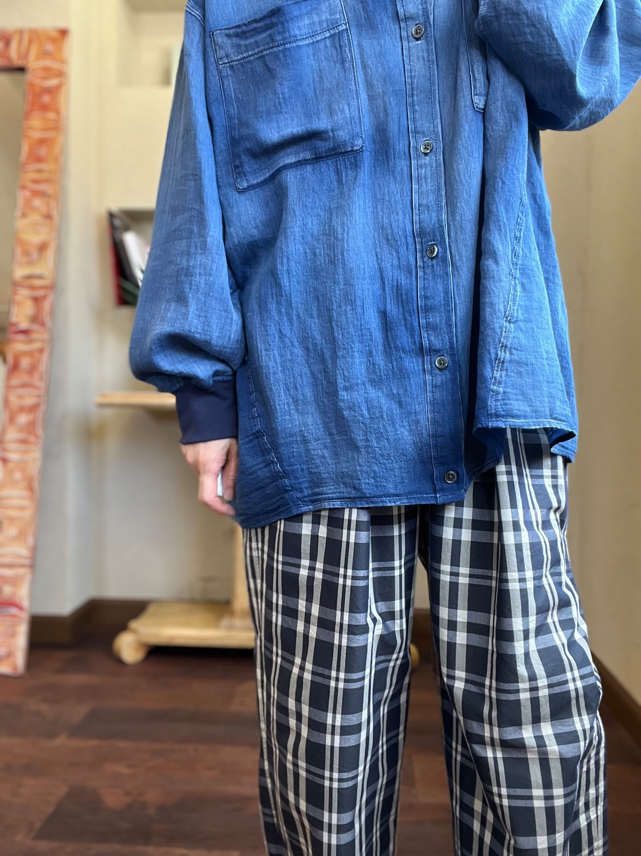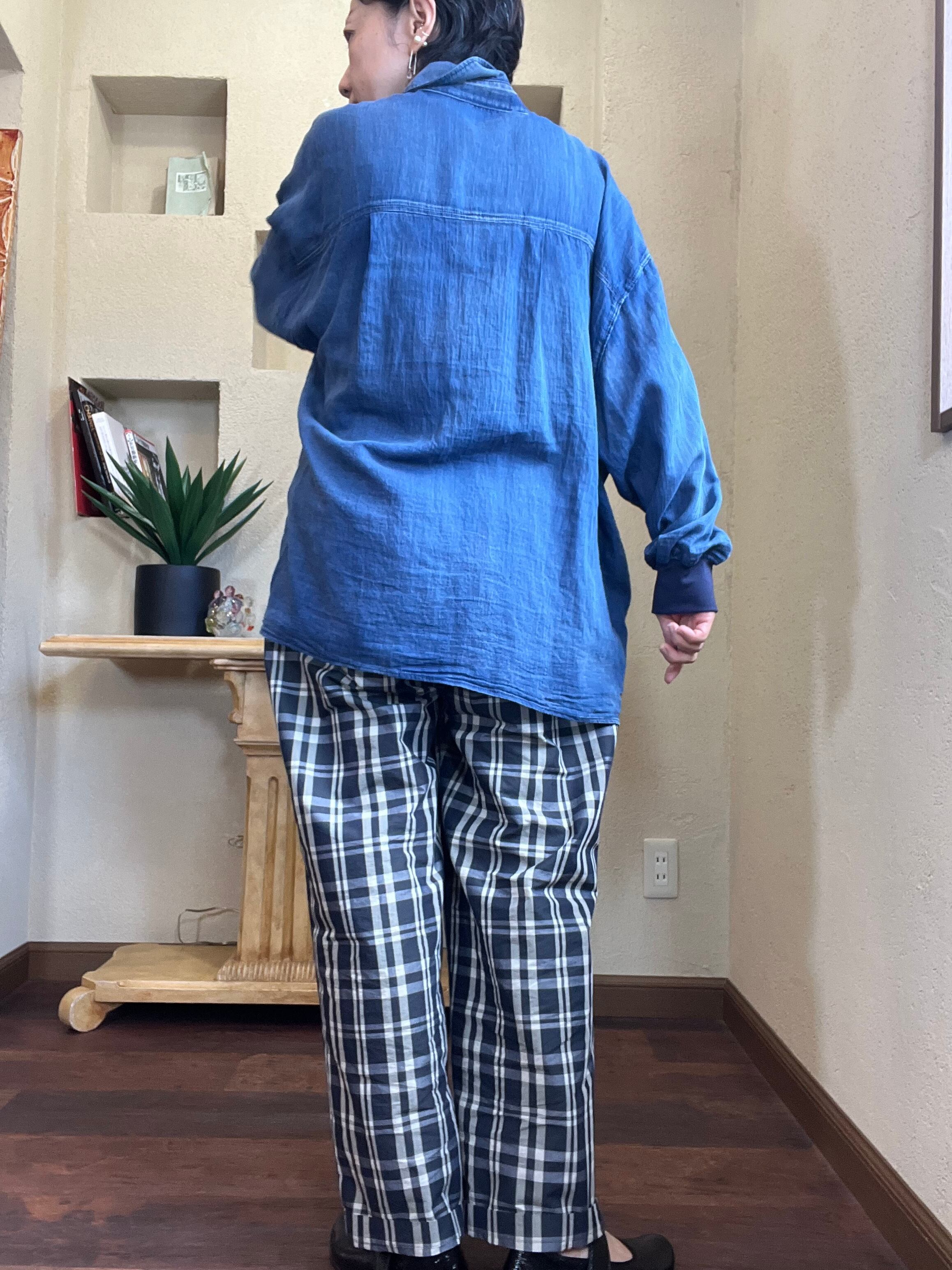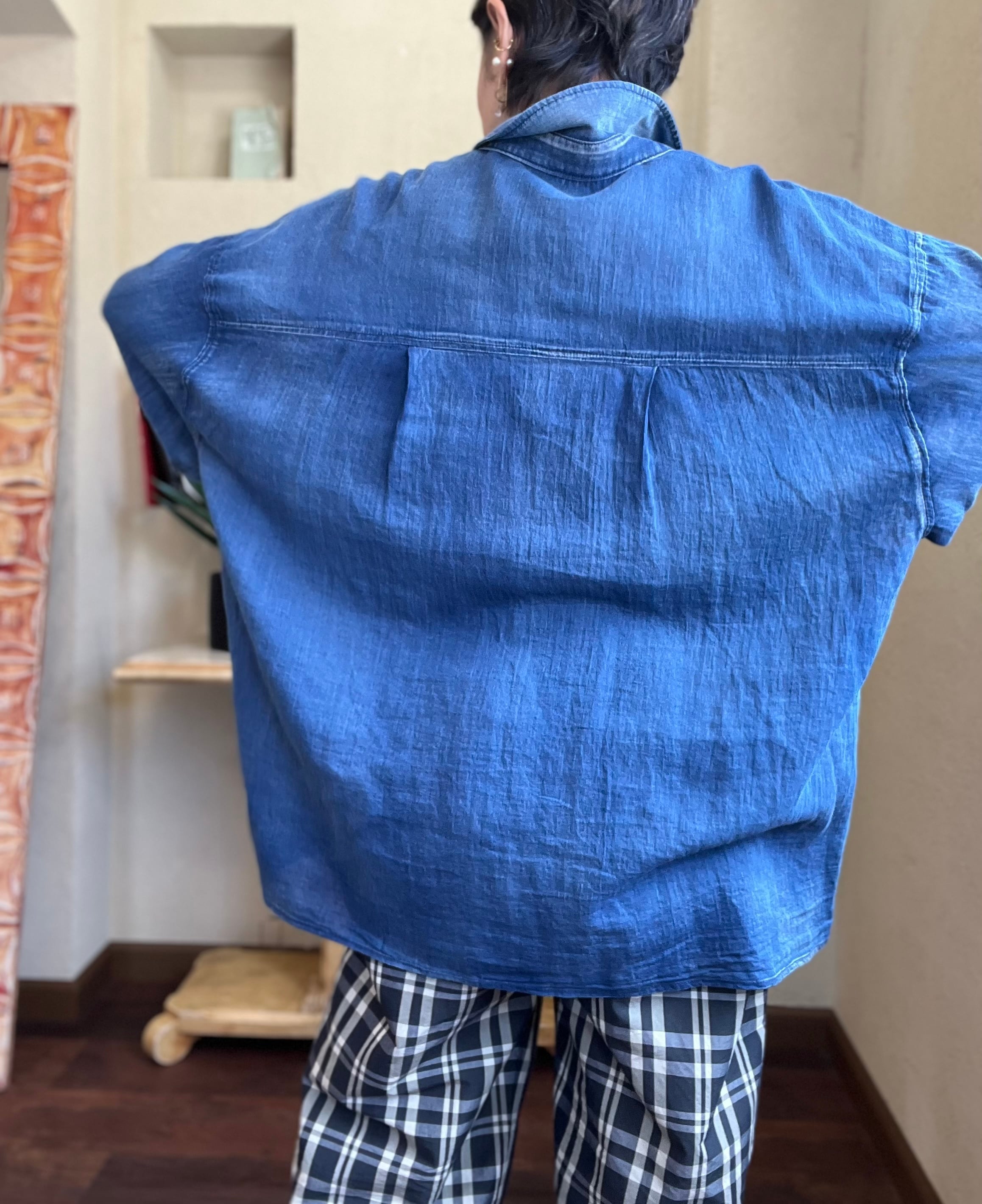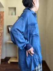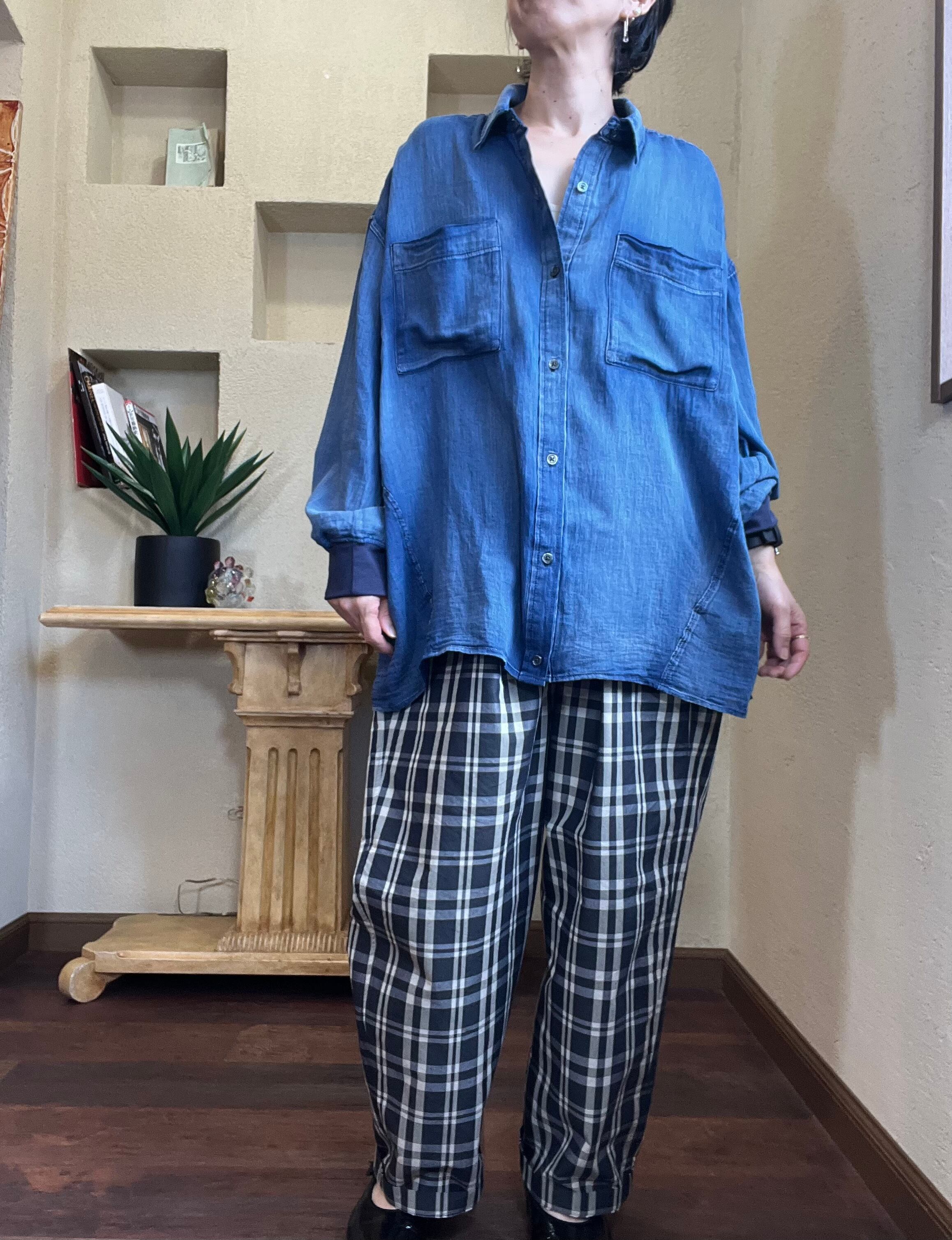 柔らかくしなやかな肌触りの、綿100%素材の透け感の少ないデニム風シャツ
