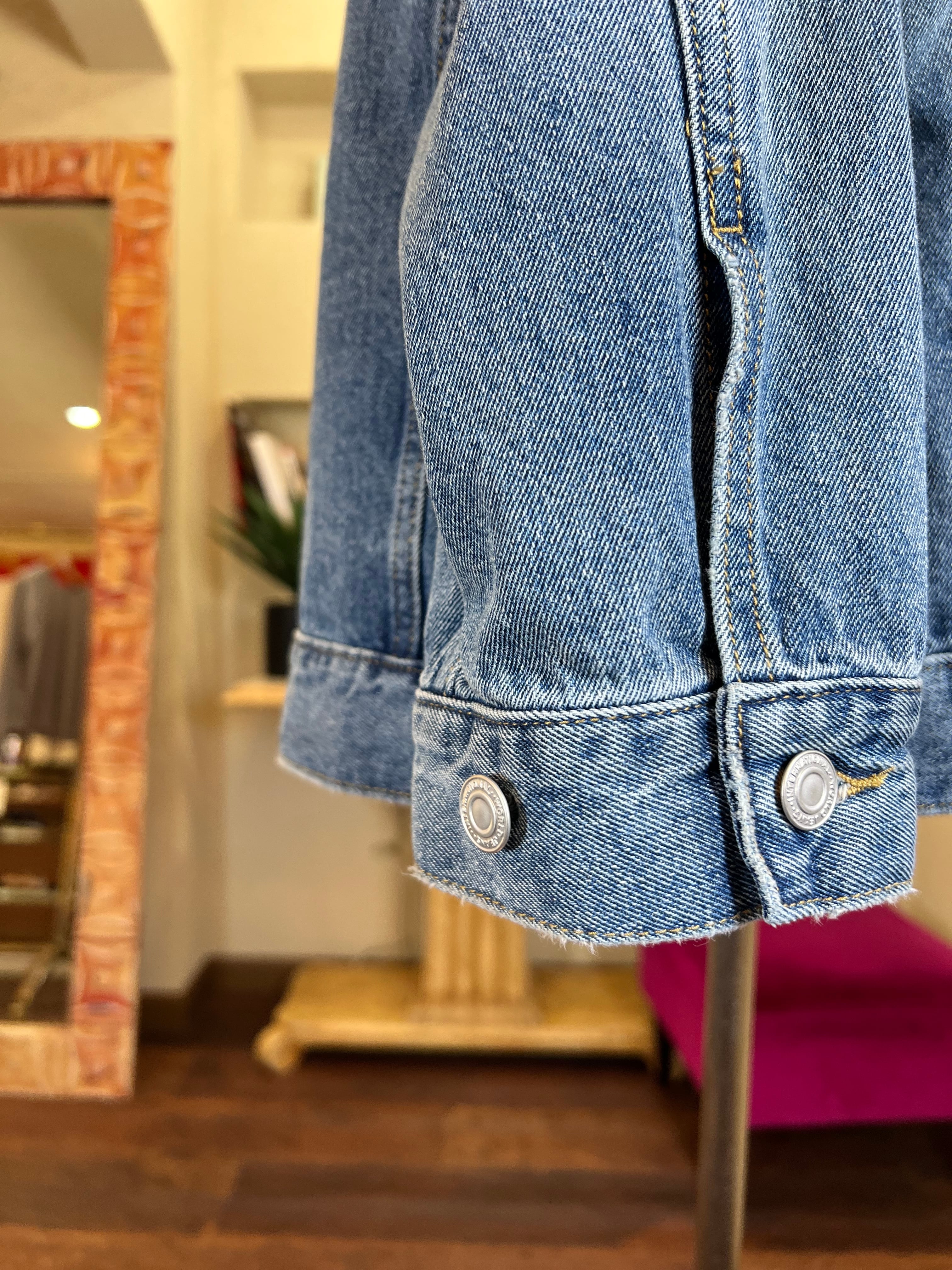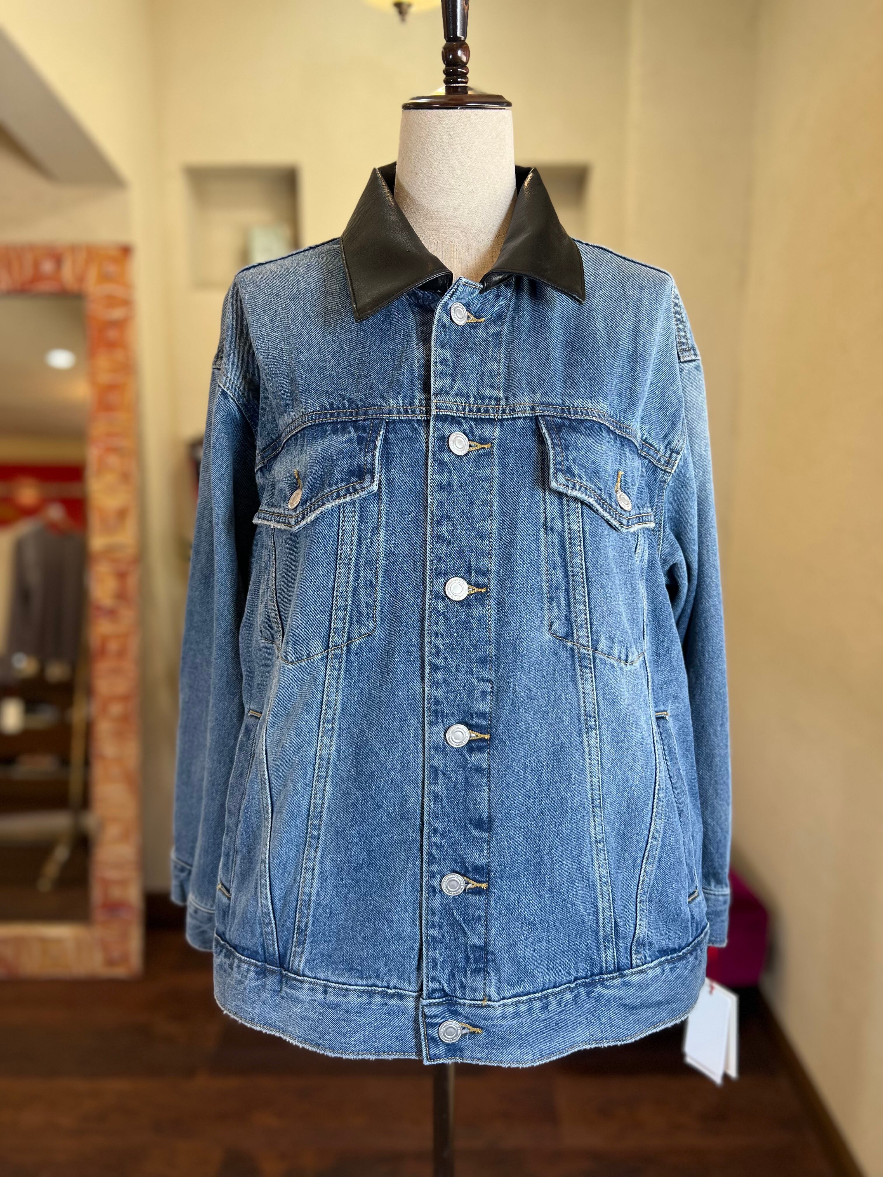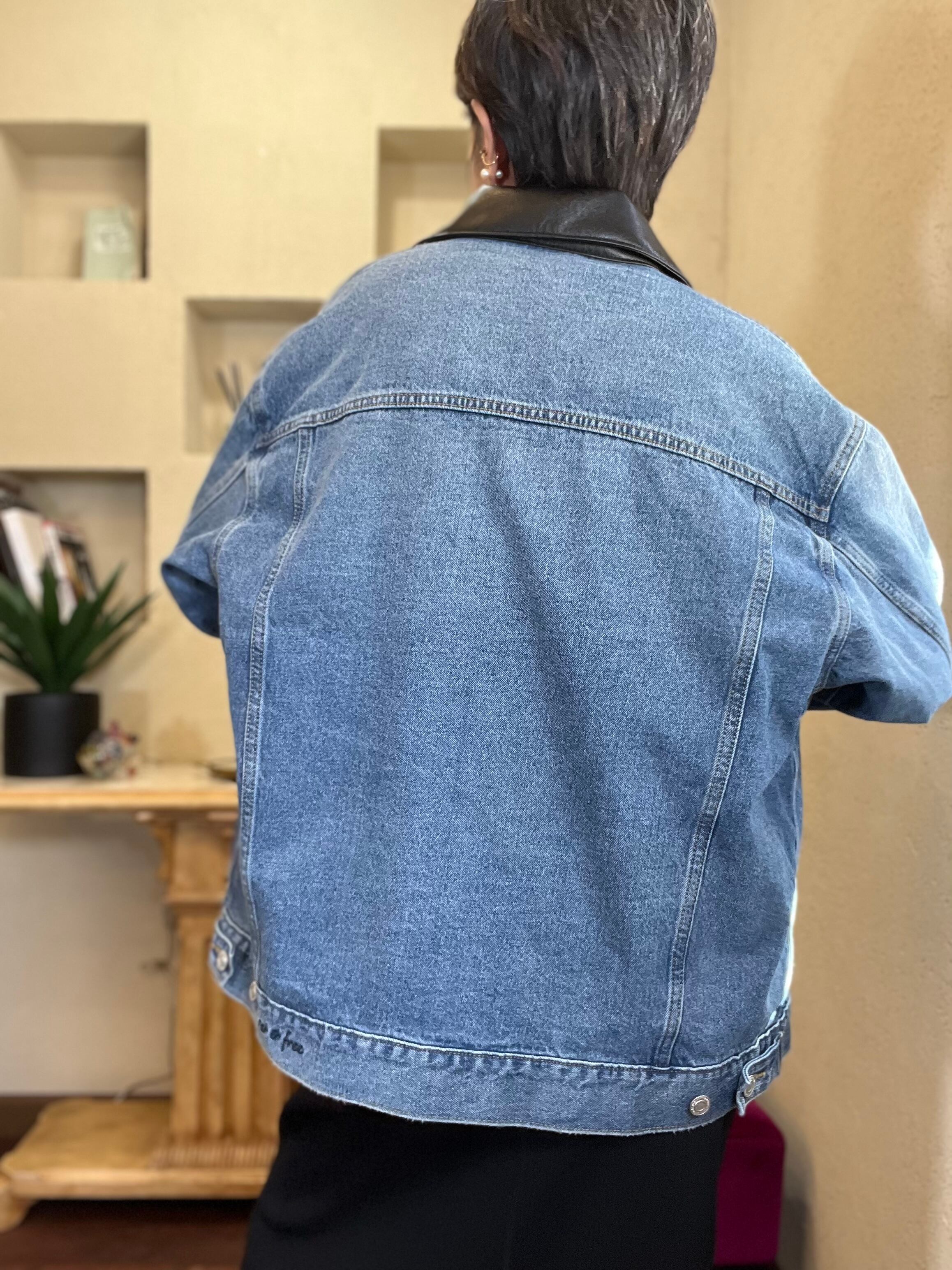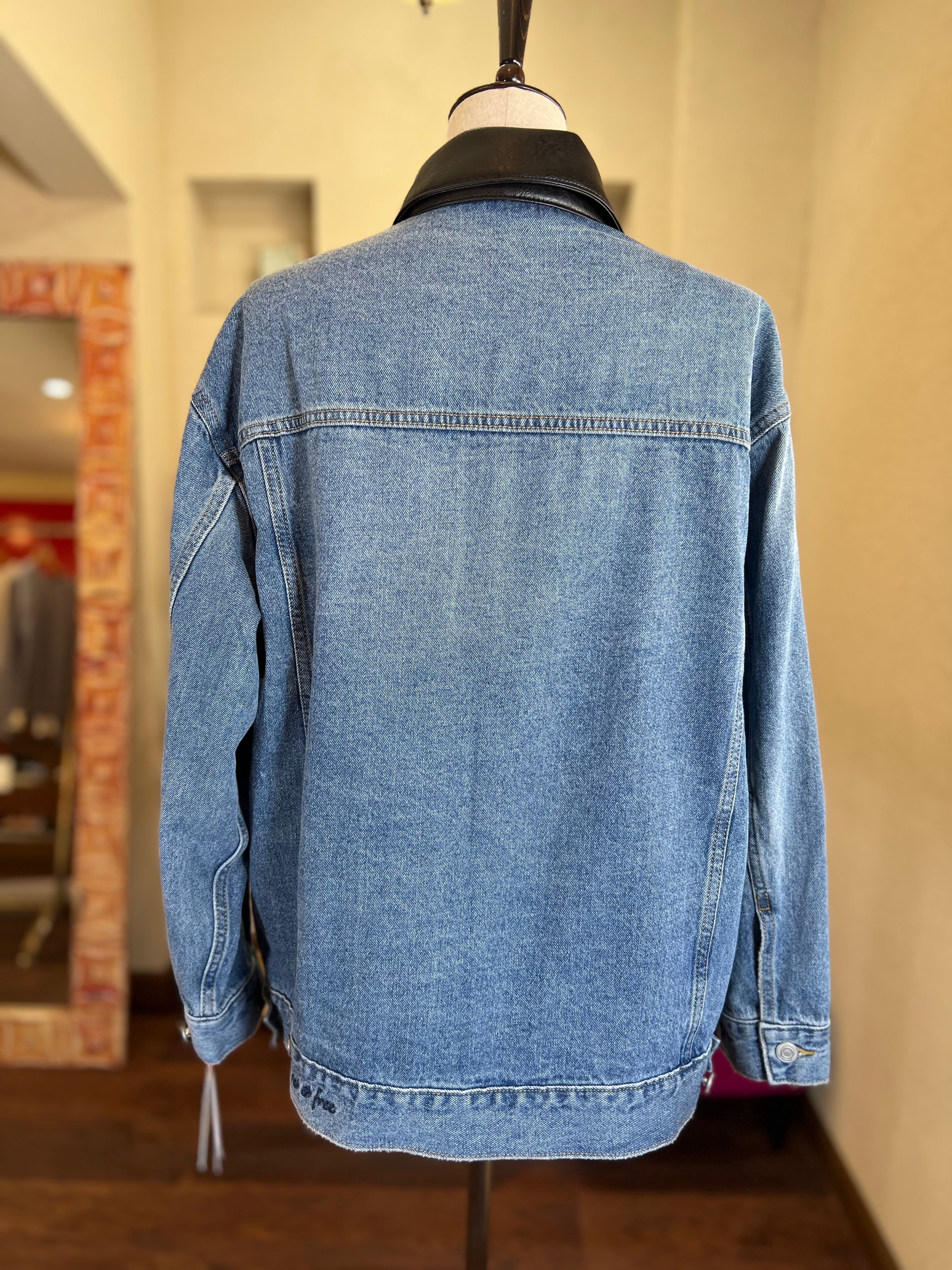 ベーシックなデザインに施されたレザーの襟が目を惹くデニムジャケット