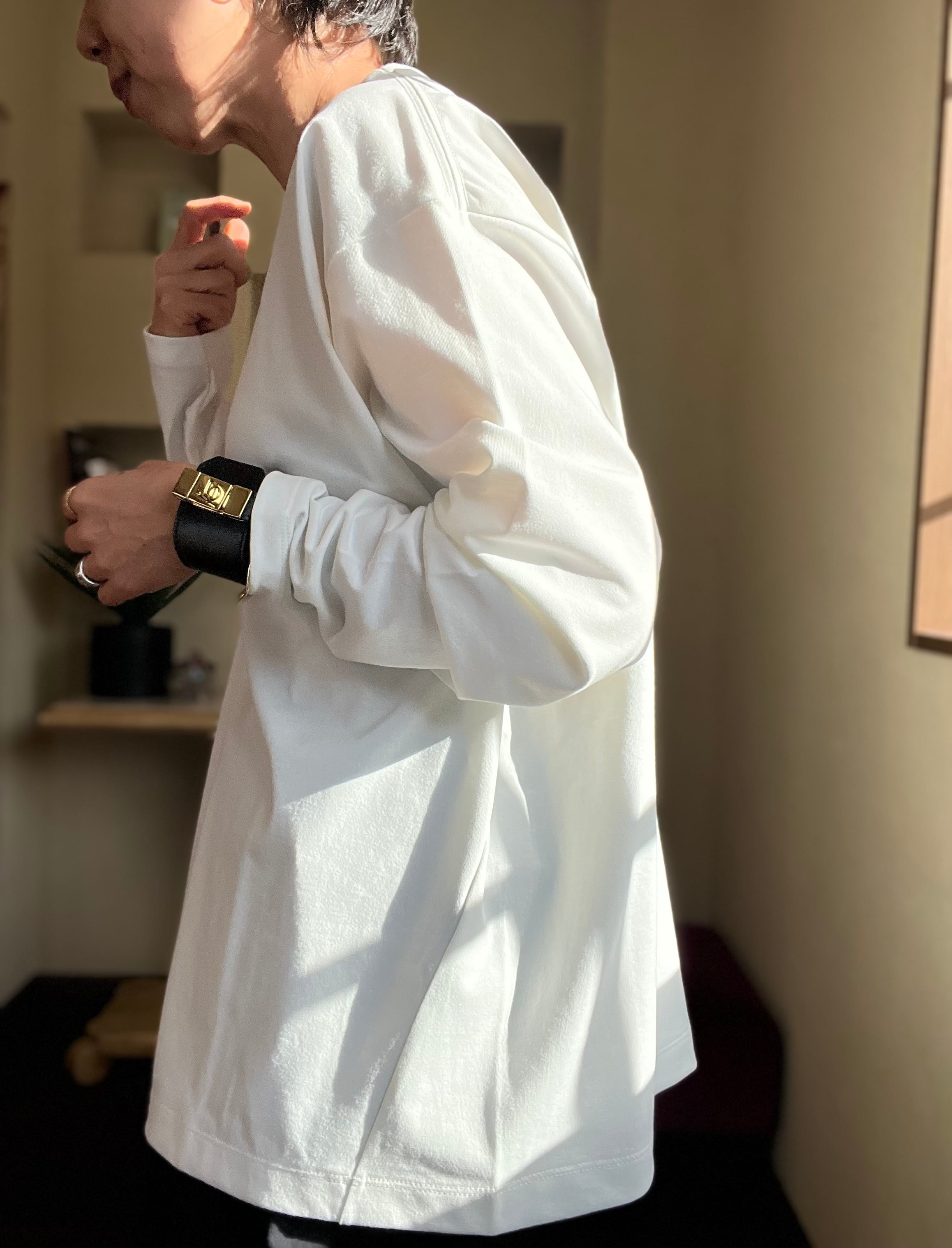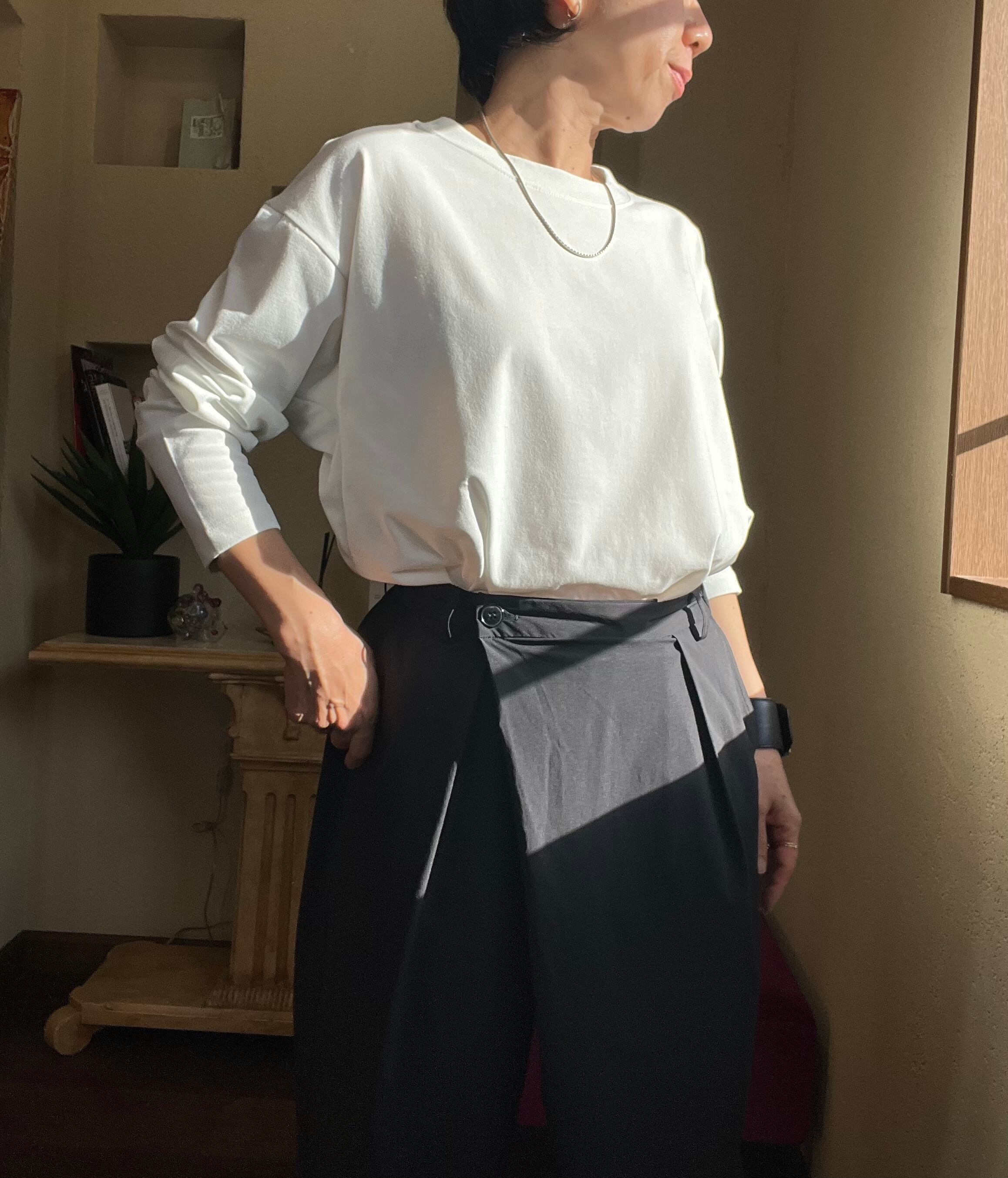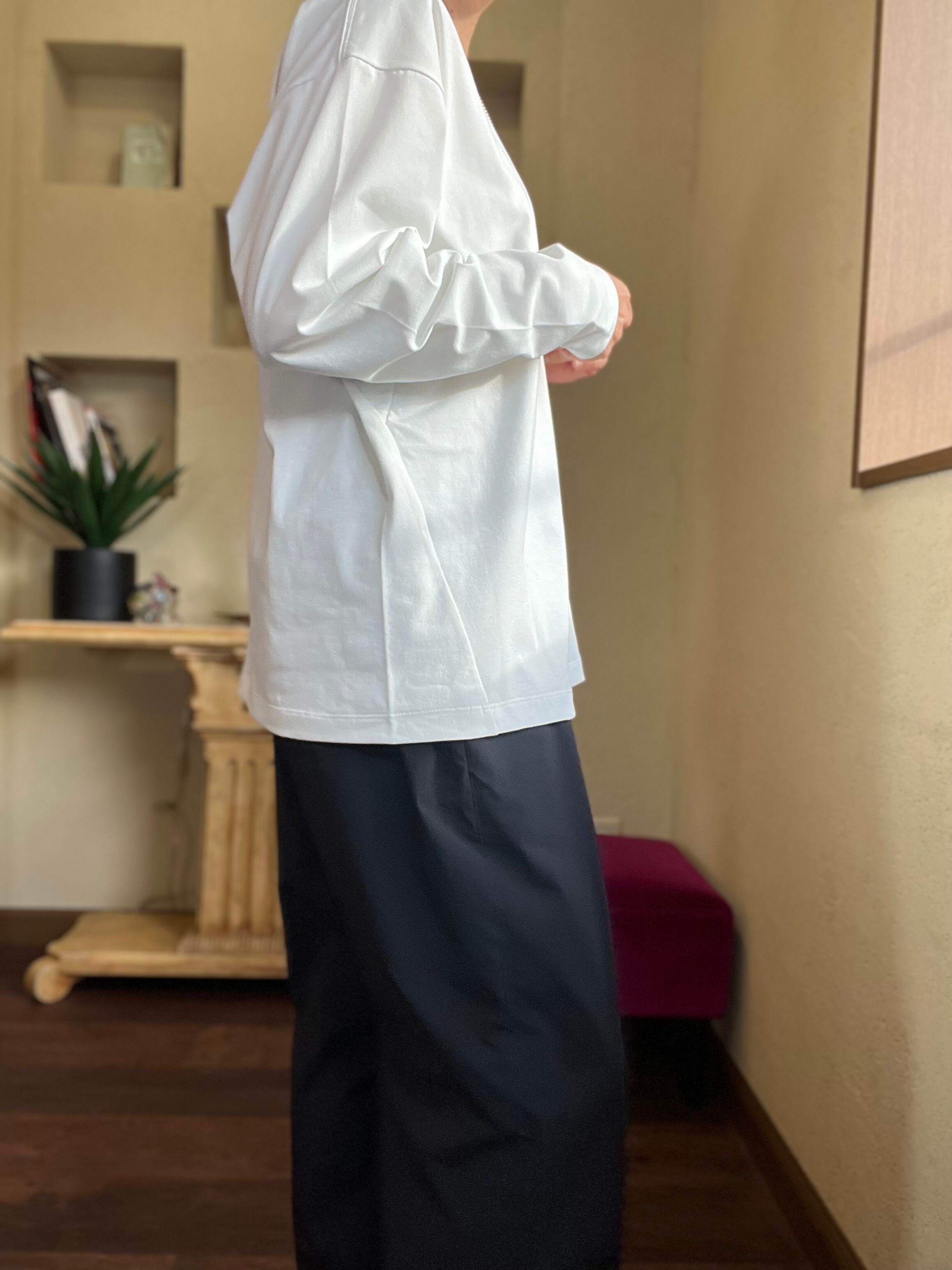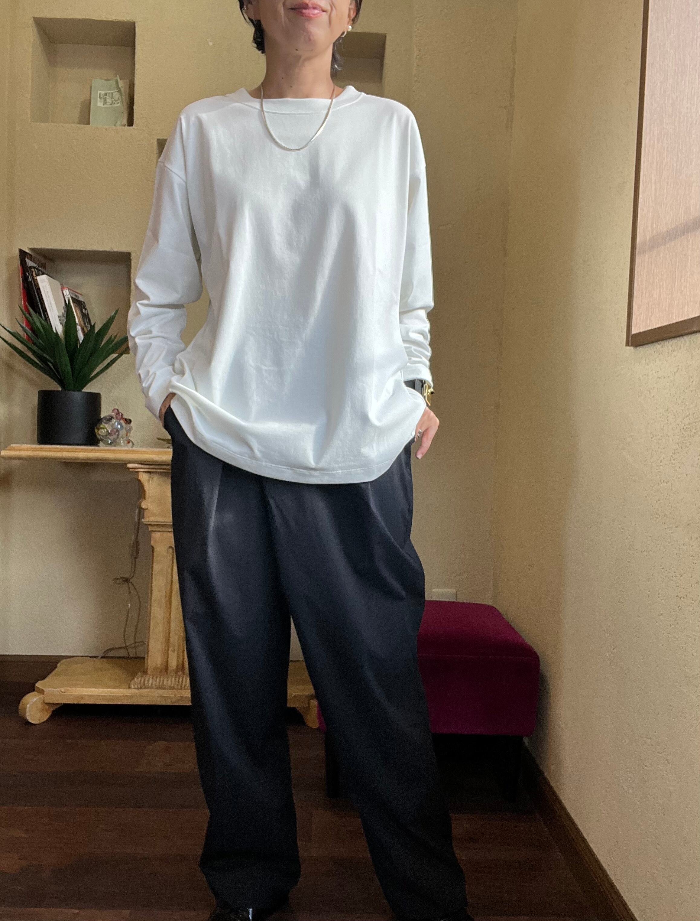 デザインは一見オーバーサイズの普遍的なロングスリーブT風ですが