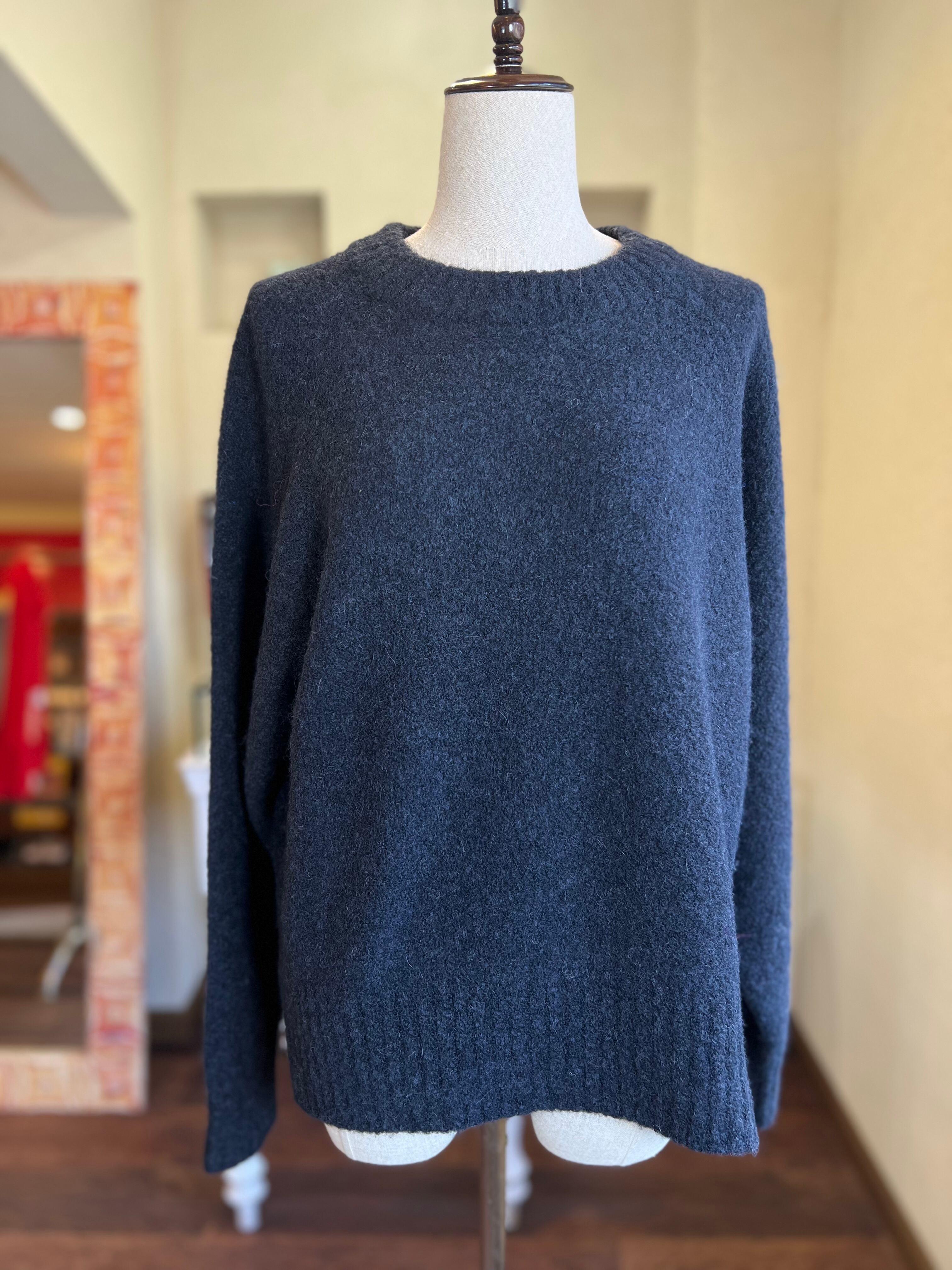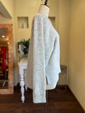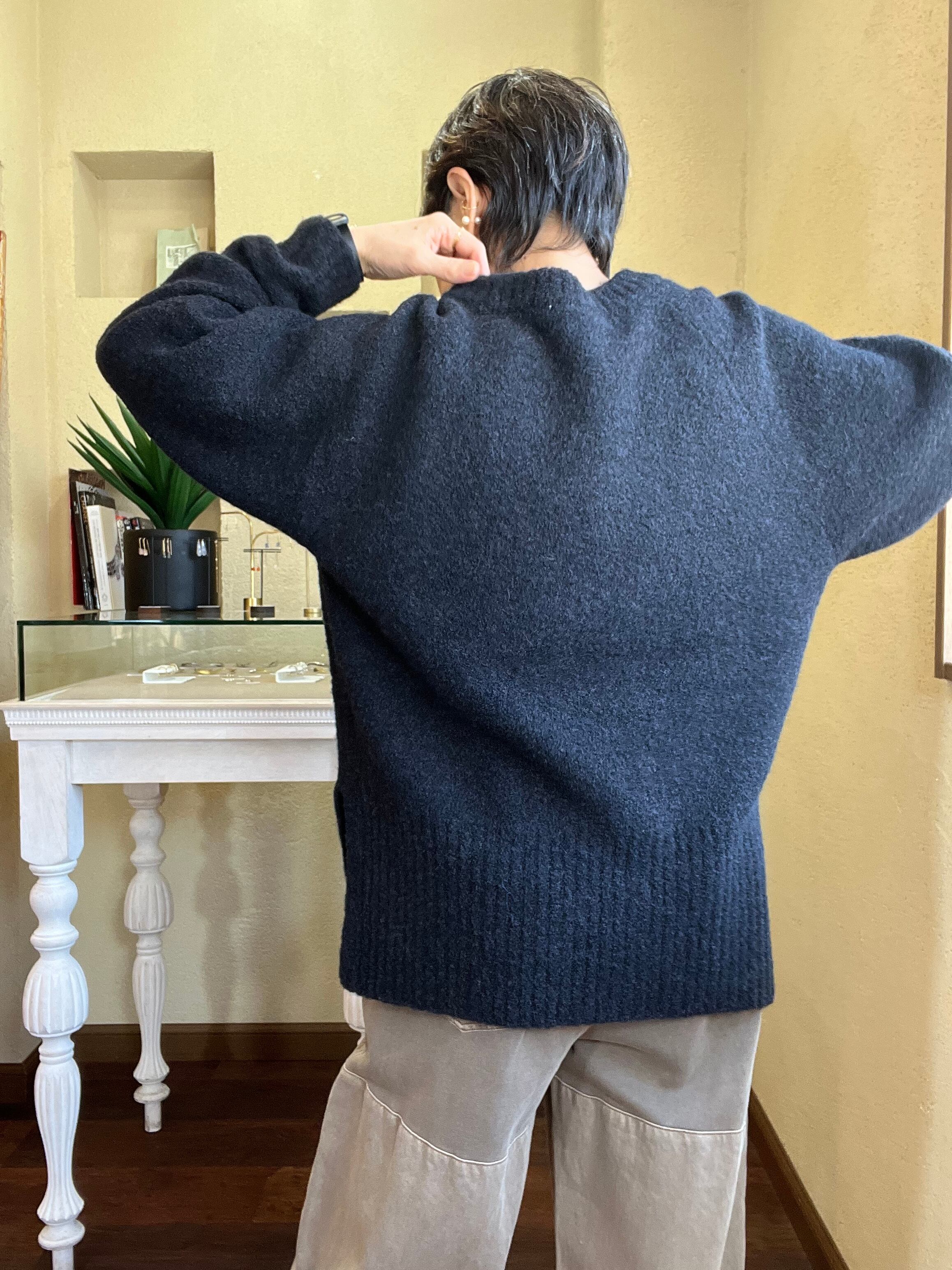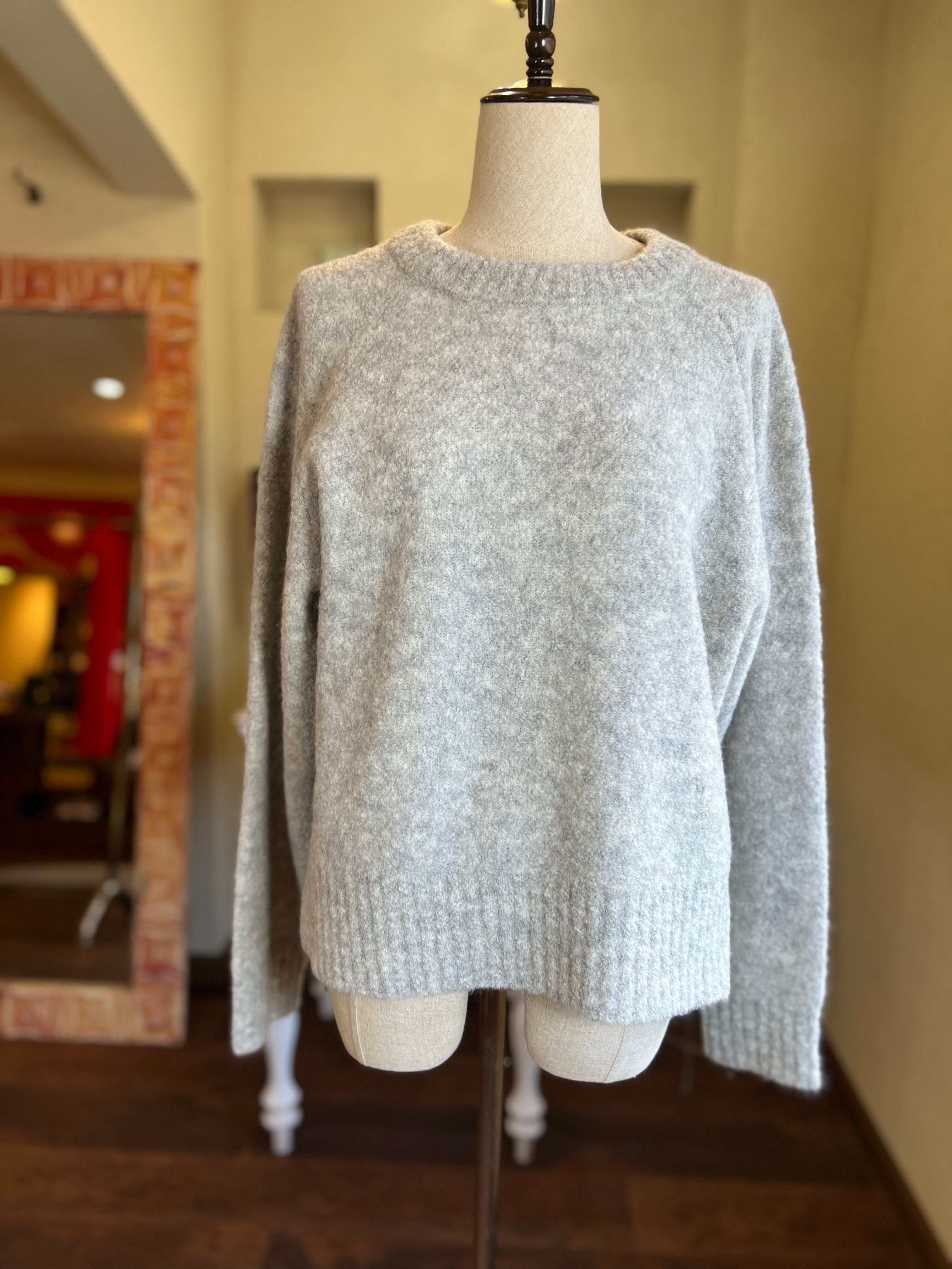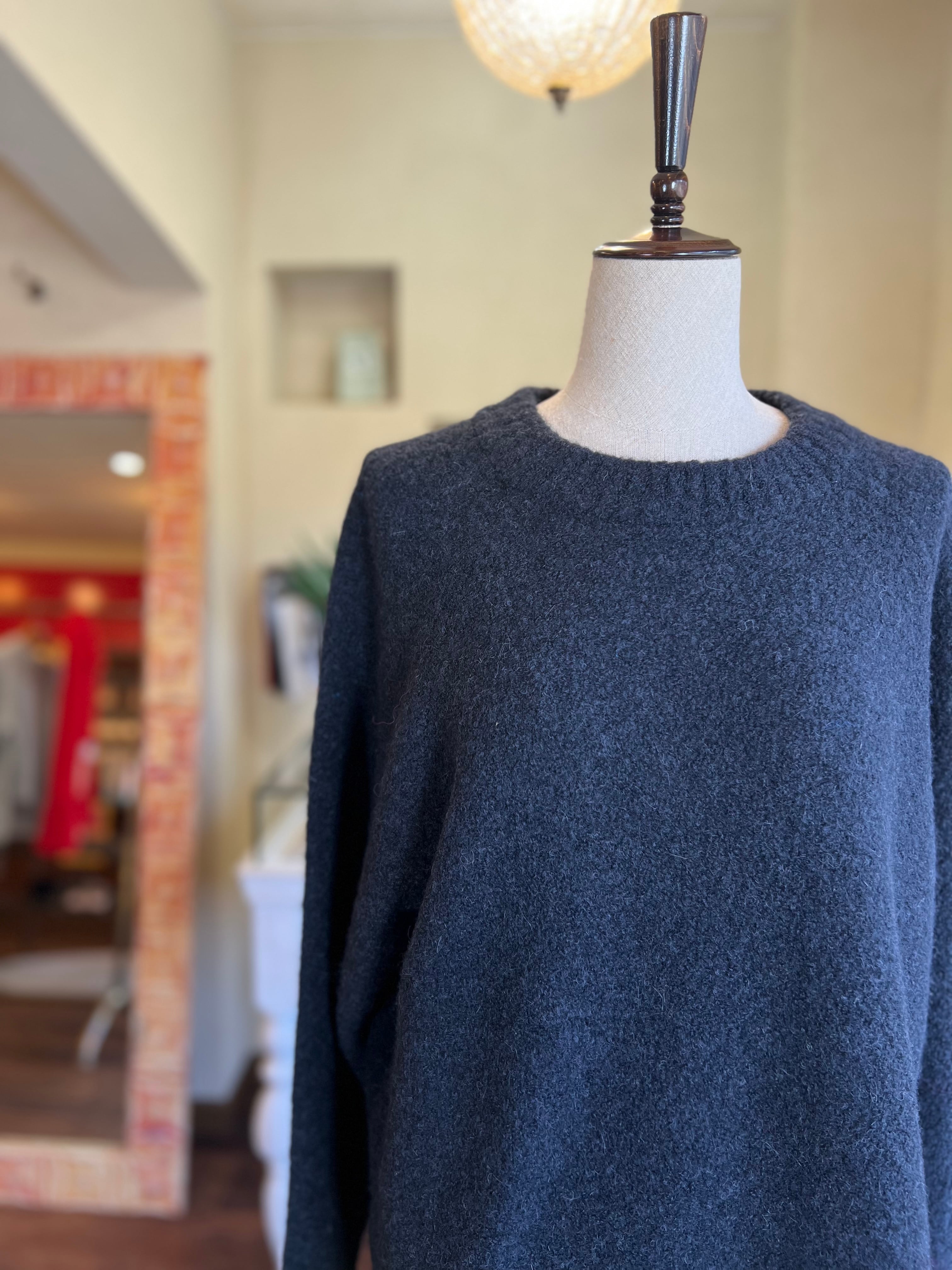 アルパカ混のフワッと軽いブークレー素材のベーシックなクルーネックニット