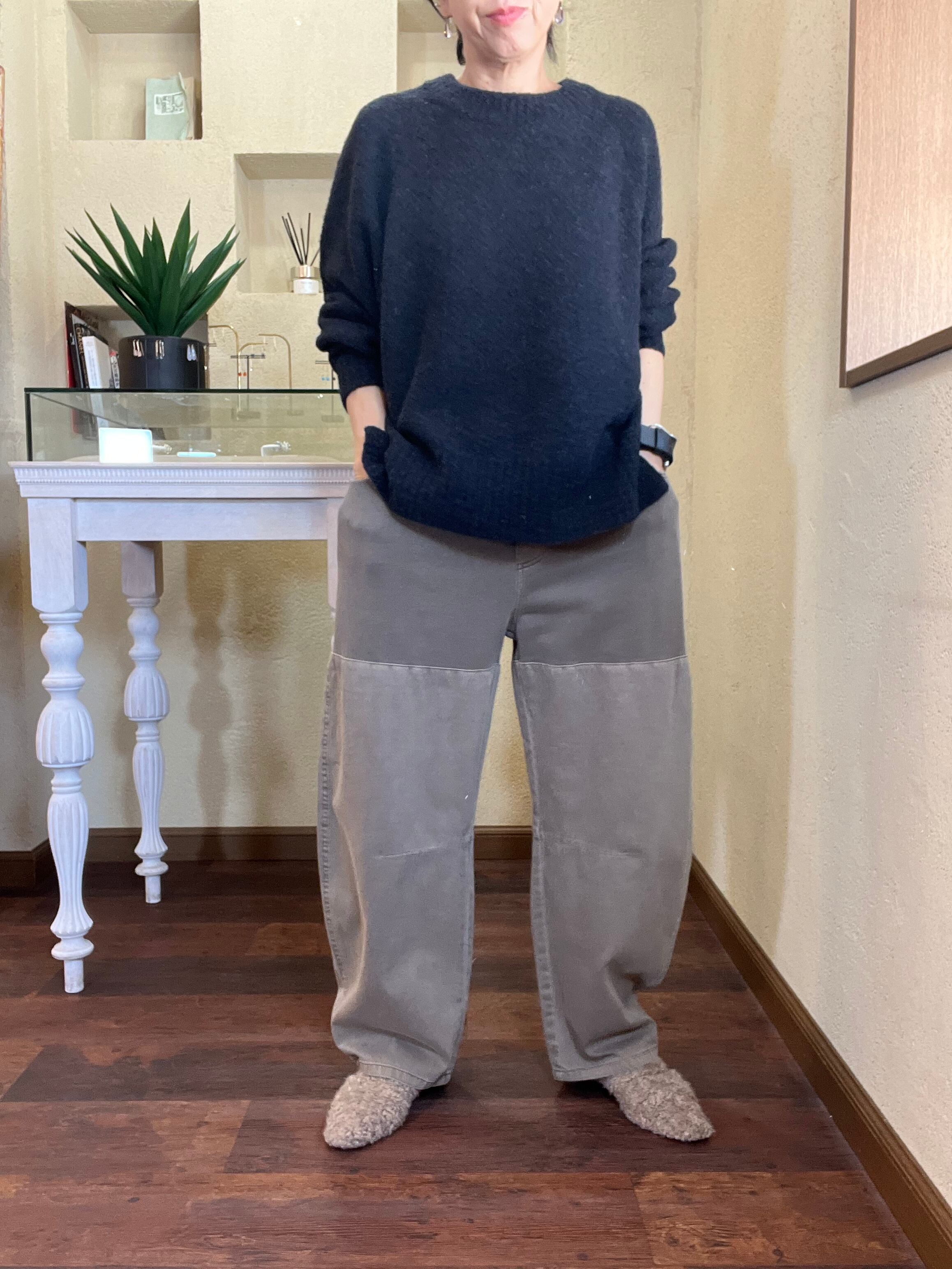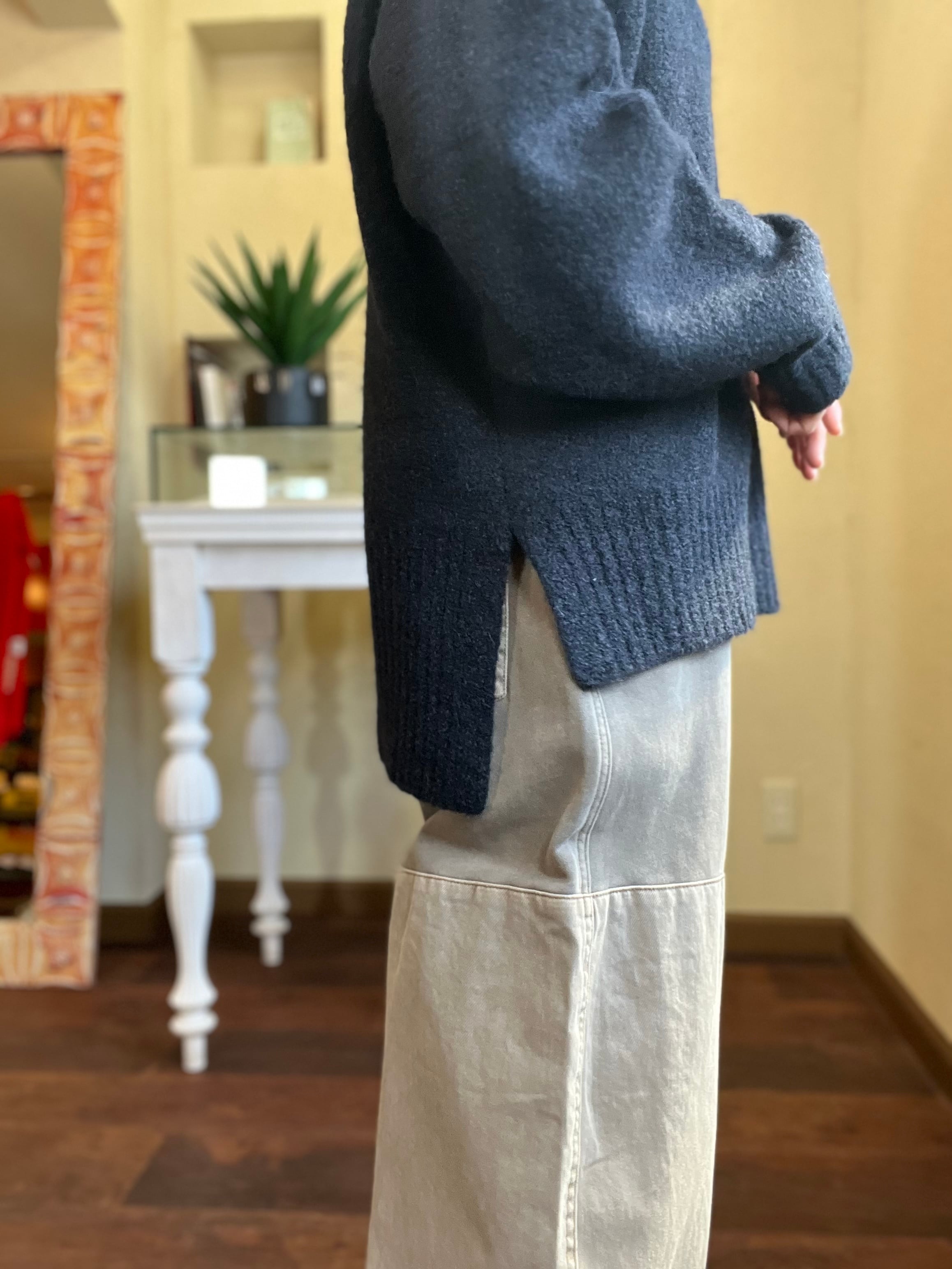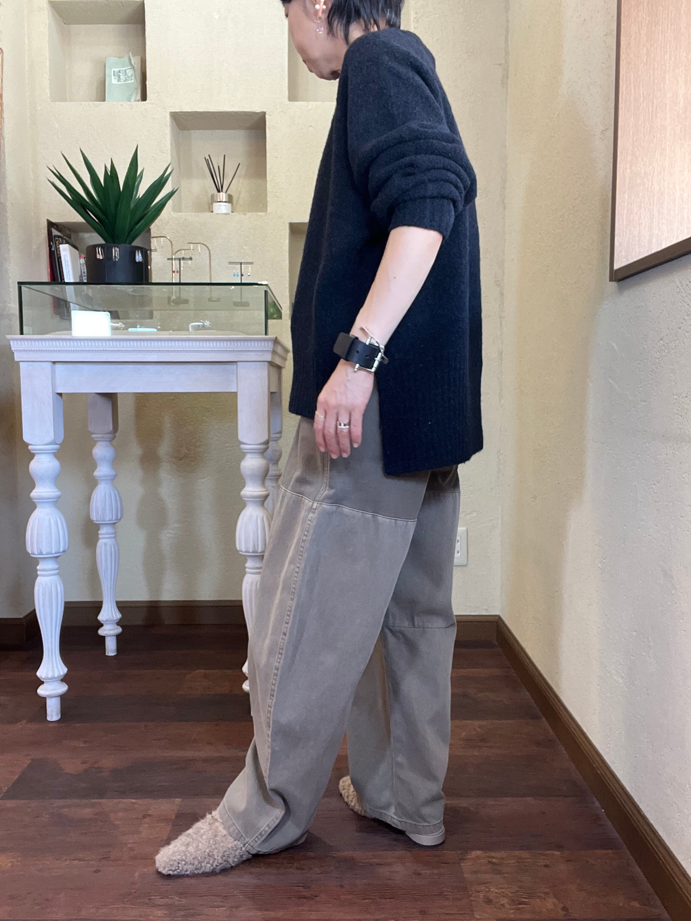 着丈は前後差あり、ワイドパンツやスカートともバランス良くコーディネートして頂けます