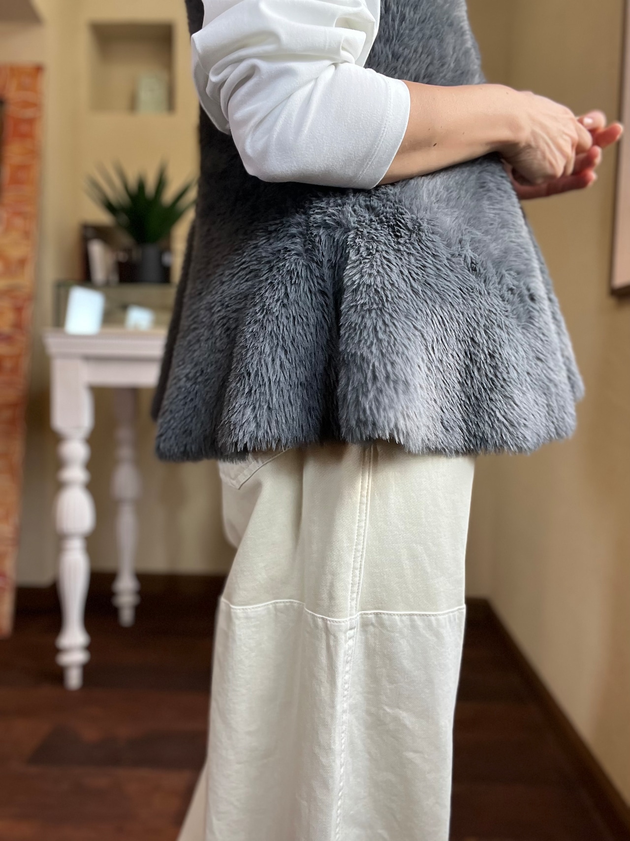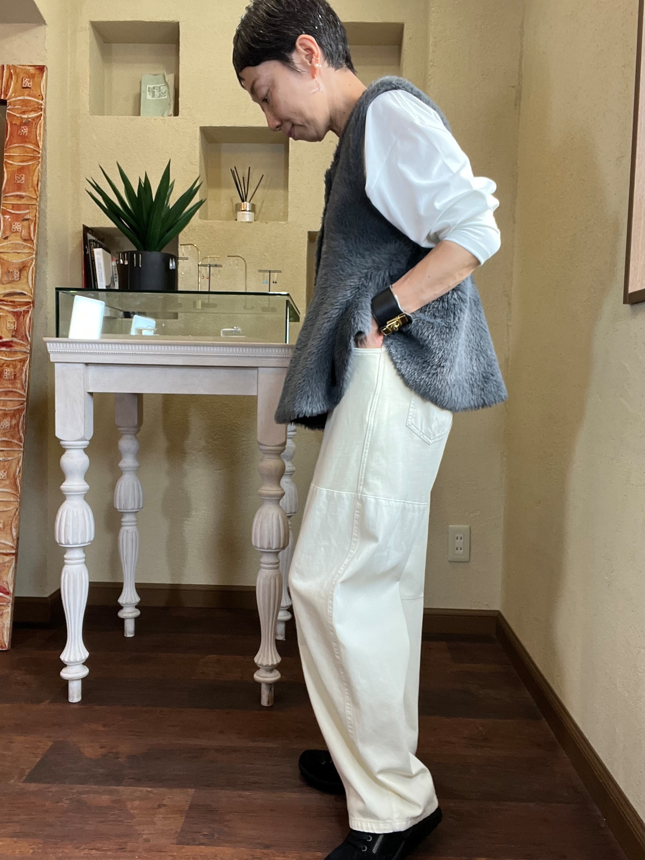 伸縮性抜群で、開閉の出来るペプラム型は、ワイドパンツはもちろん