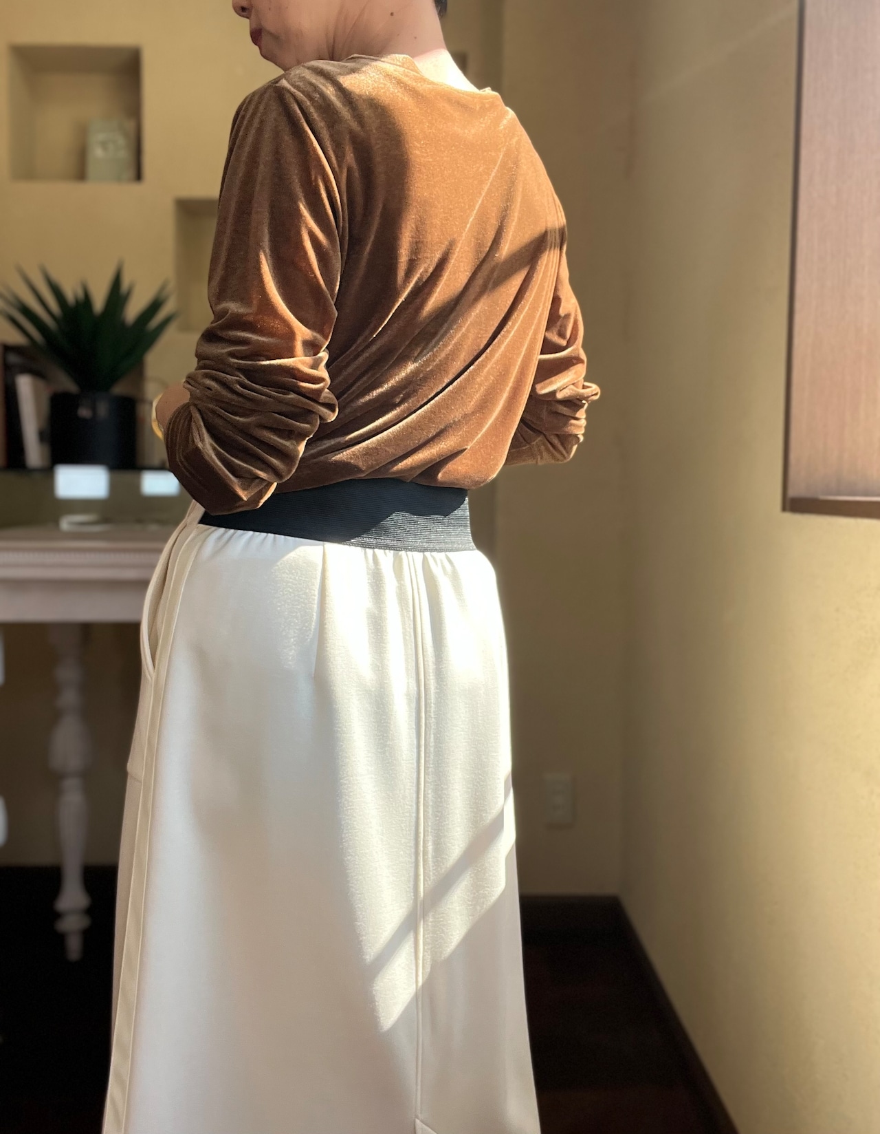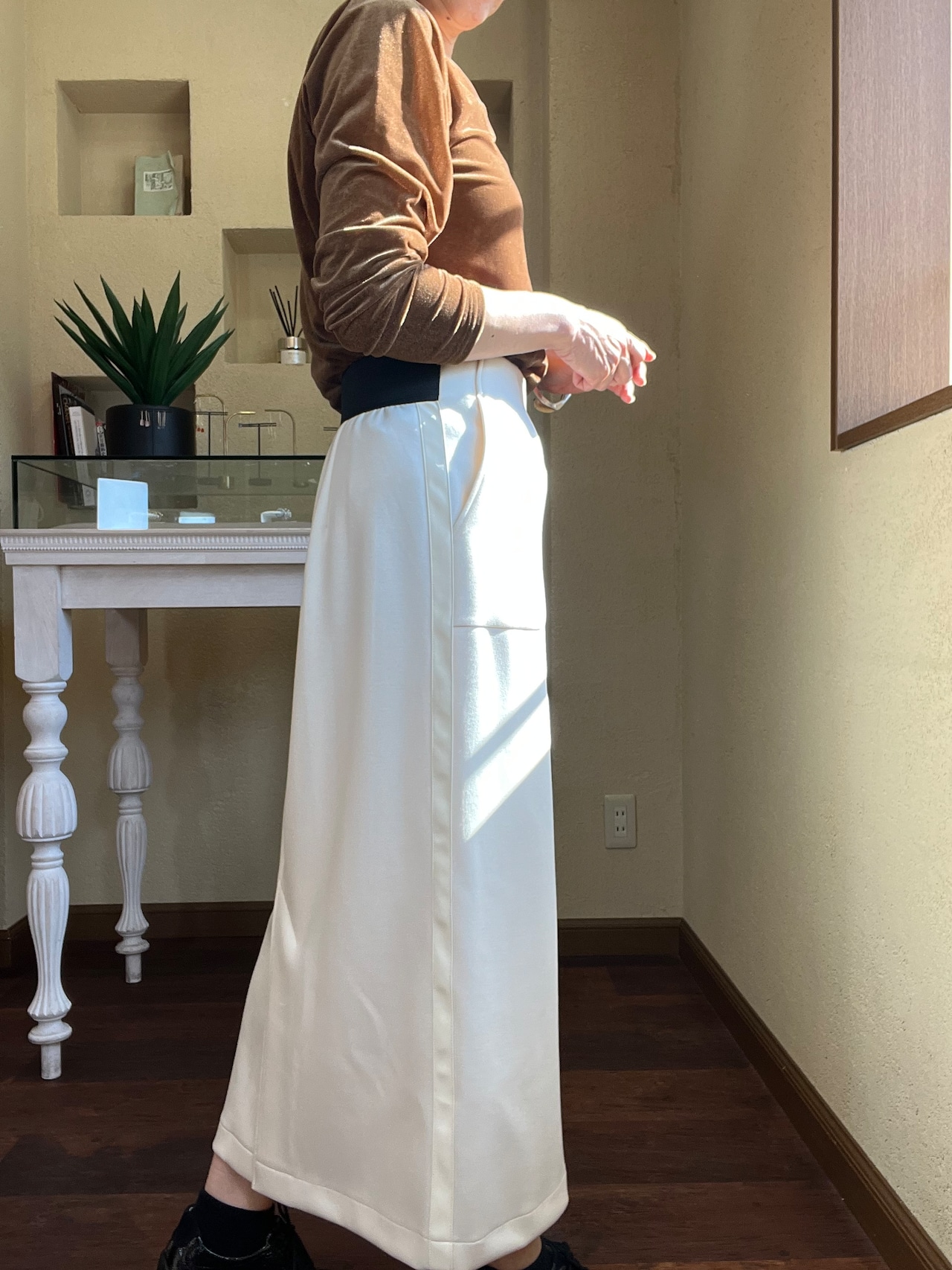 後ろスリットが入り歩きを妨げず、伸縮性もありイージーな穿き心地です