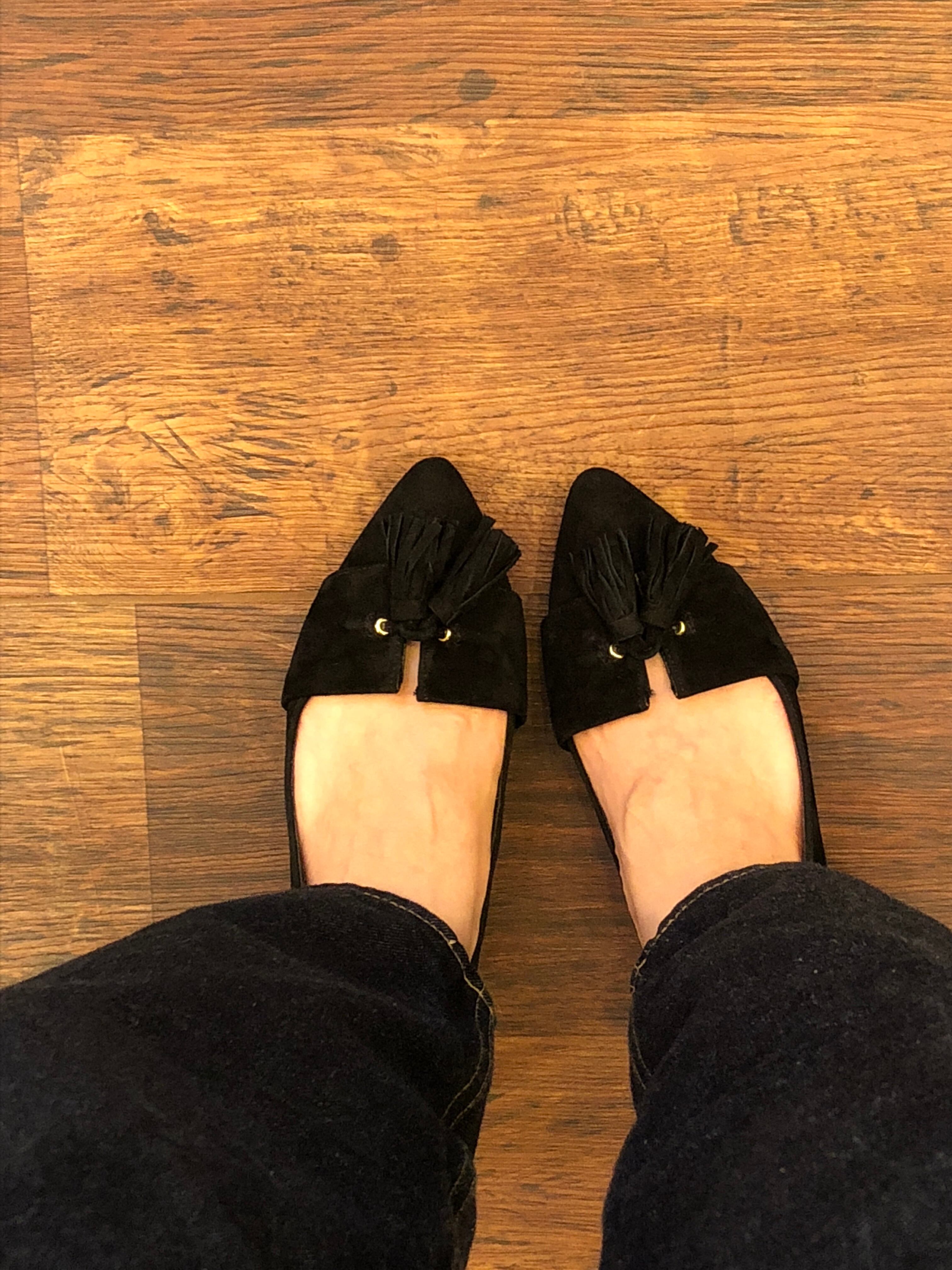 スエード素材のパンプス