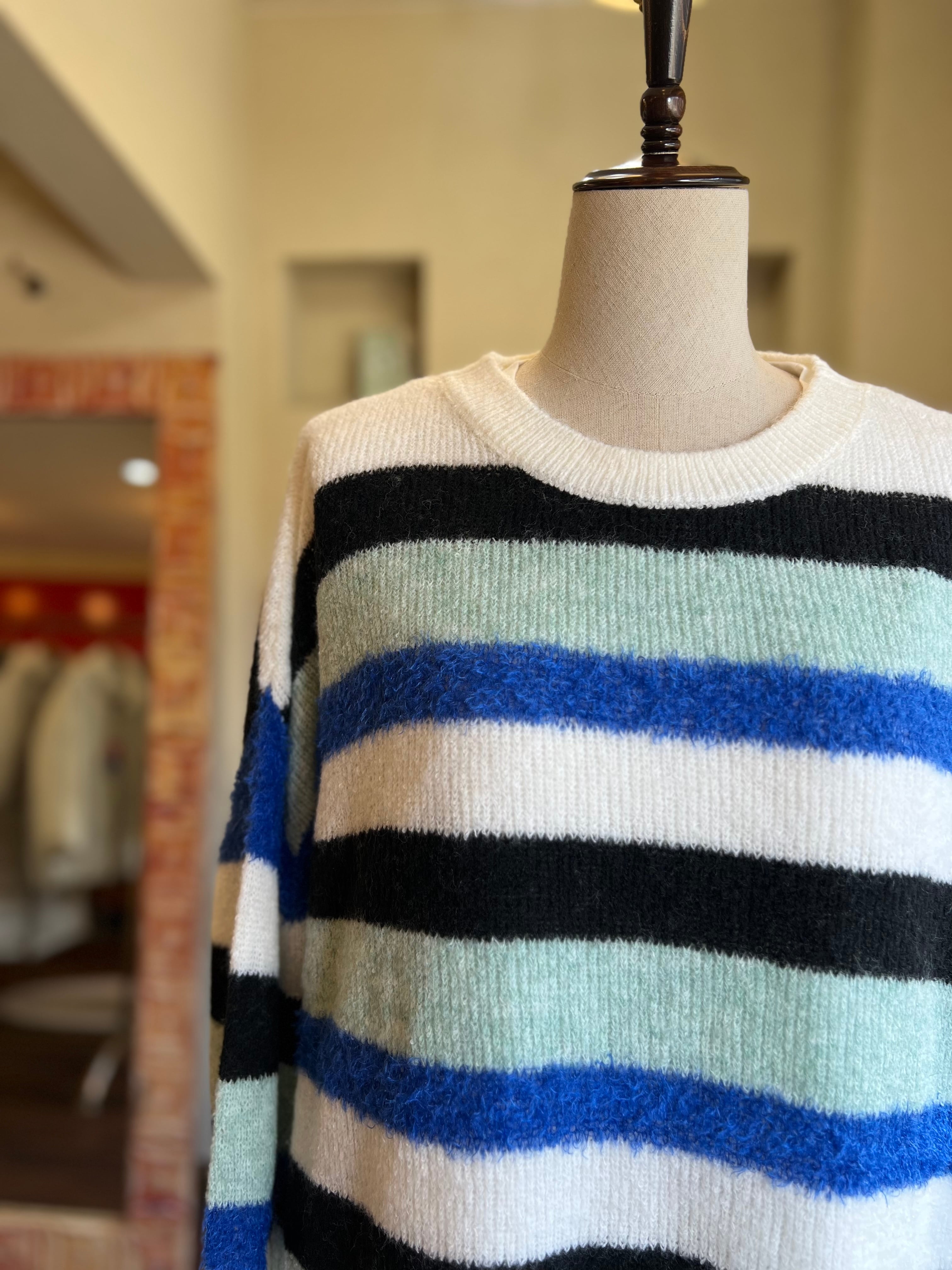 配色が綺麗なマルチボーダーのプルオーバーニット