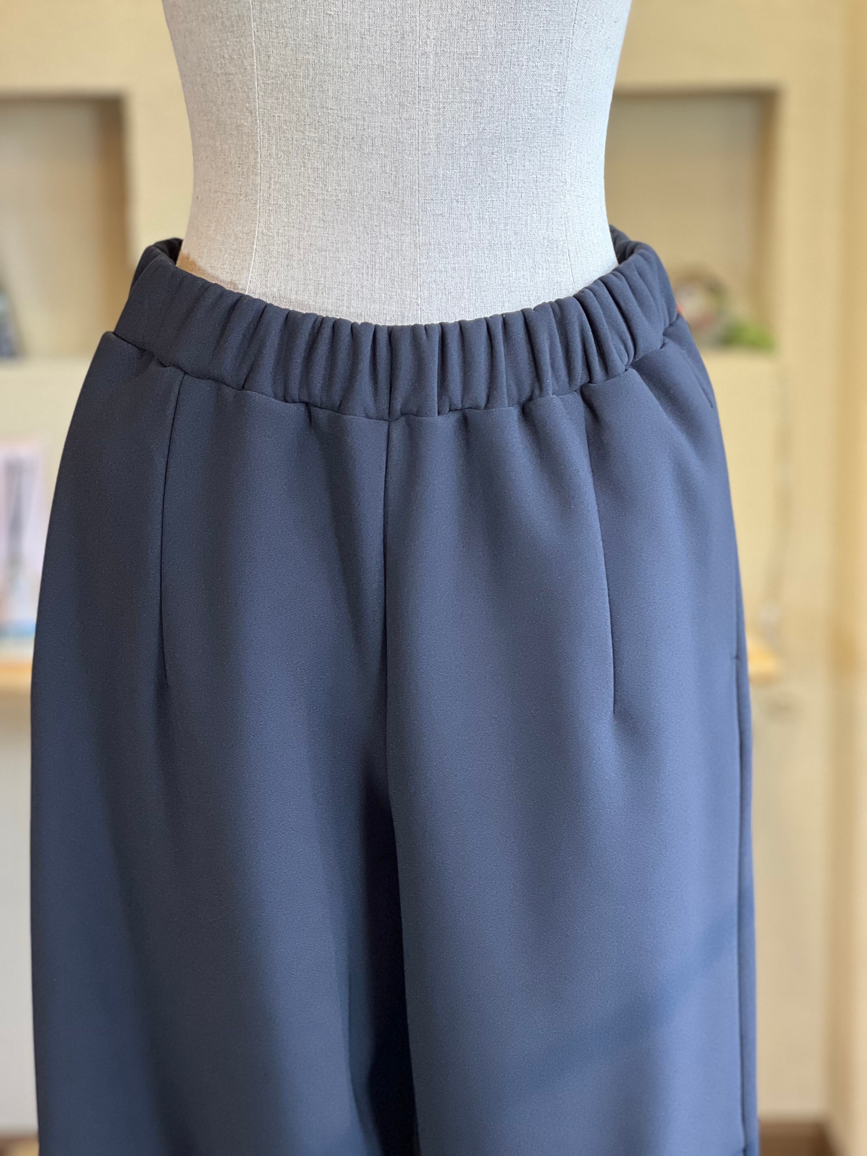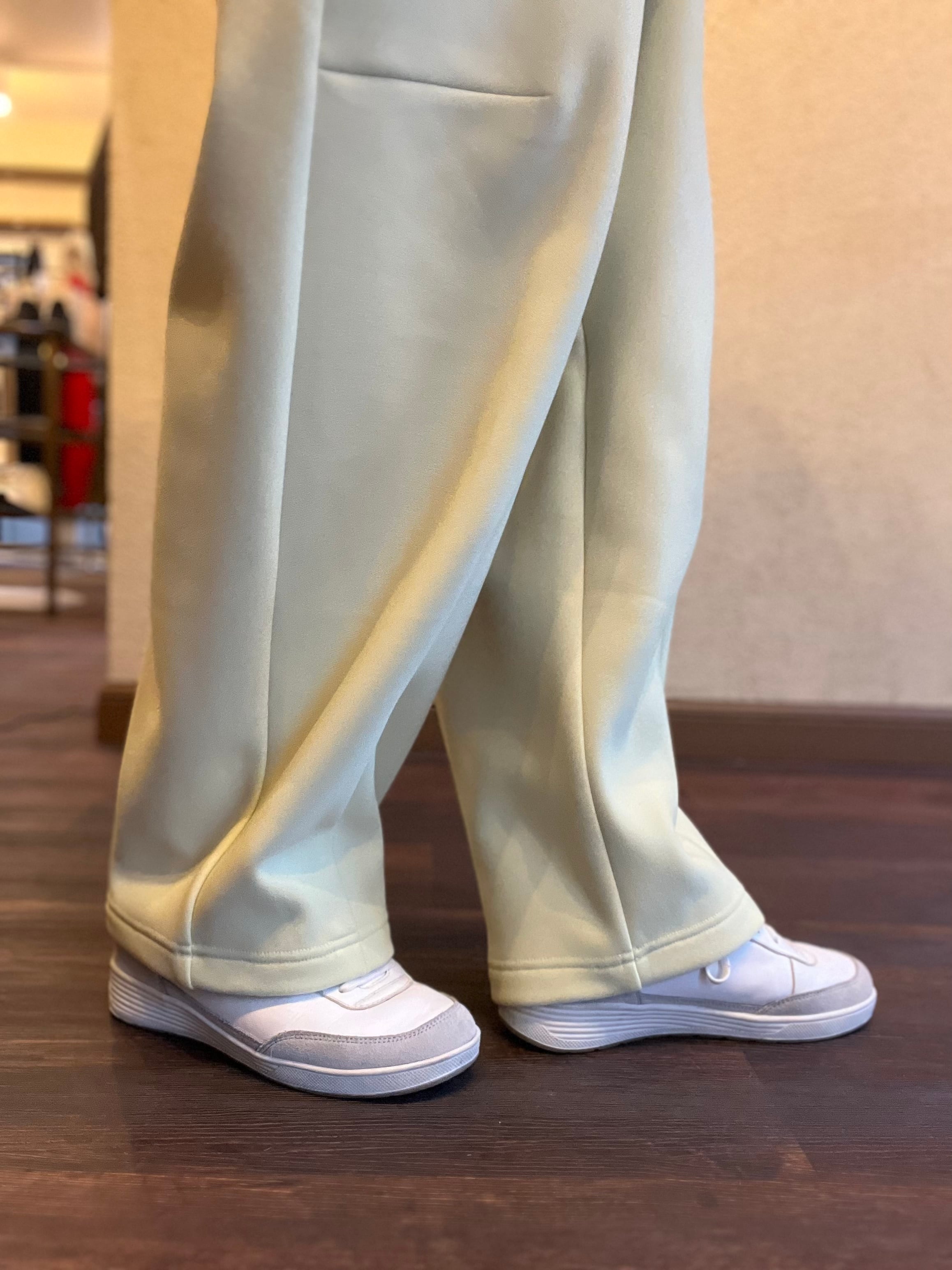 身体のラインを拾いにくく、ウエストはゴム仕様とリラクシーな穿き心地