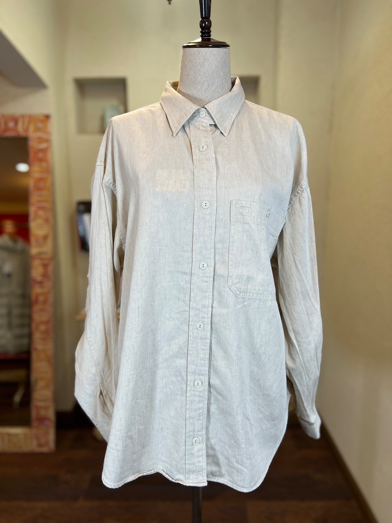 こちらも2WAYの着方(カシュクール)ができ、胸の大型ポケットや袖の2タックなど、ワークディティールも存分に入っている道具服感の高い1枚です