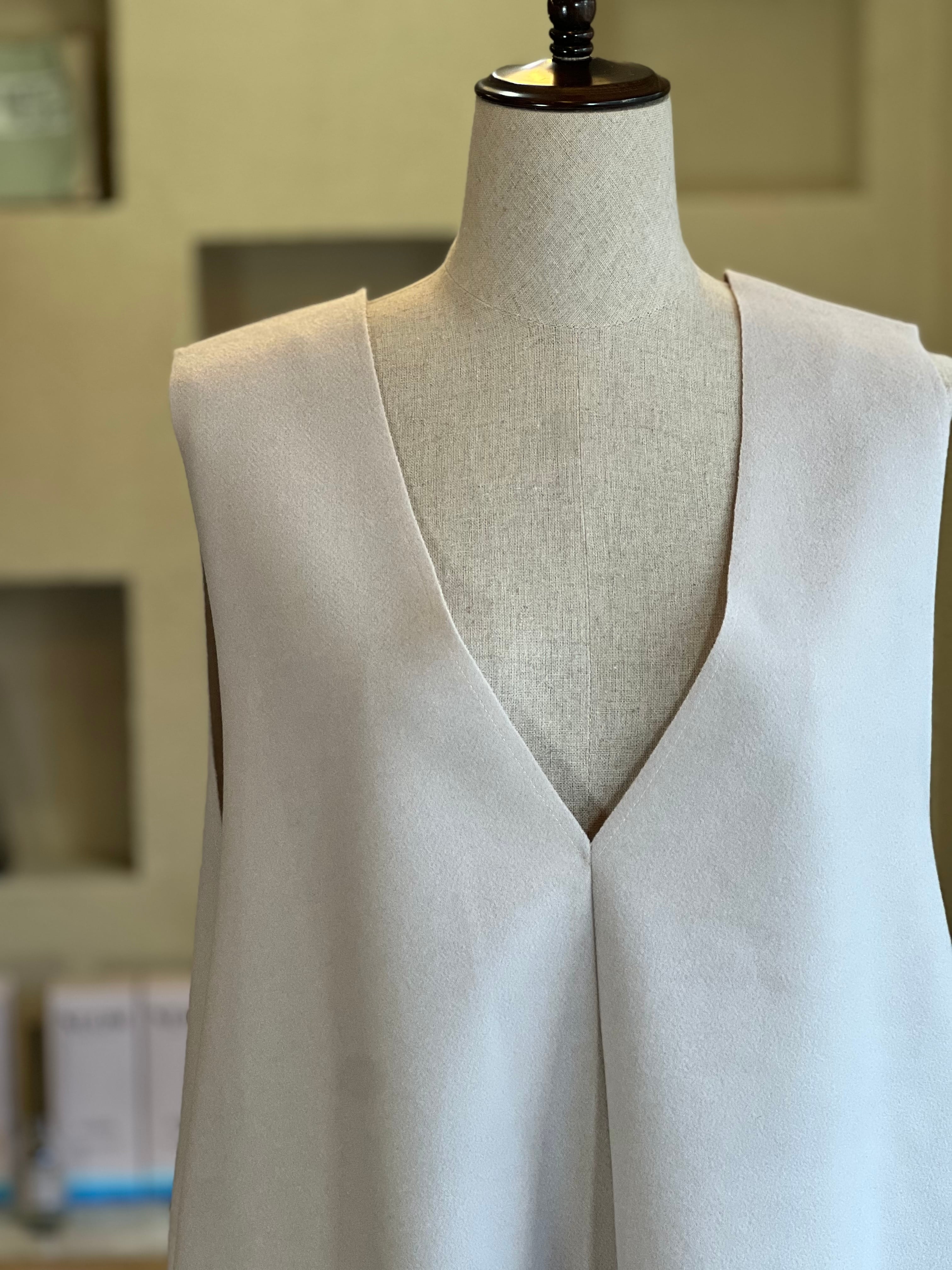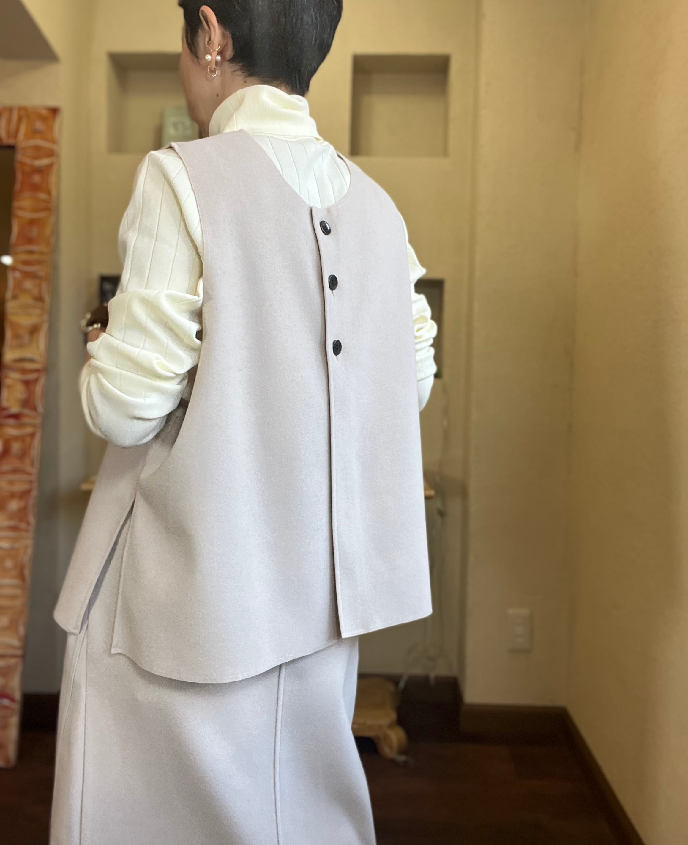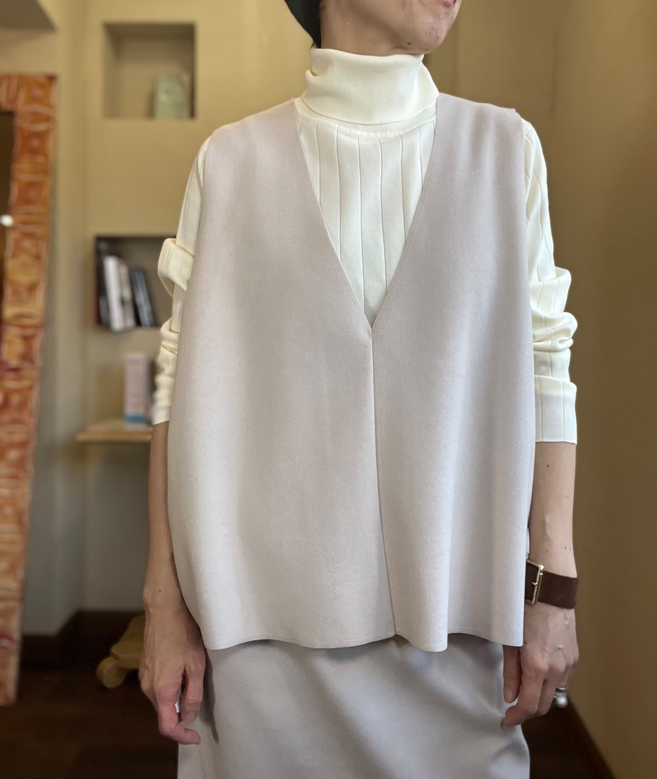 ウールをジャージー編みに仕上げた伸縮性のあるニット生地を使用したジレ