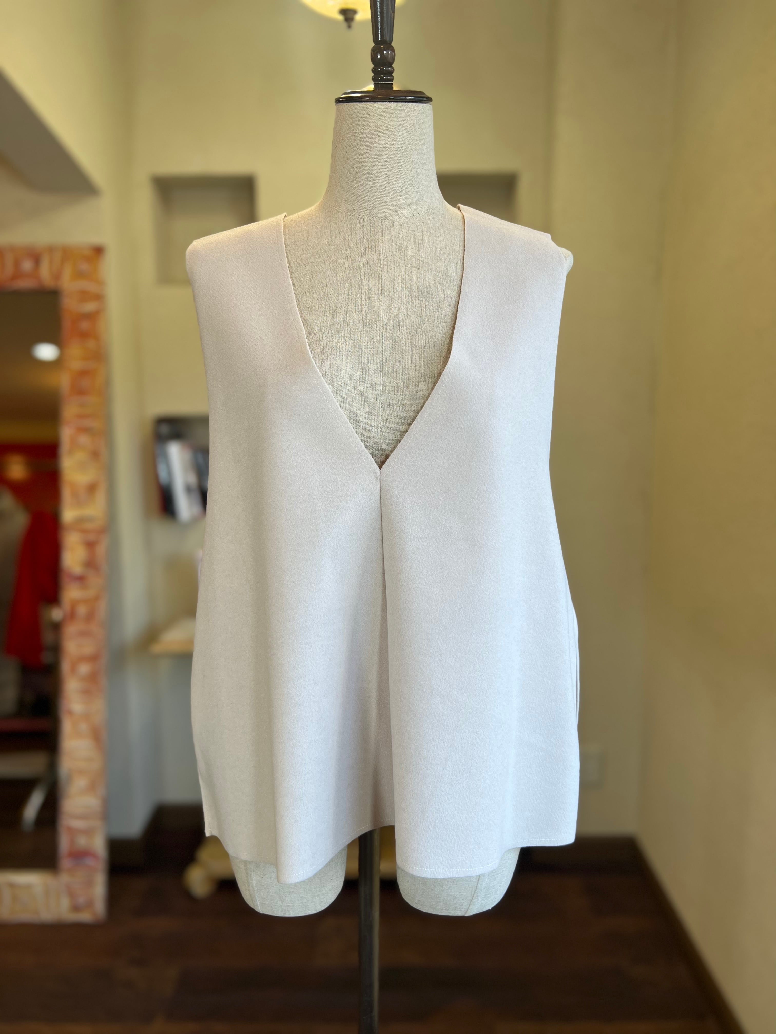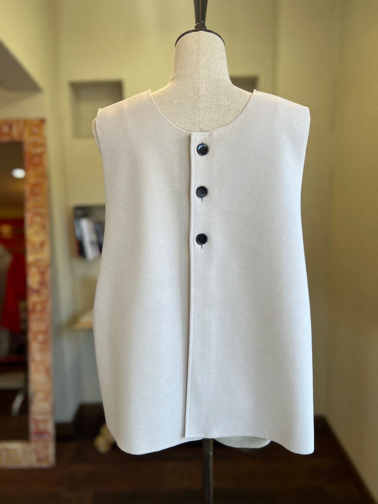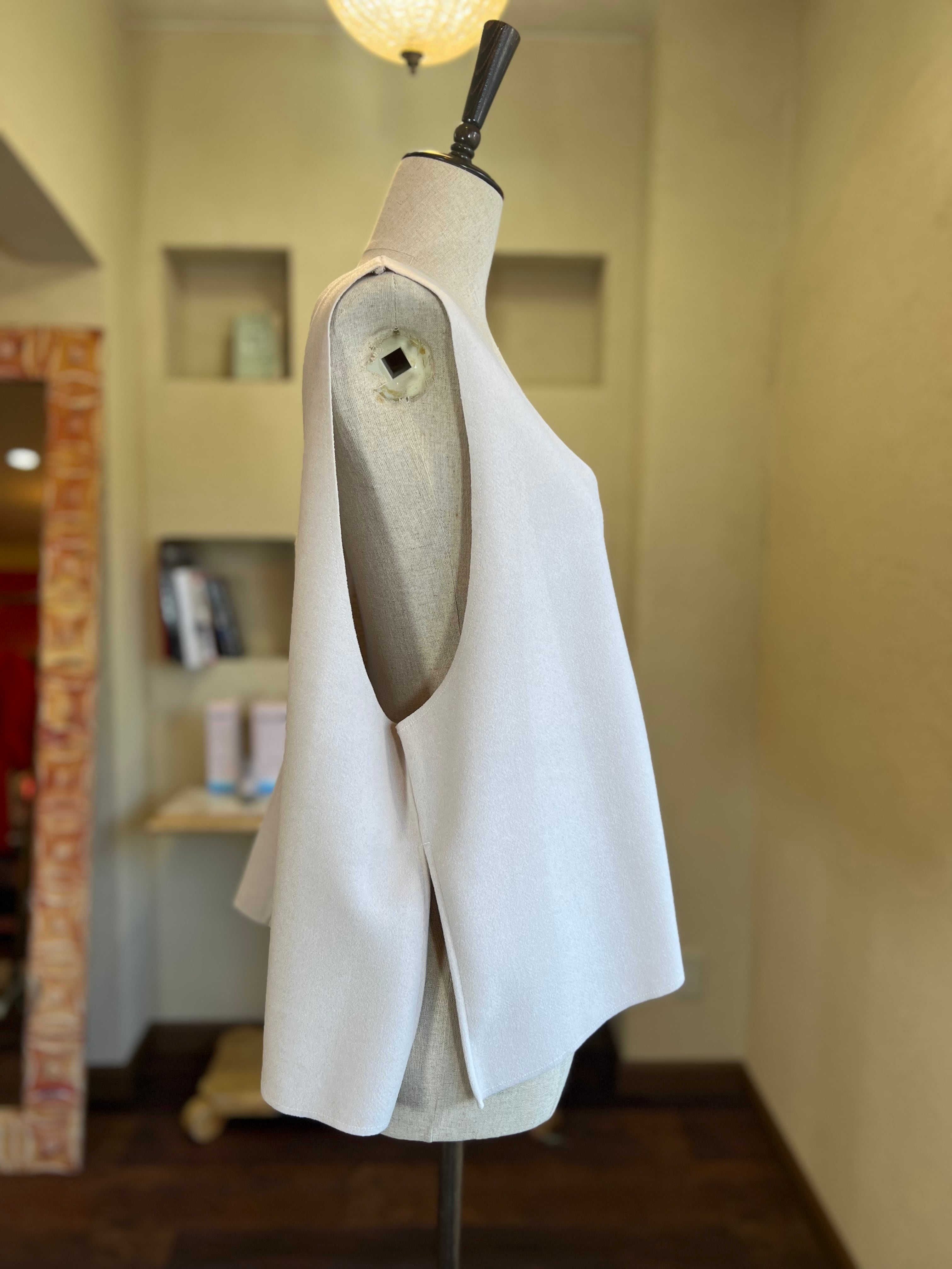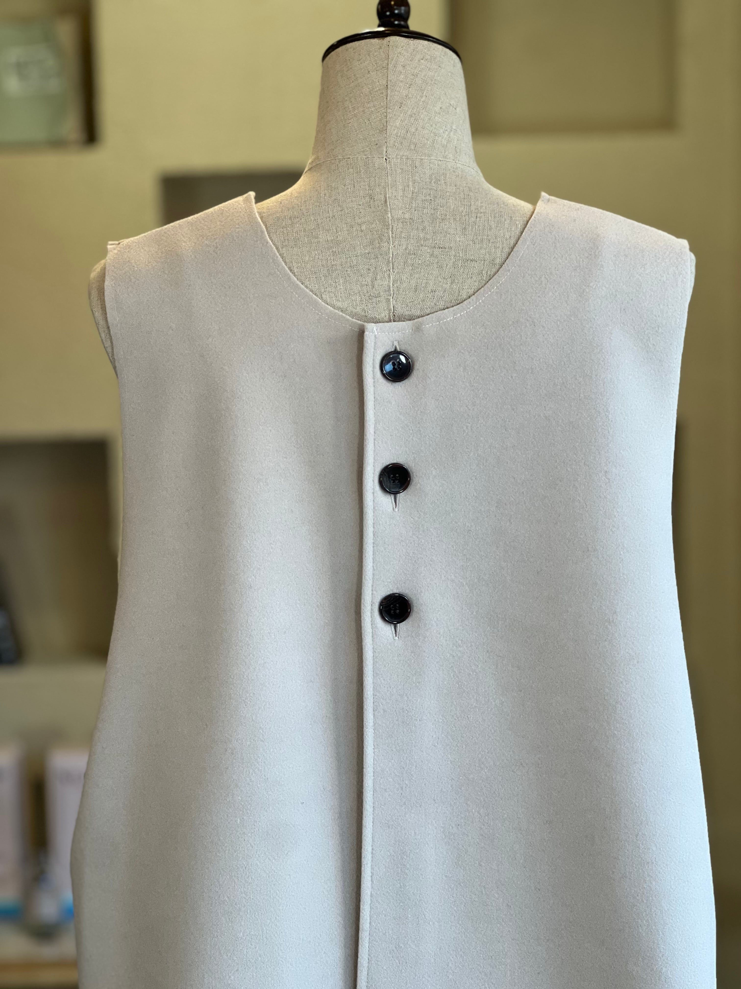 ウールをジャージー編みに仕上げた伸縮性のあるニット生地を使用したジレ