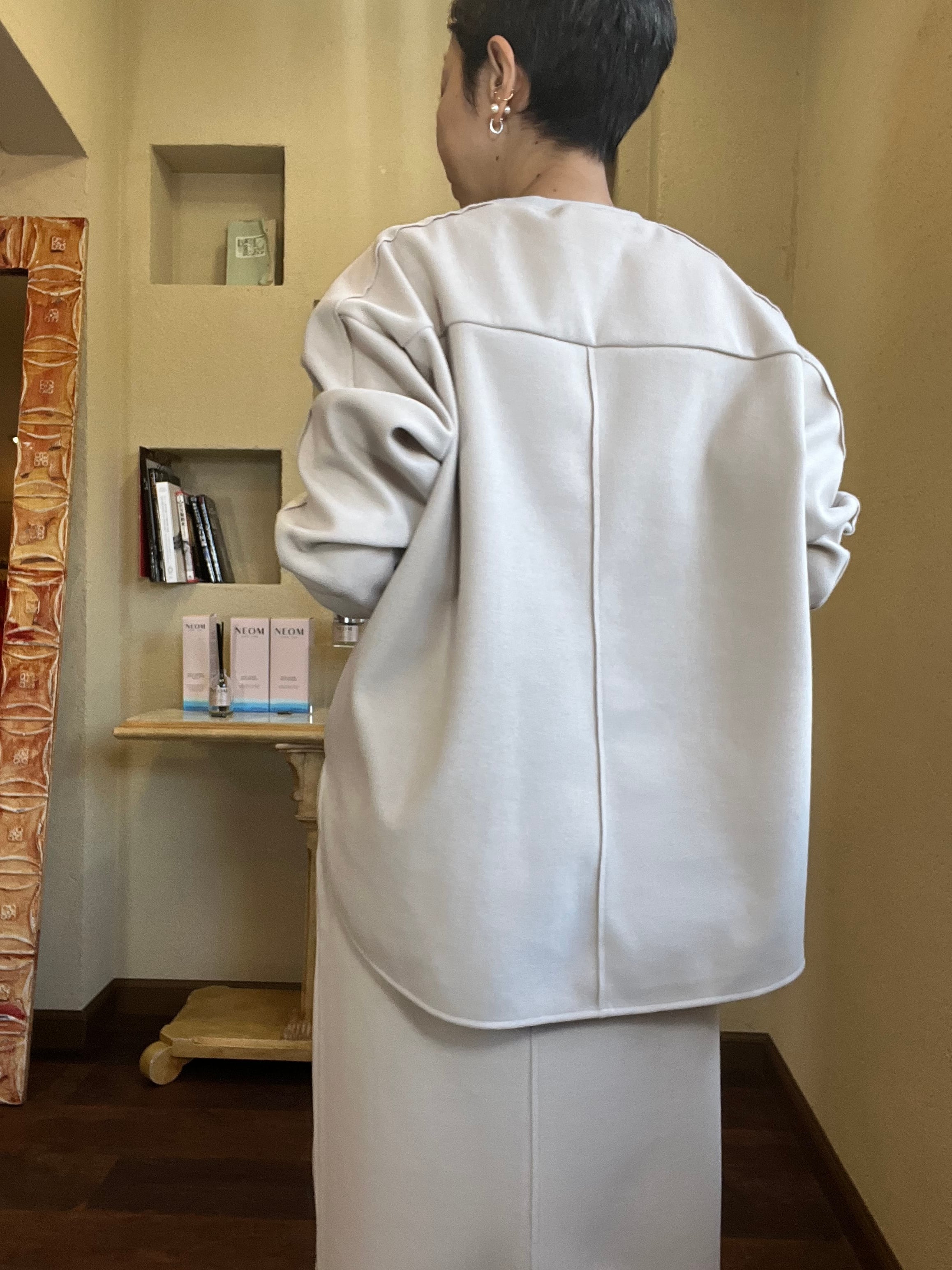 ウールをジャージー編みに仕上げた伸縮性のあるニット生地を使用した