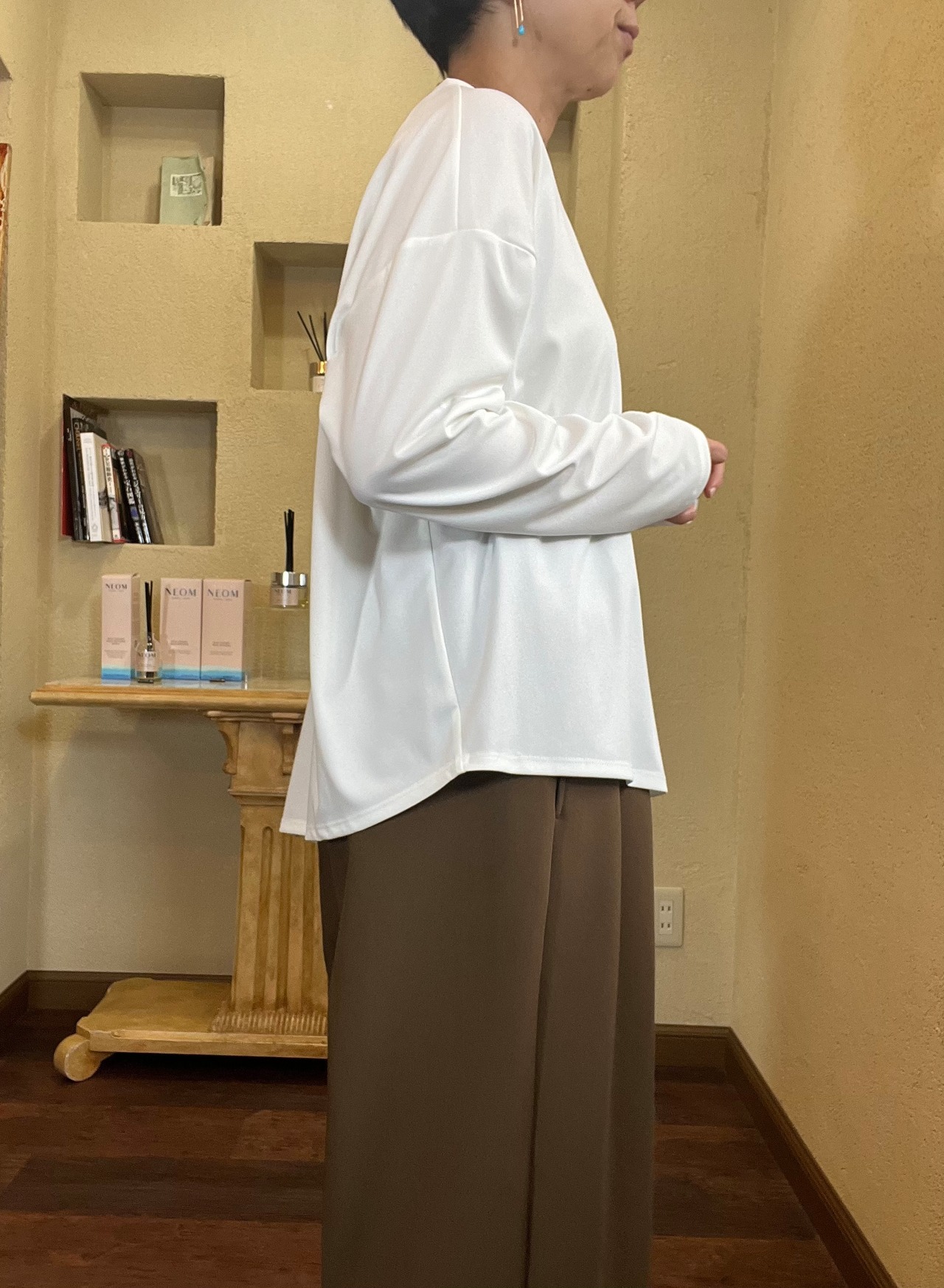 程よい厚みがあり透けにくく一枚着としても着やすいデザインです