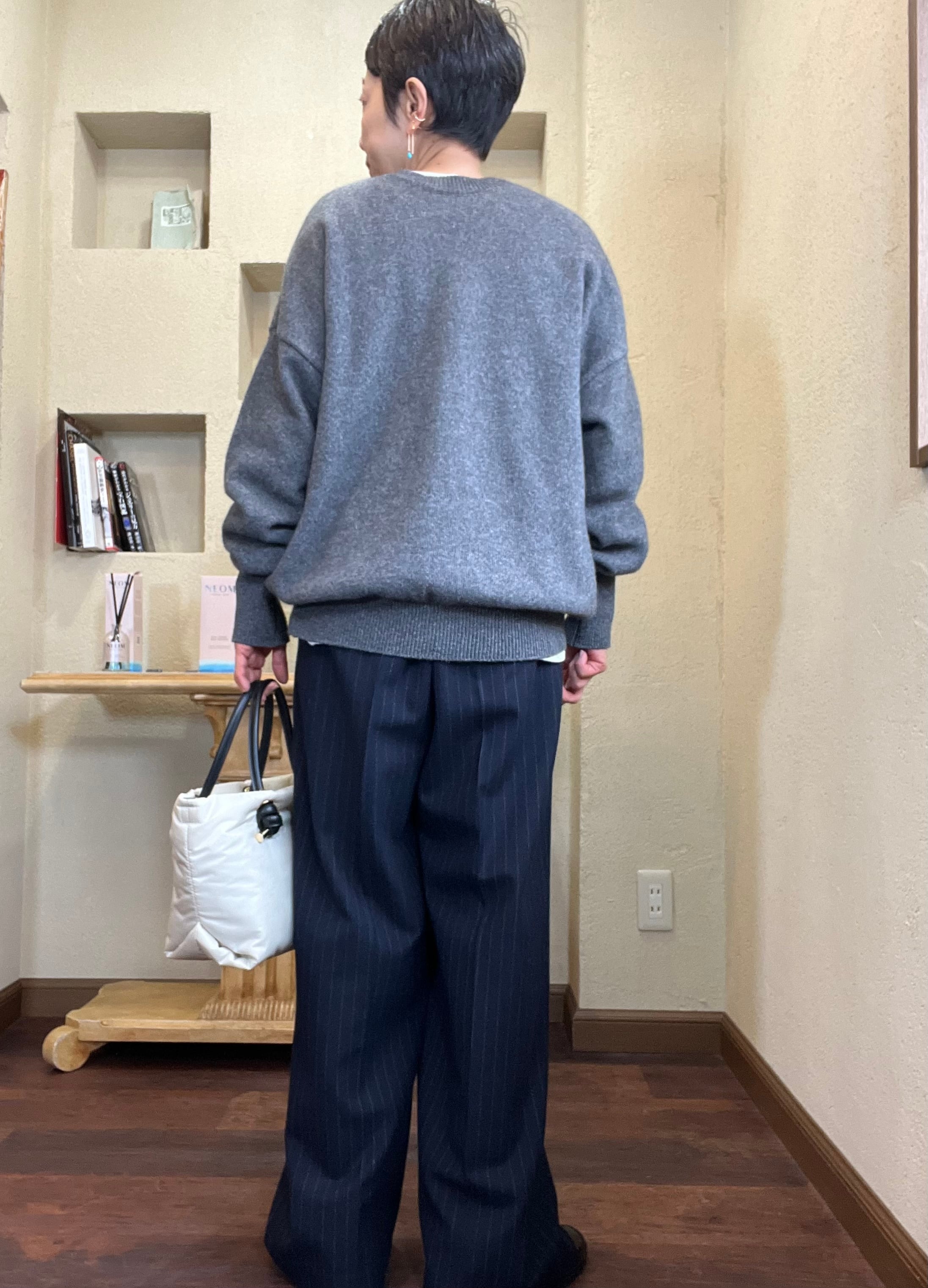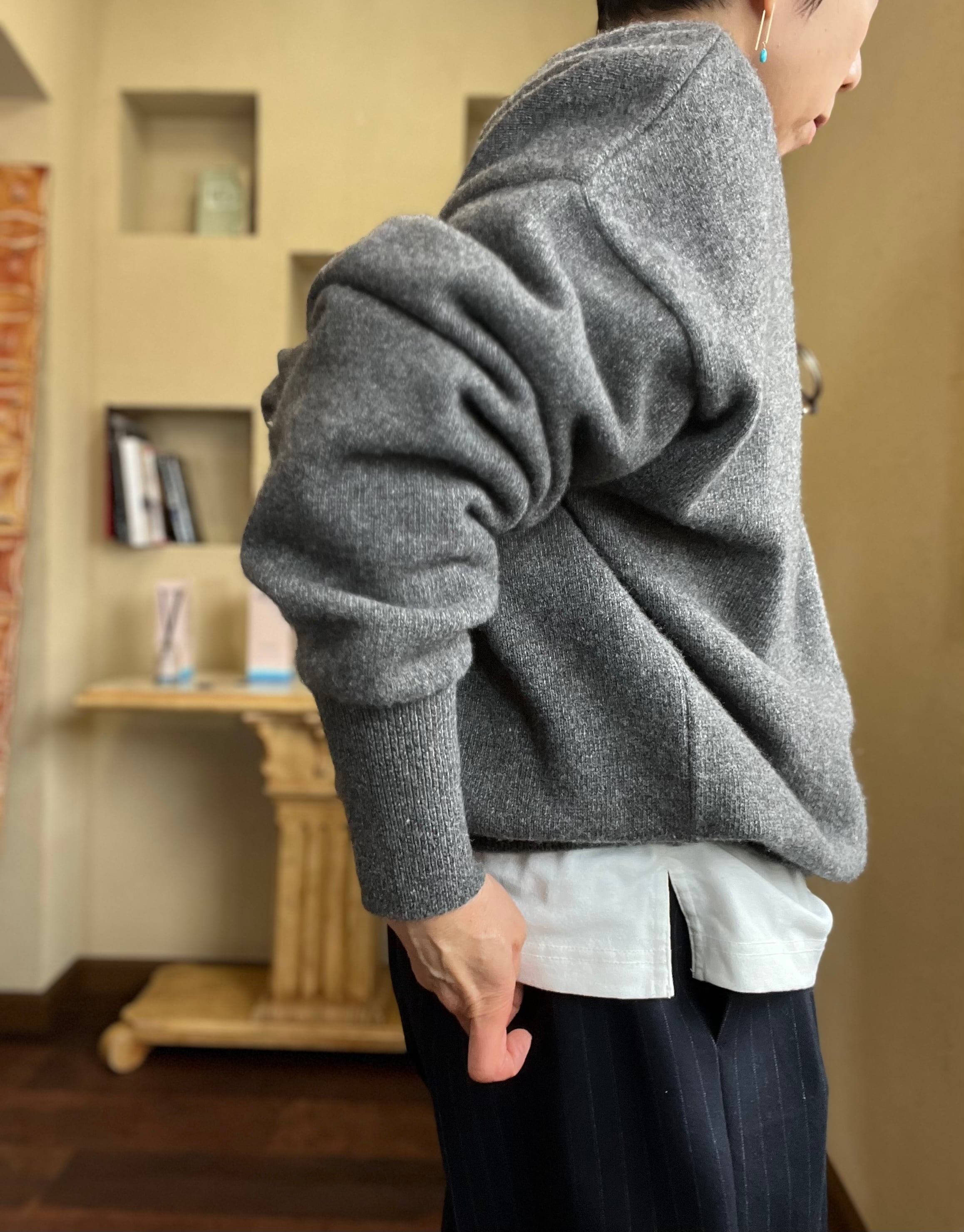 フロンとはVネックカーデ、バックはクルーで前後着用可能な2way仕様の