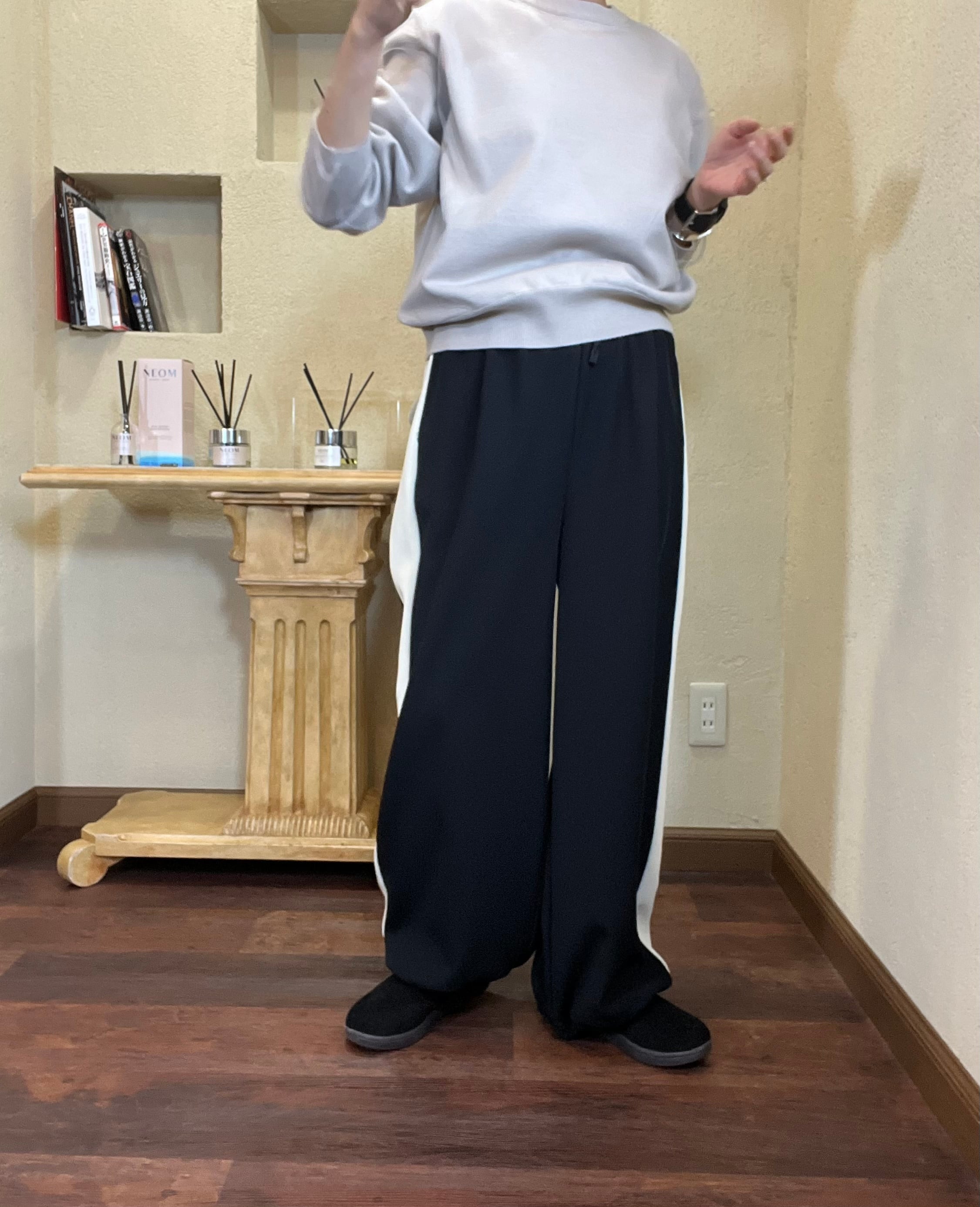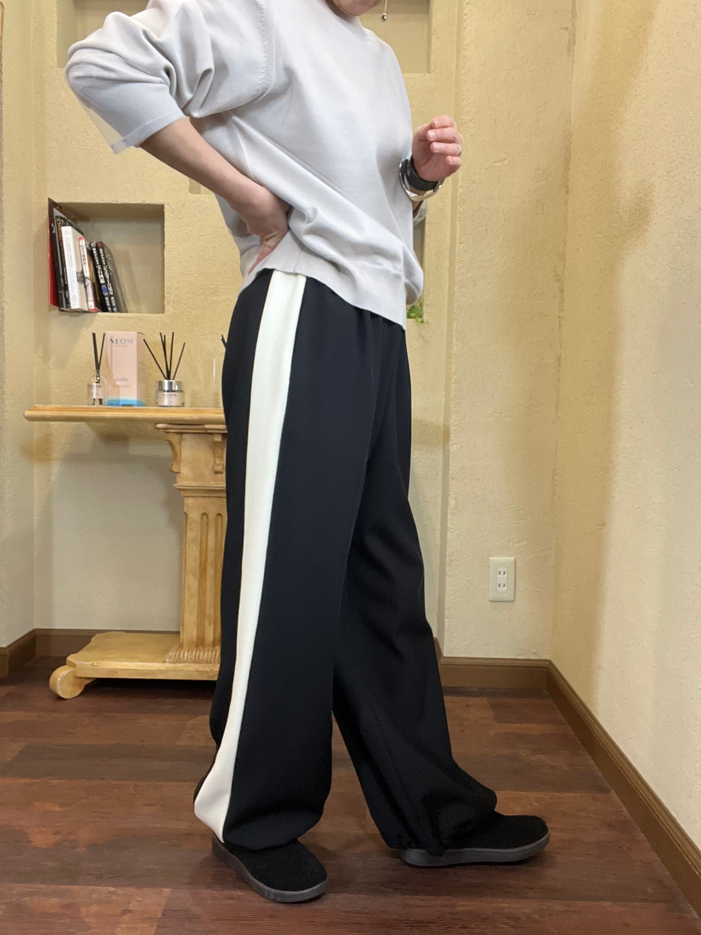 ドライな糸を使用したカジュアルに穿きこなせるラインパンツ
