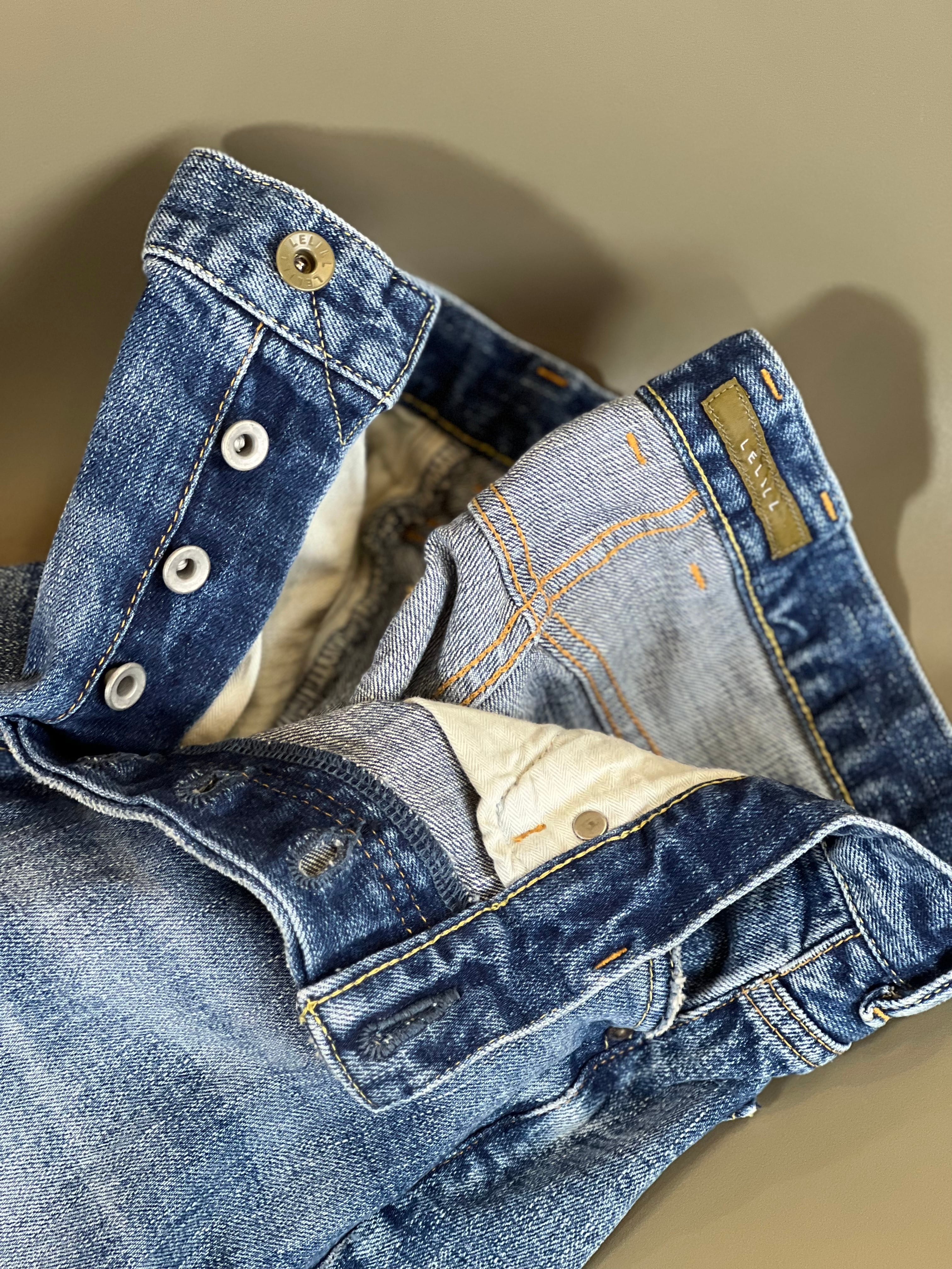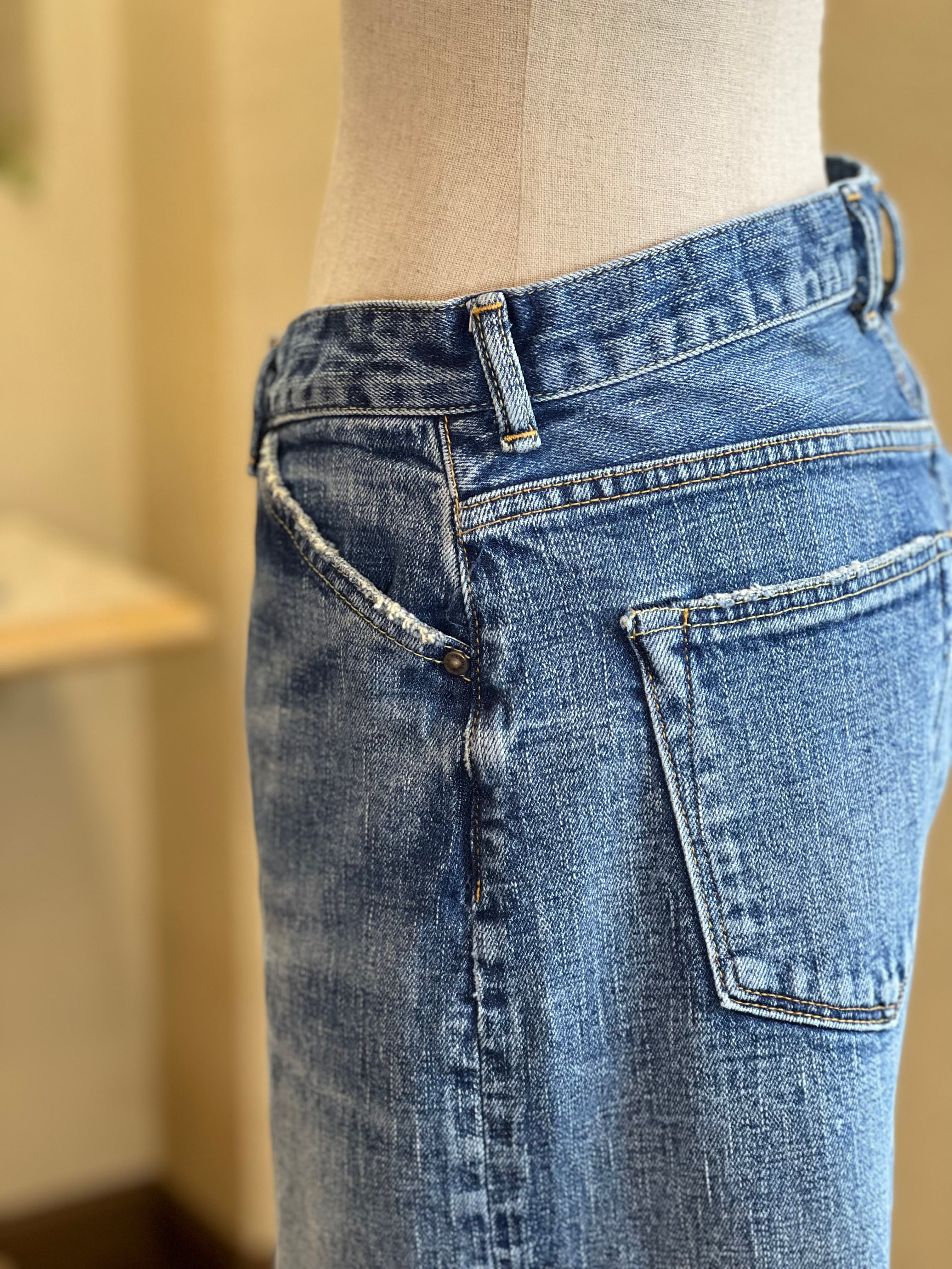 本格的なエイジング感を再現したlelillカーキラインのフラッグデニムになります