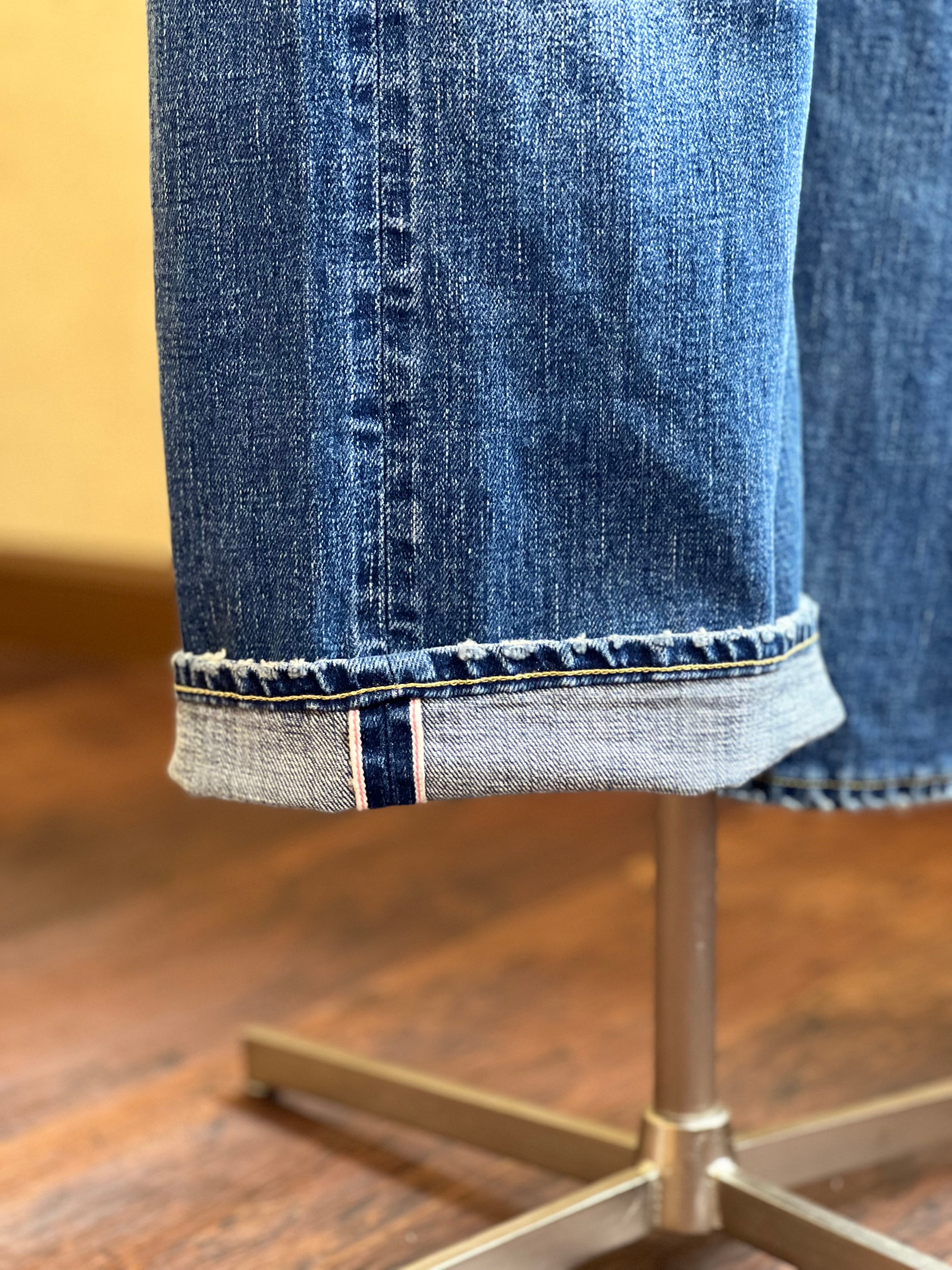 生地は本格的な140OZセルビッチ付きストレッチデニムを採用