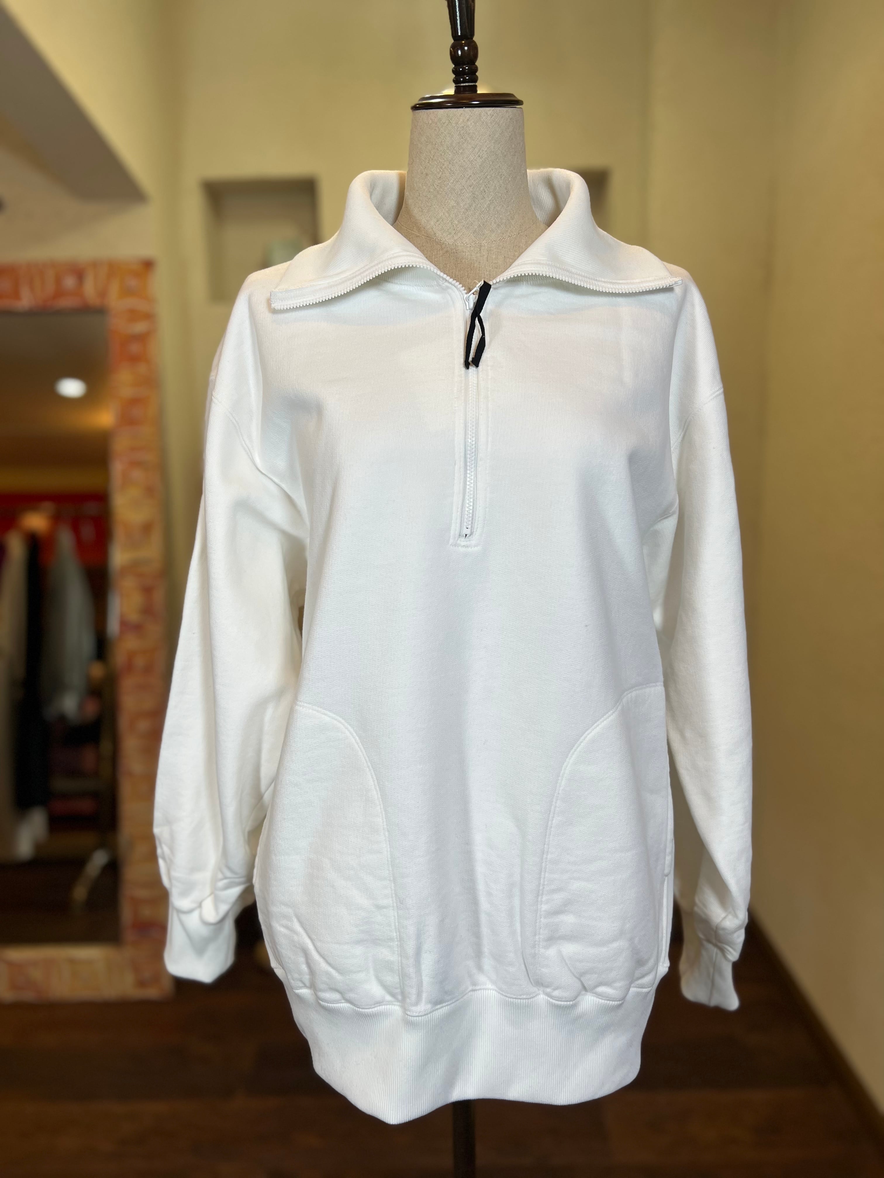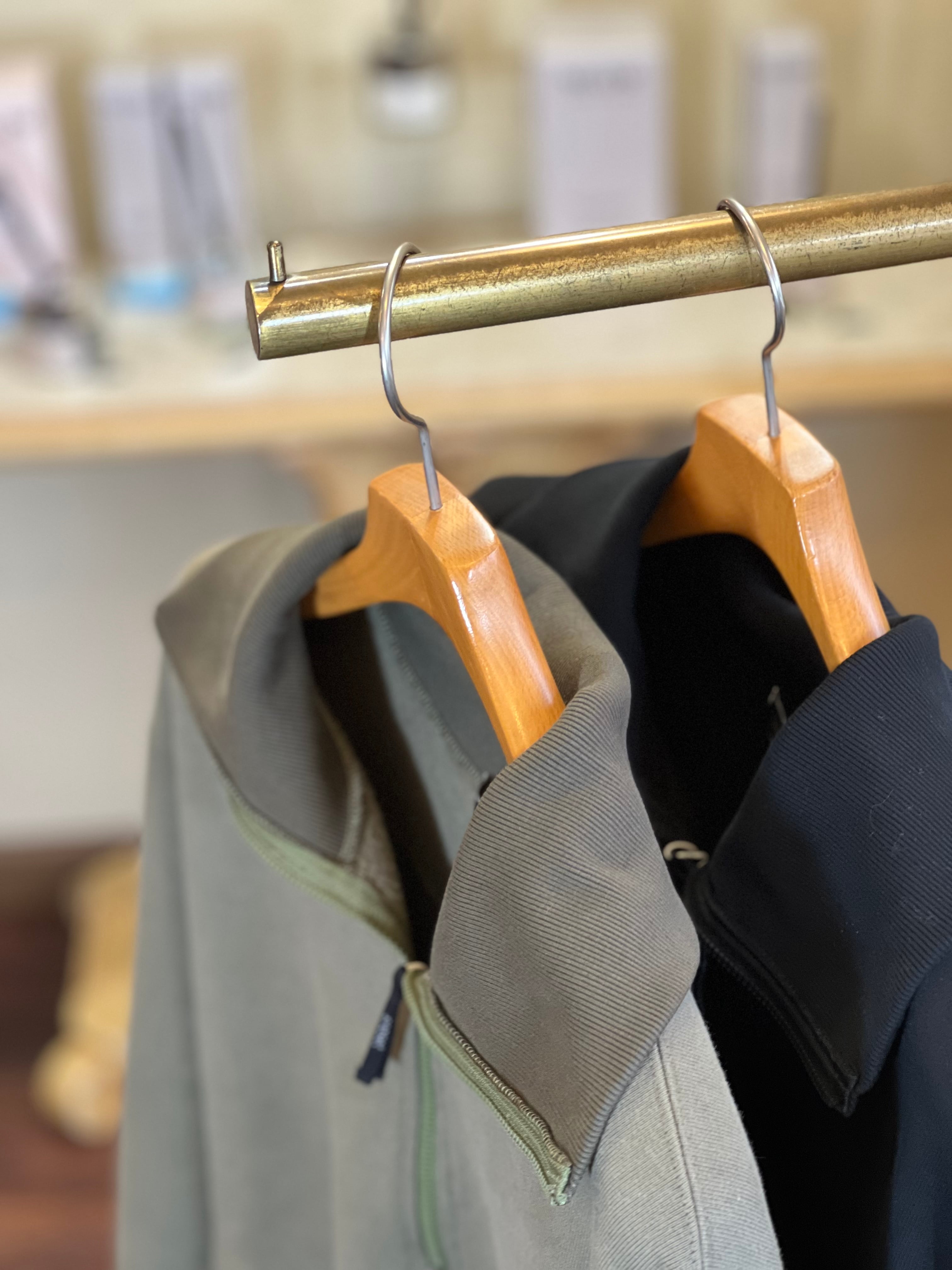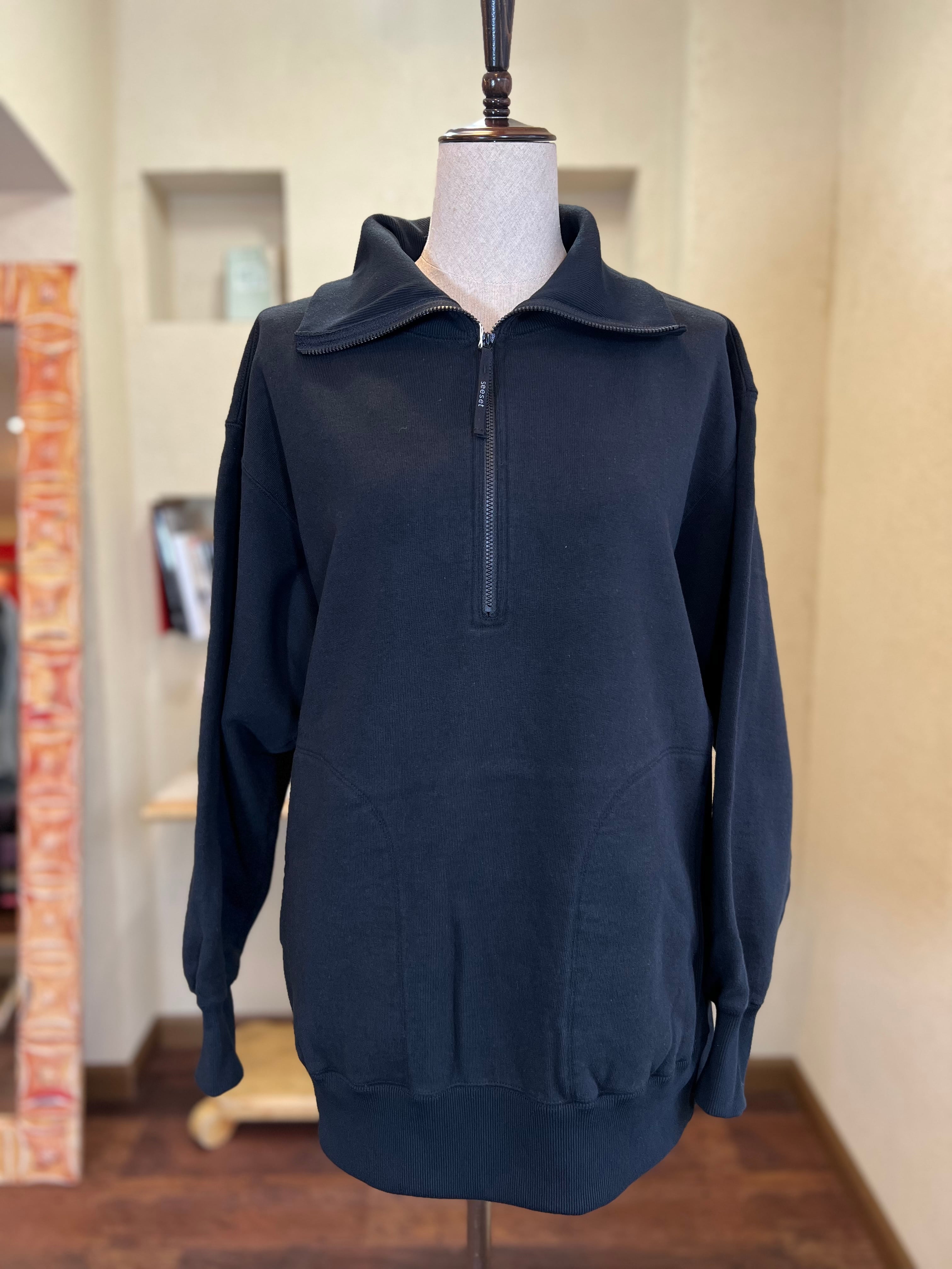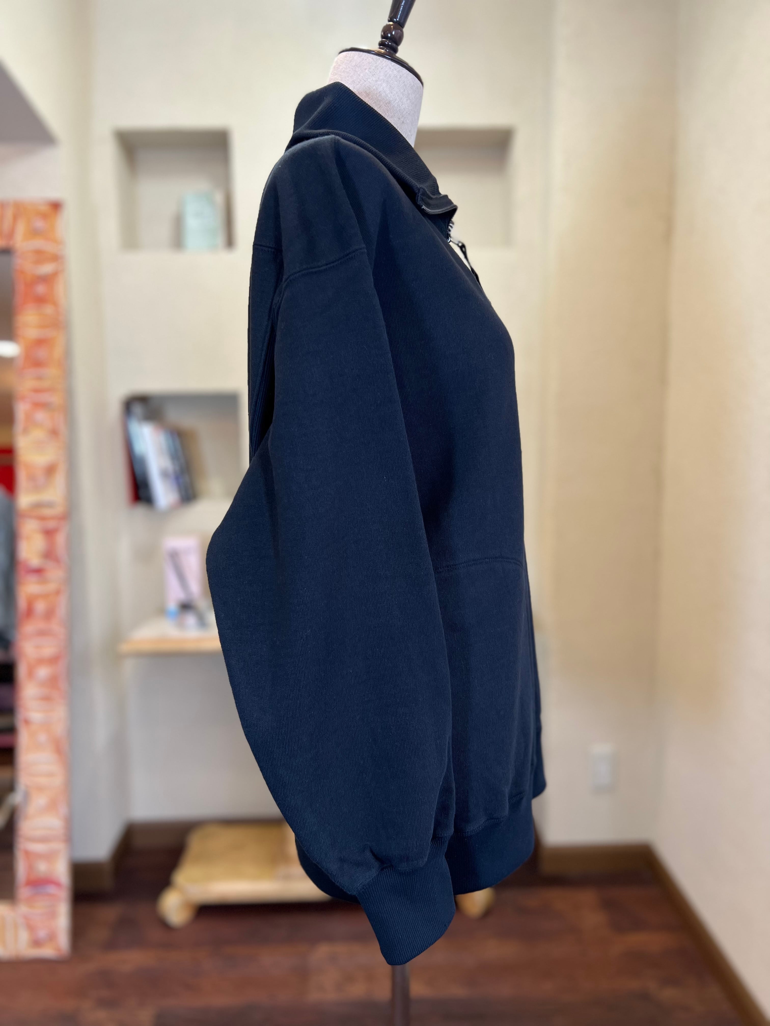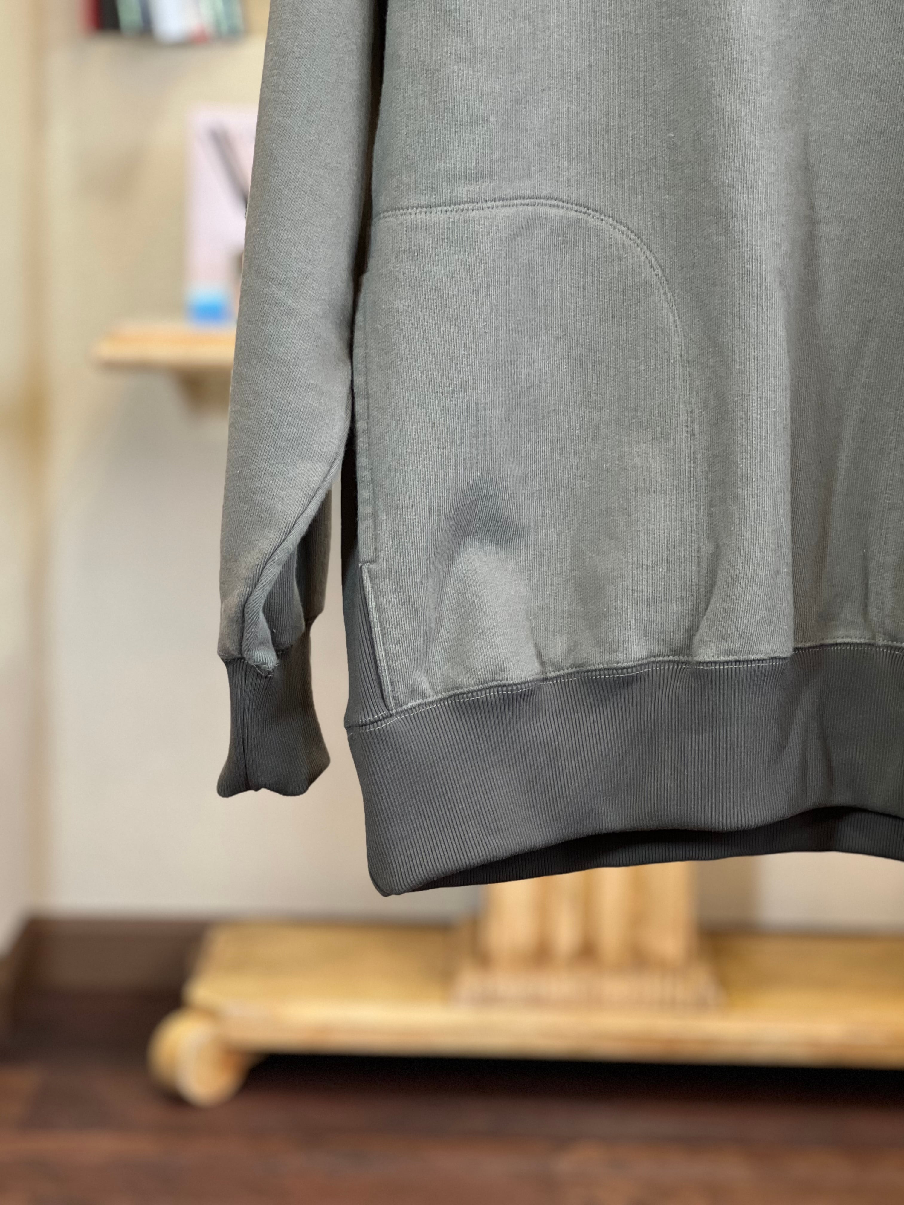 ハーフzip仕様で、一枚でも便利に着れるようハンドウォーマーとしても使用出来る腰ポケットをプラス