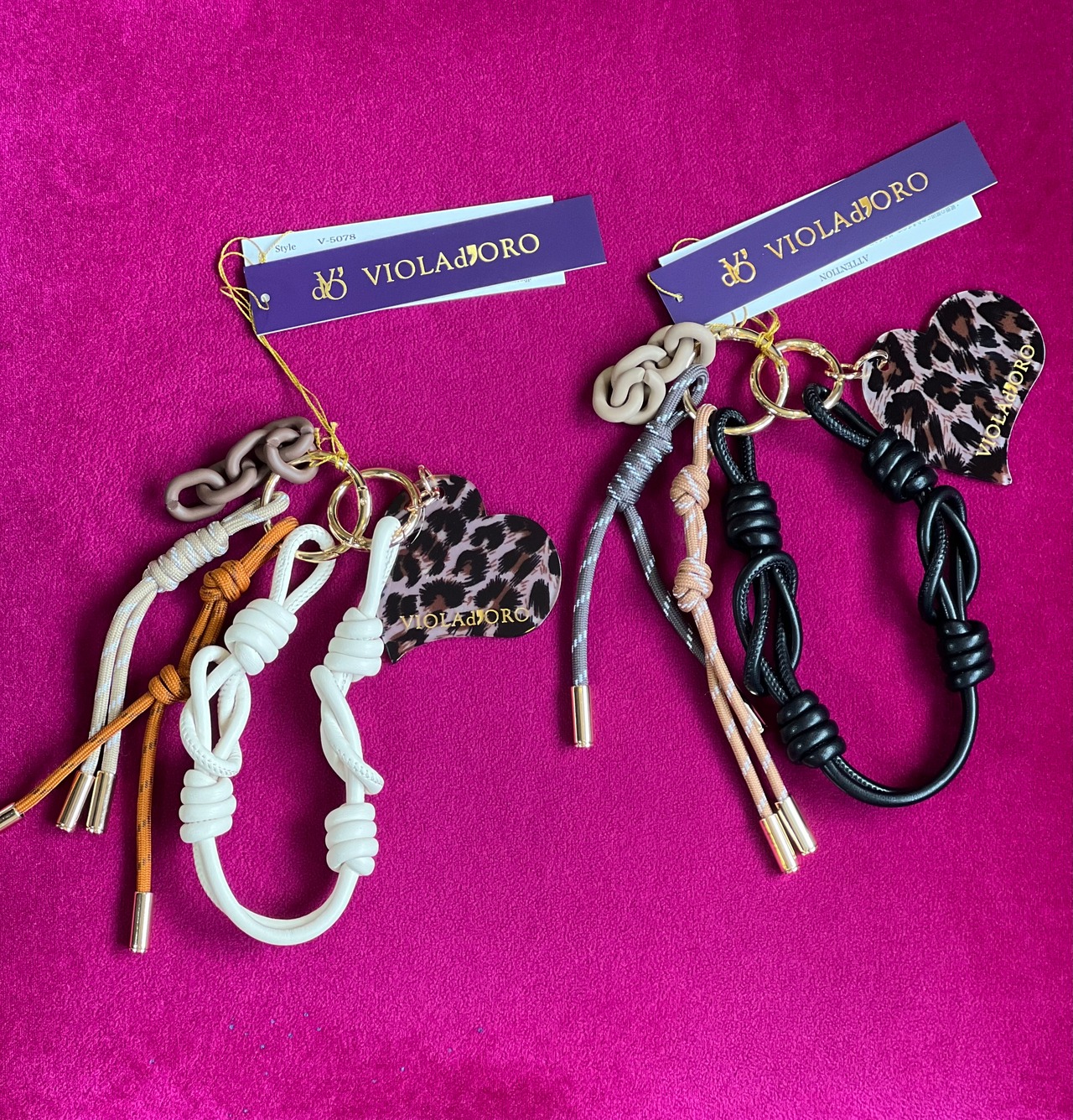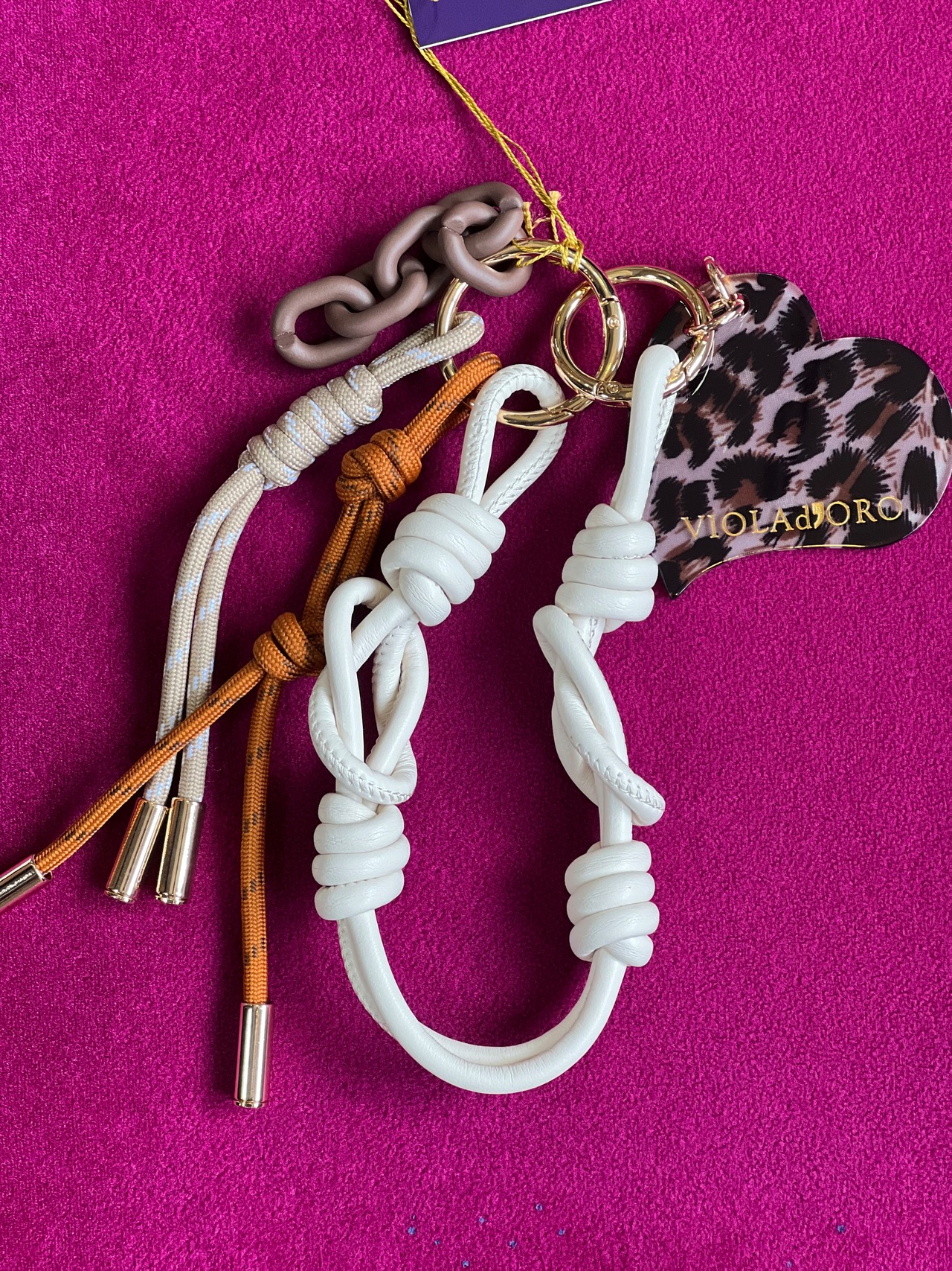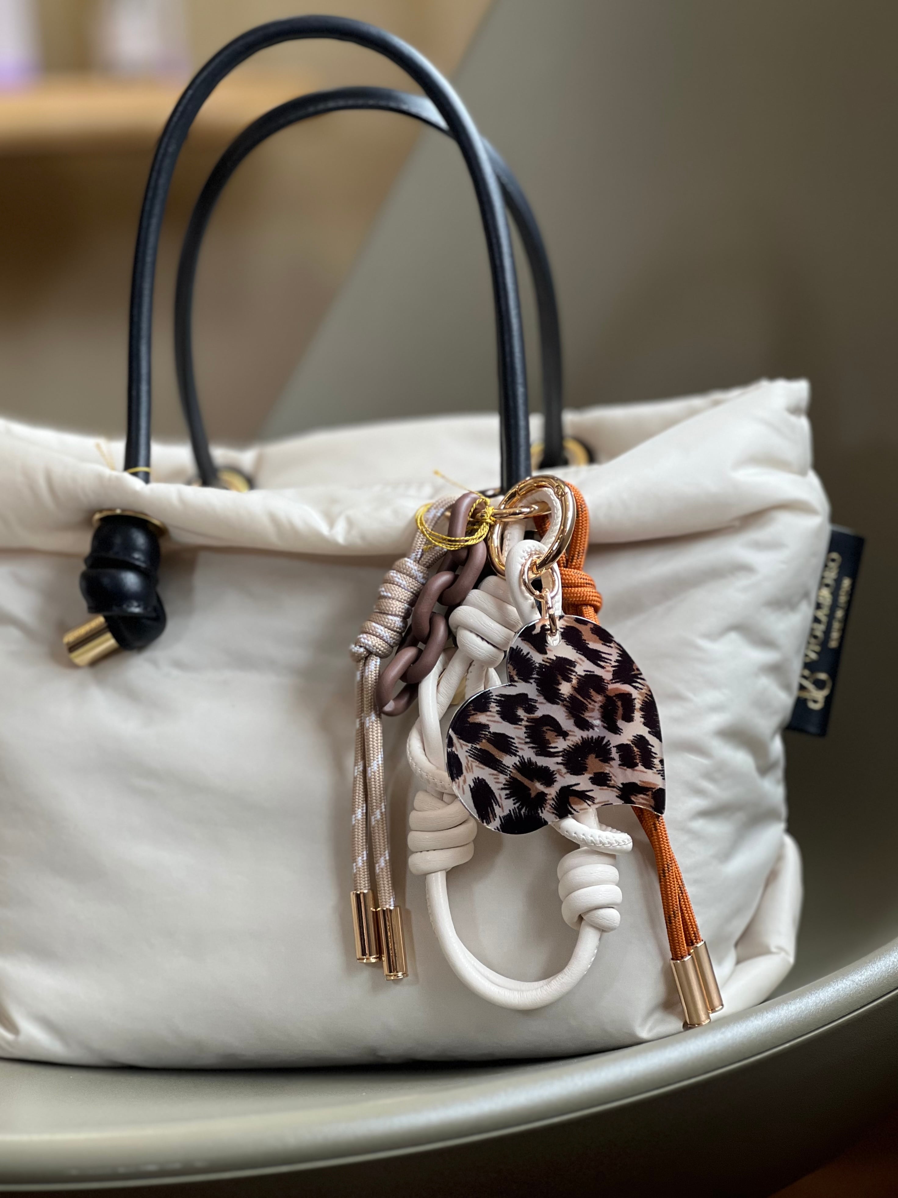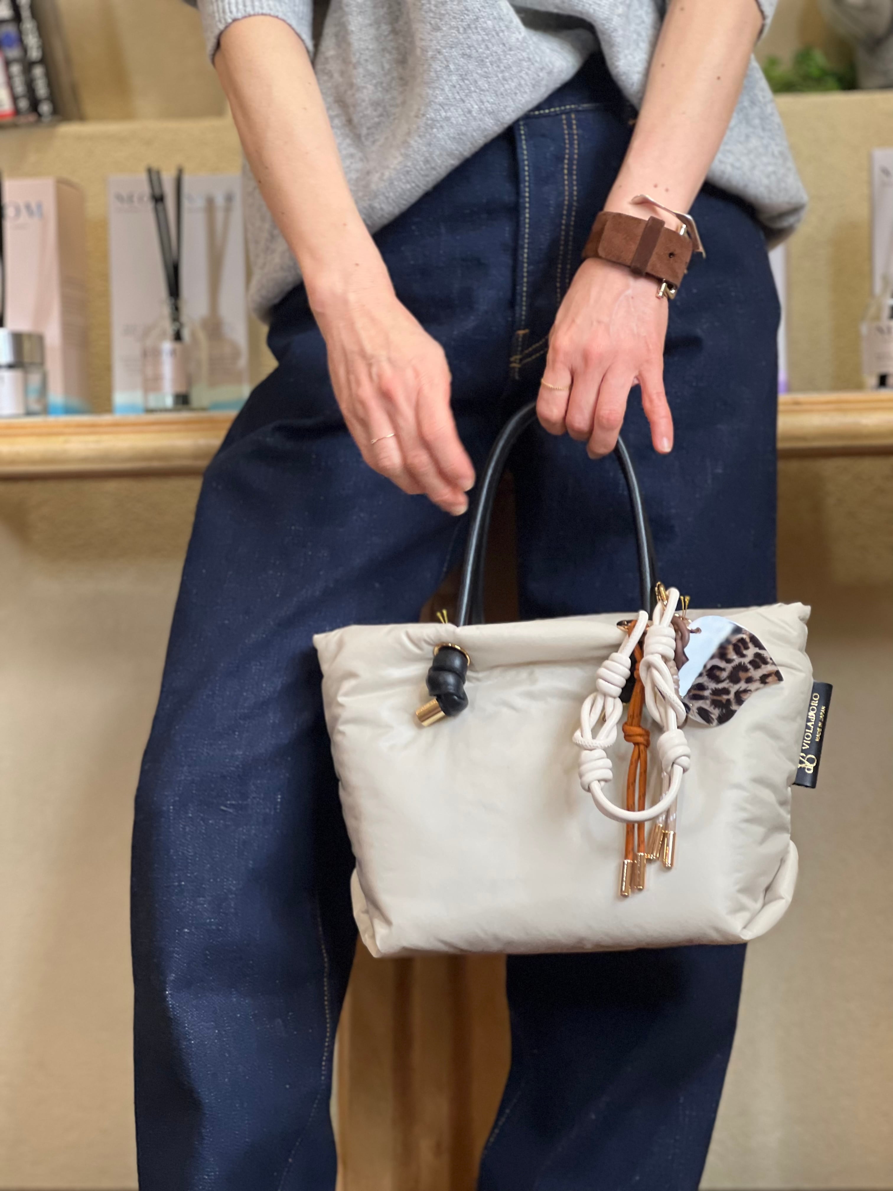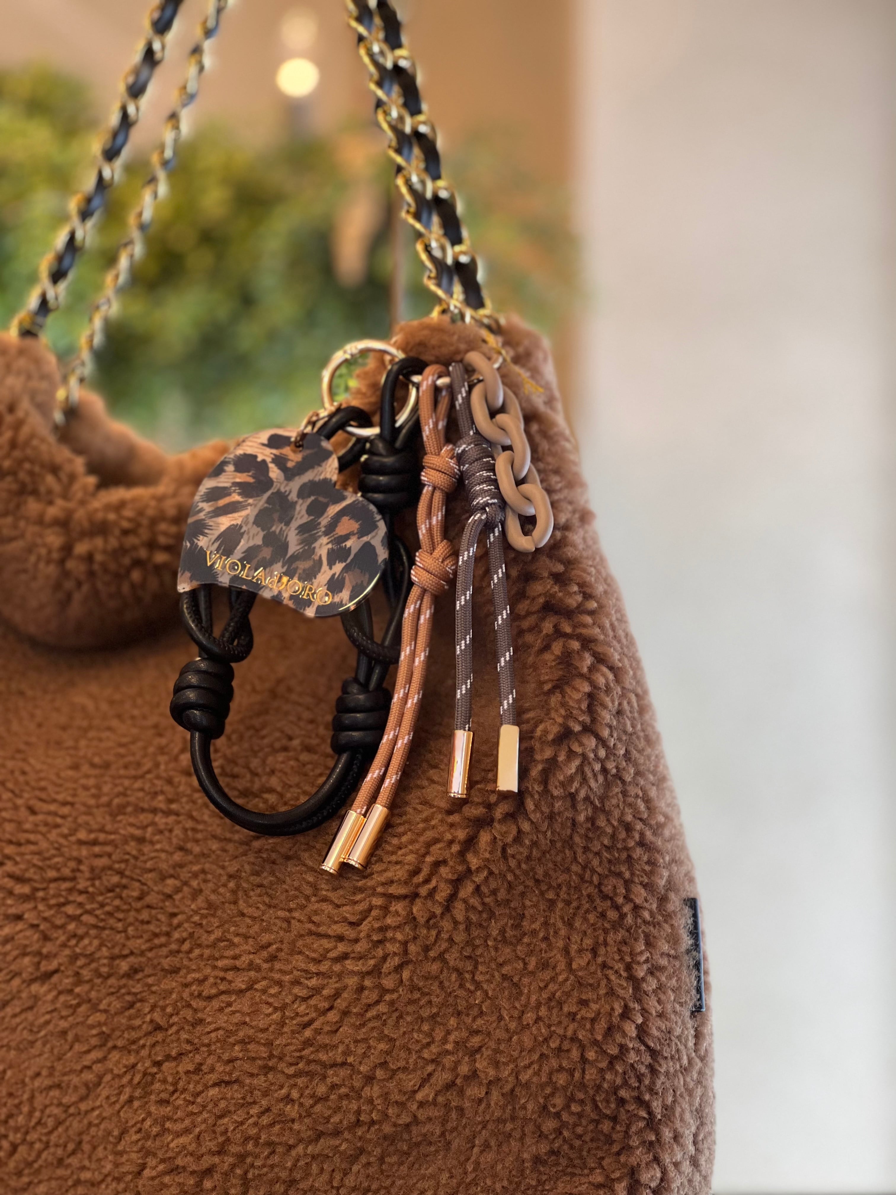 ヴィオラドーロオリジナルのロゴ入りアクリルパーツのついたバッグチャーム