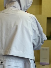 さらに悪天候には、バイザー付きフードを高めの台襟と一体化させて装備