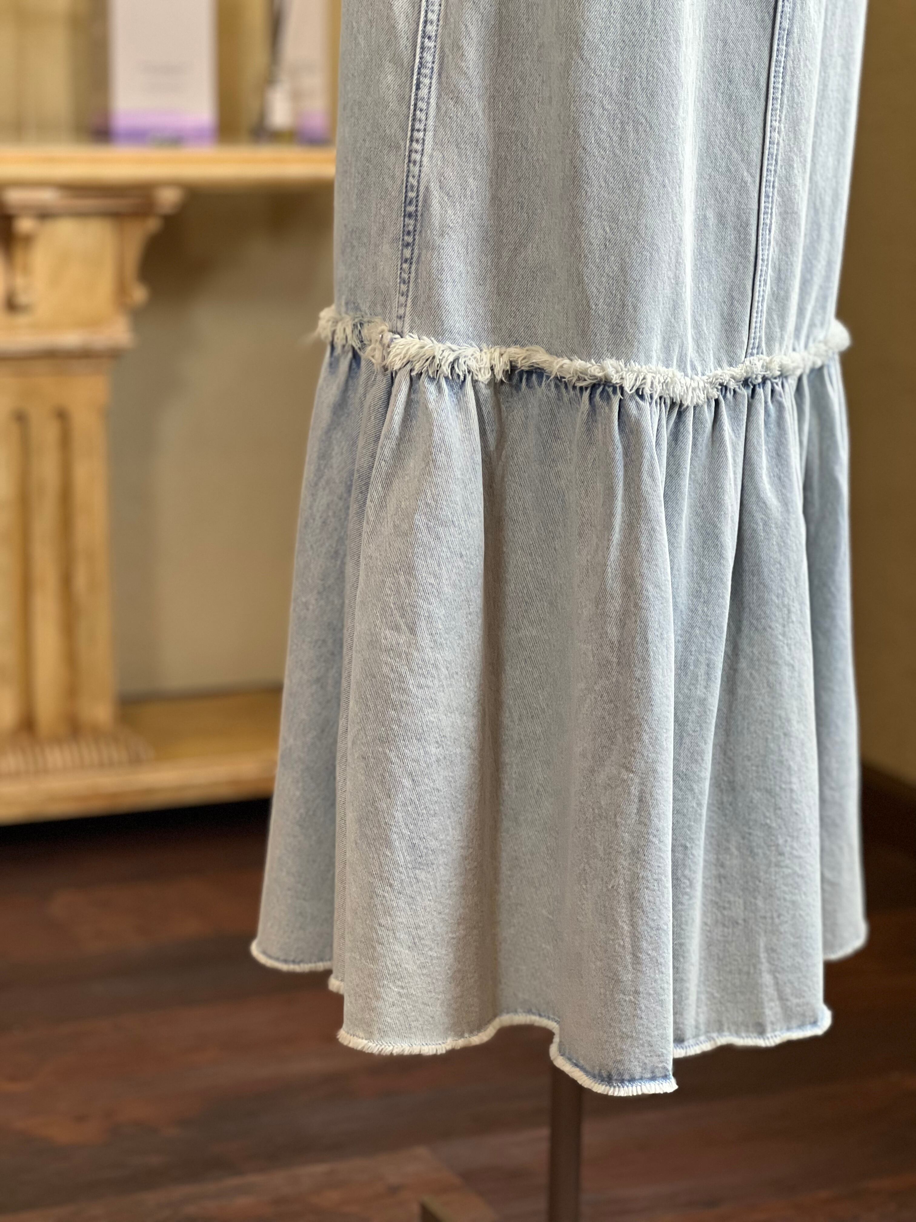 裾の動きが綺麗な切り替えデザインのデニムスカート