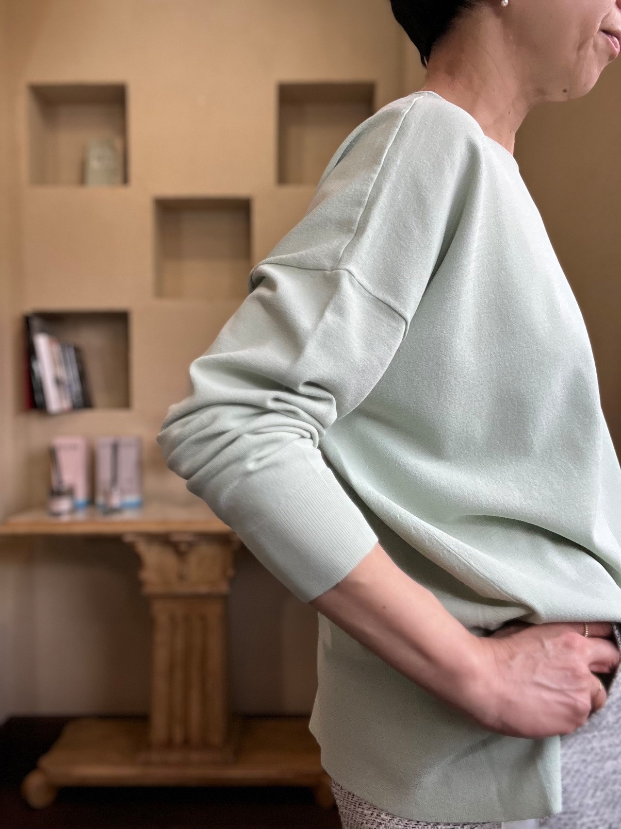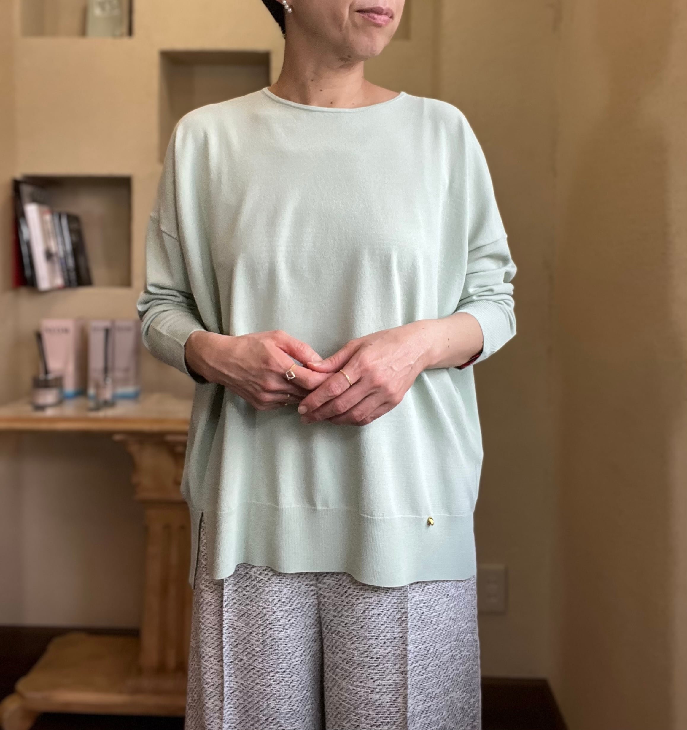 身幅は程よいゆとりがあり身体のラインを拾いにくく