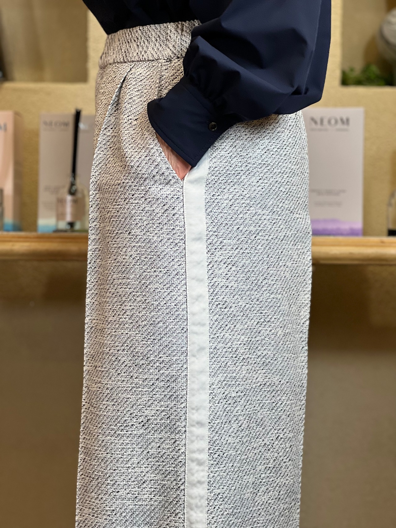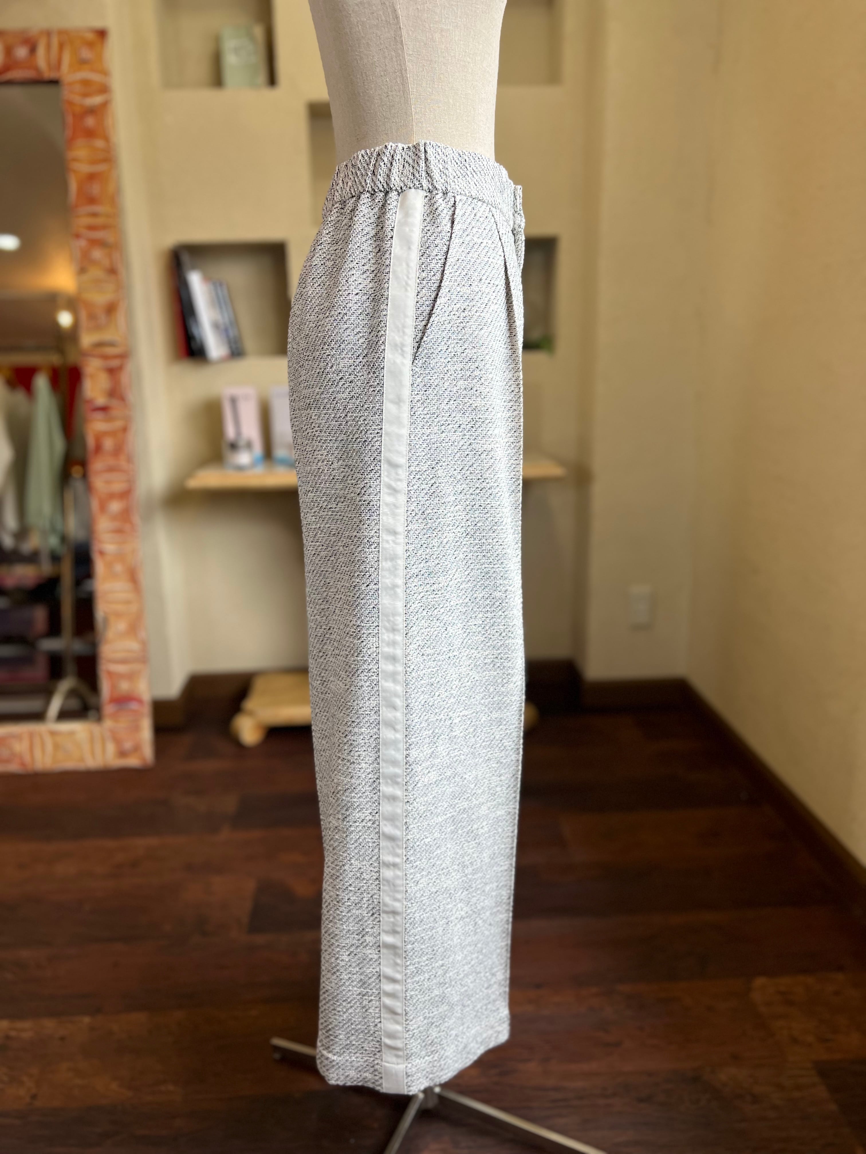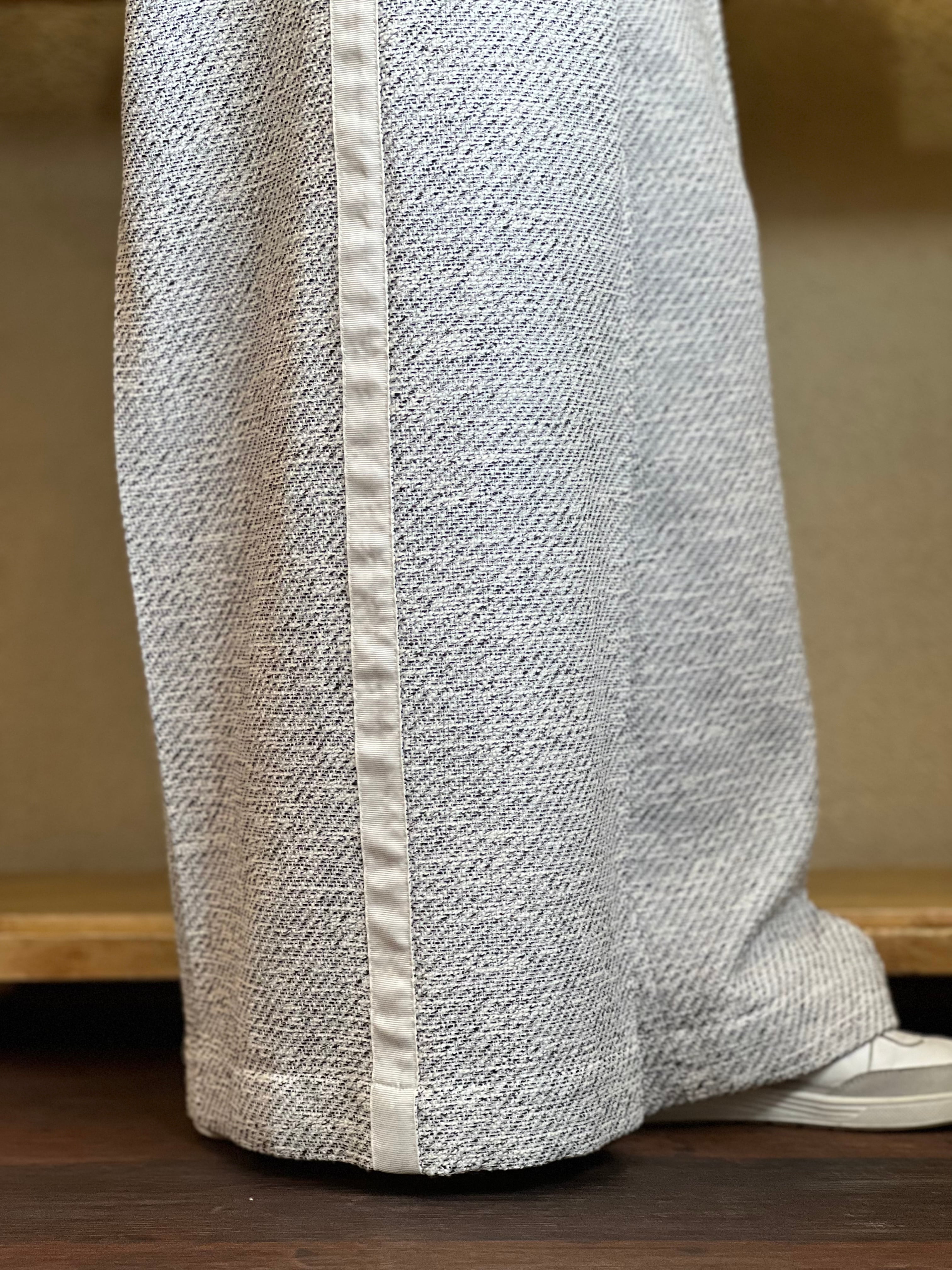 上品さが際立ツィードに、カジュアル感のあるサイドラインが入った