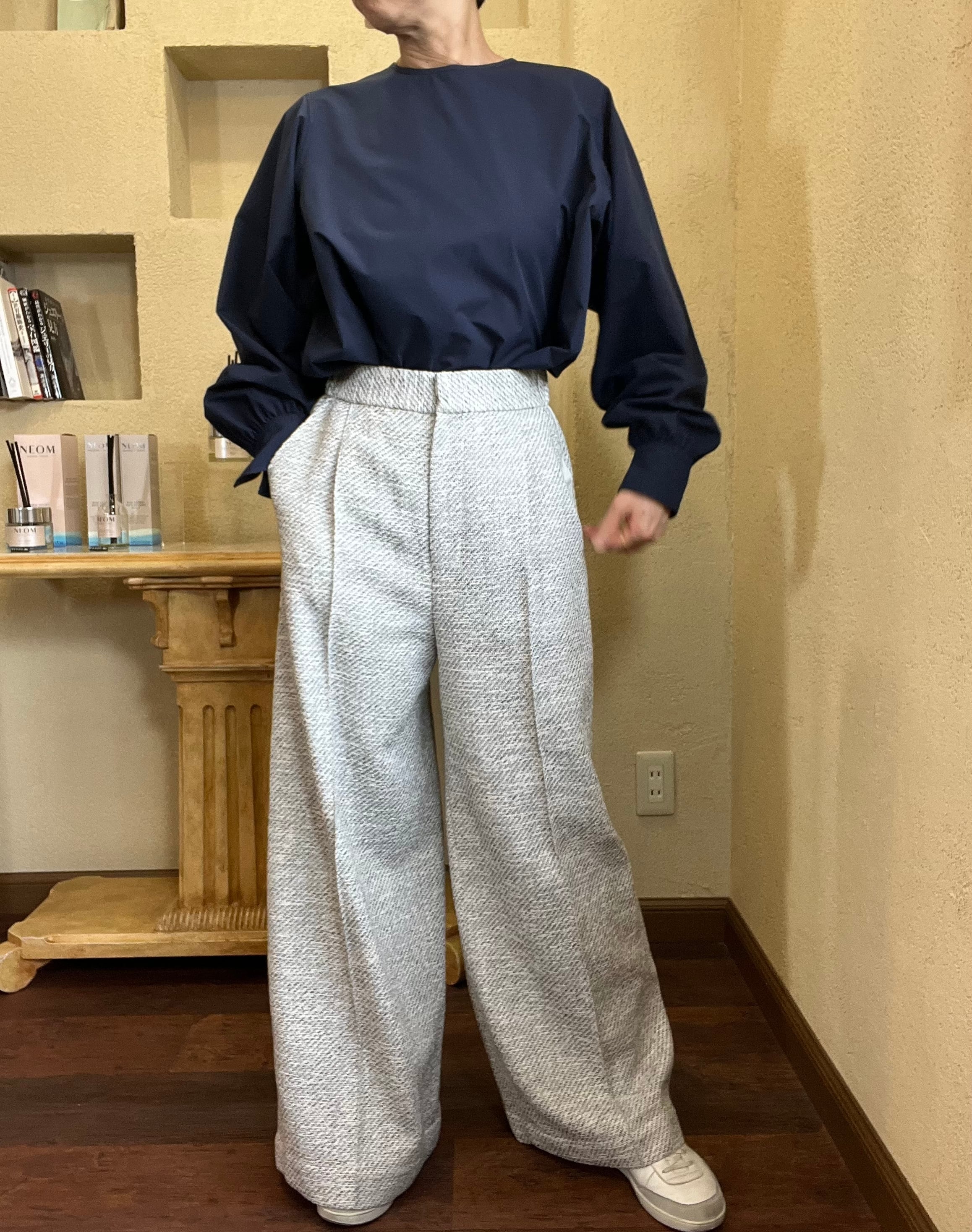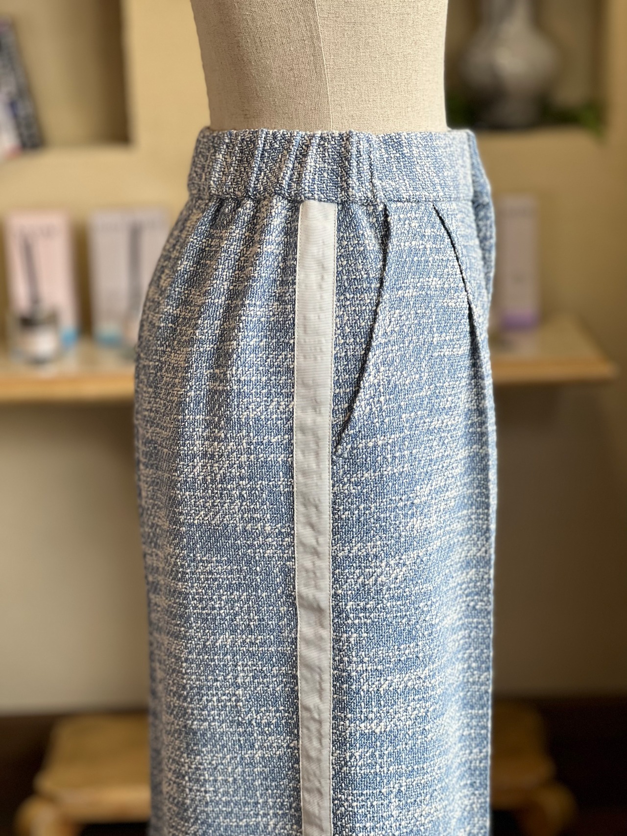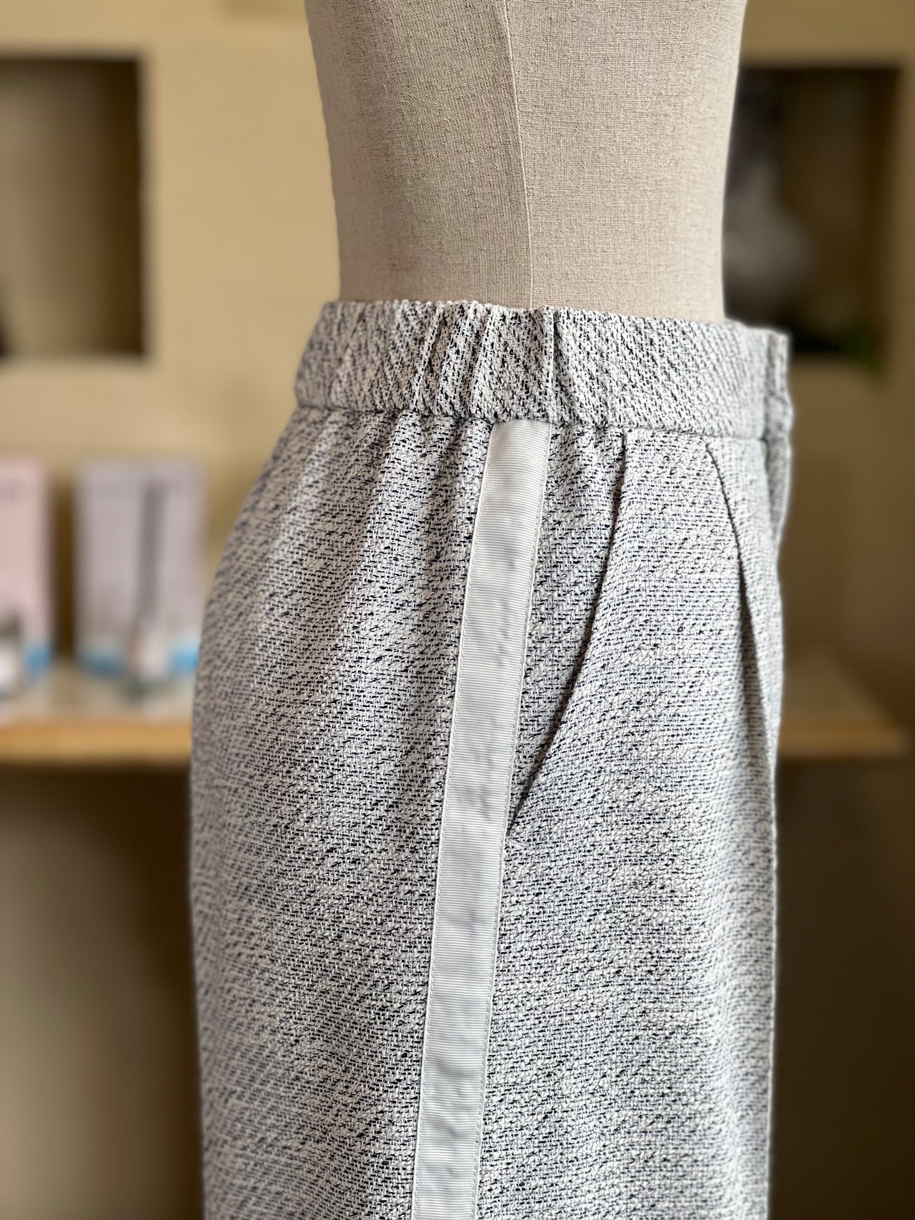 上品さが際立ツィードに、カジュアル感のあるサイドラインが入った