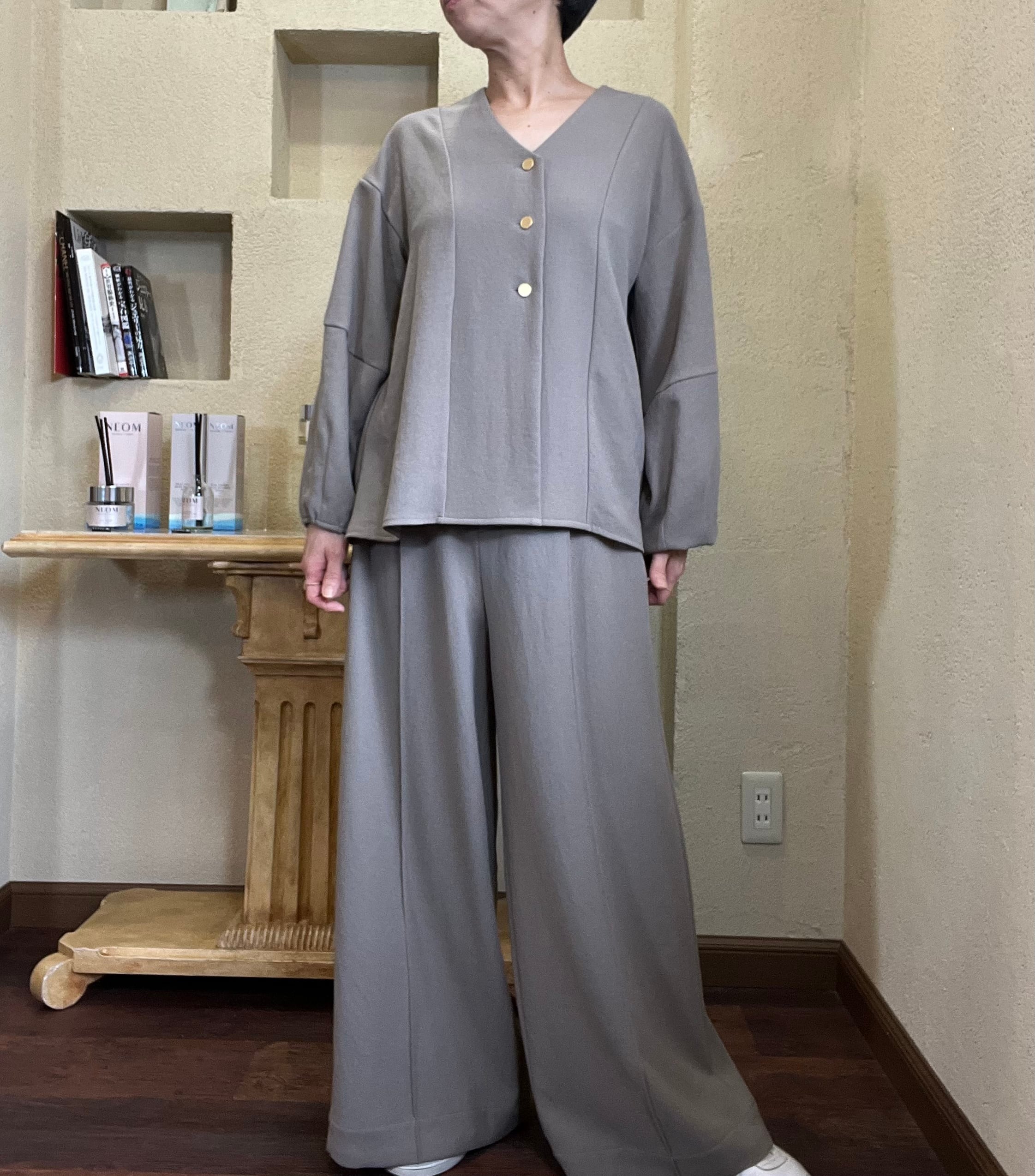 前開きフレアブラウスとセットアップで着て頂けるワイドブークレーパンツ