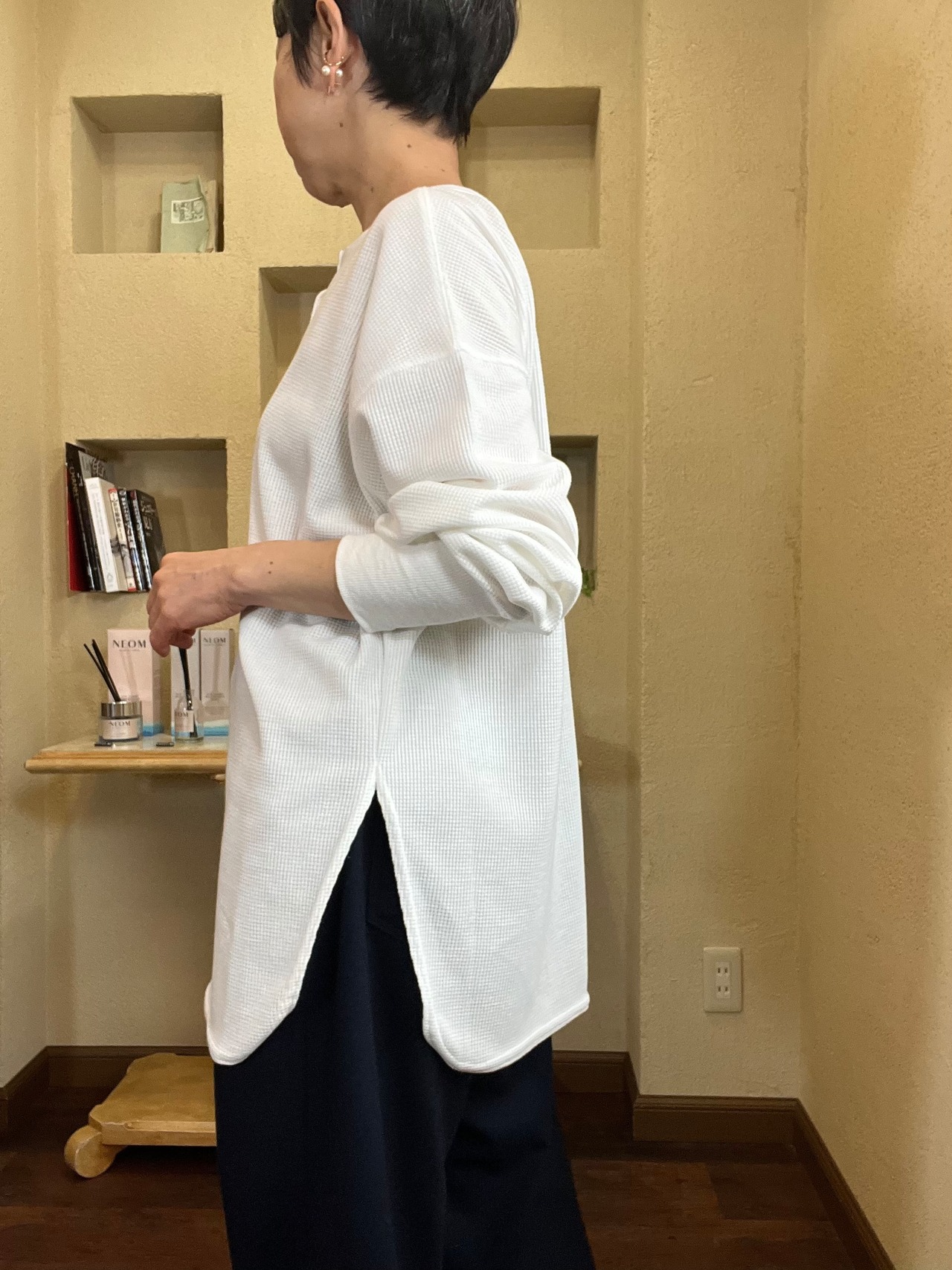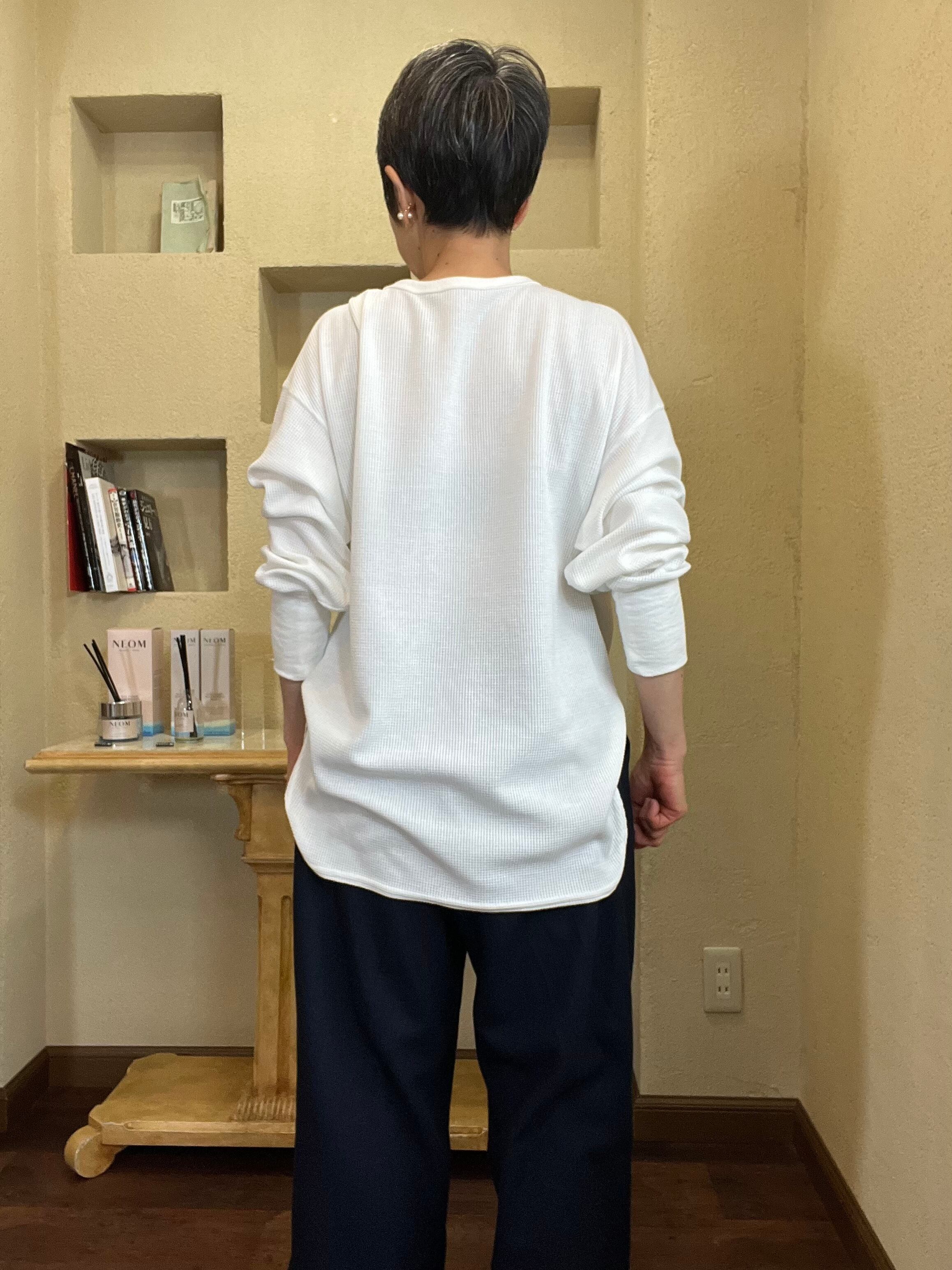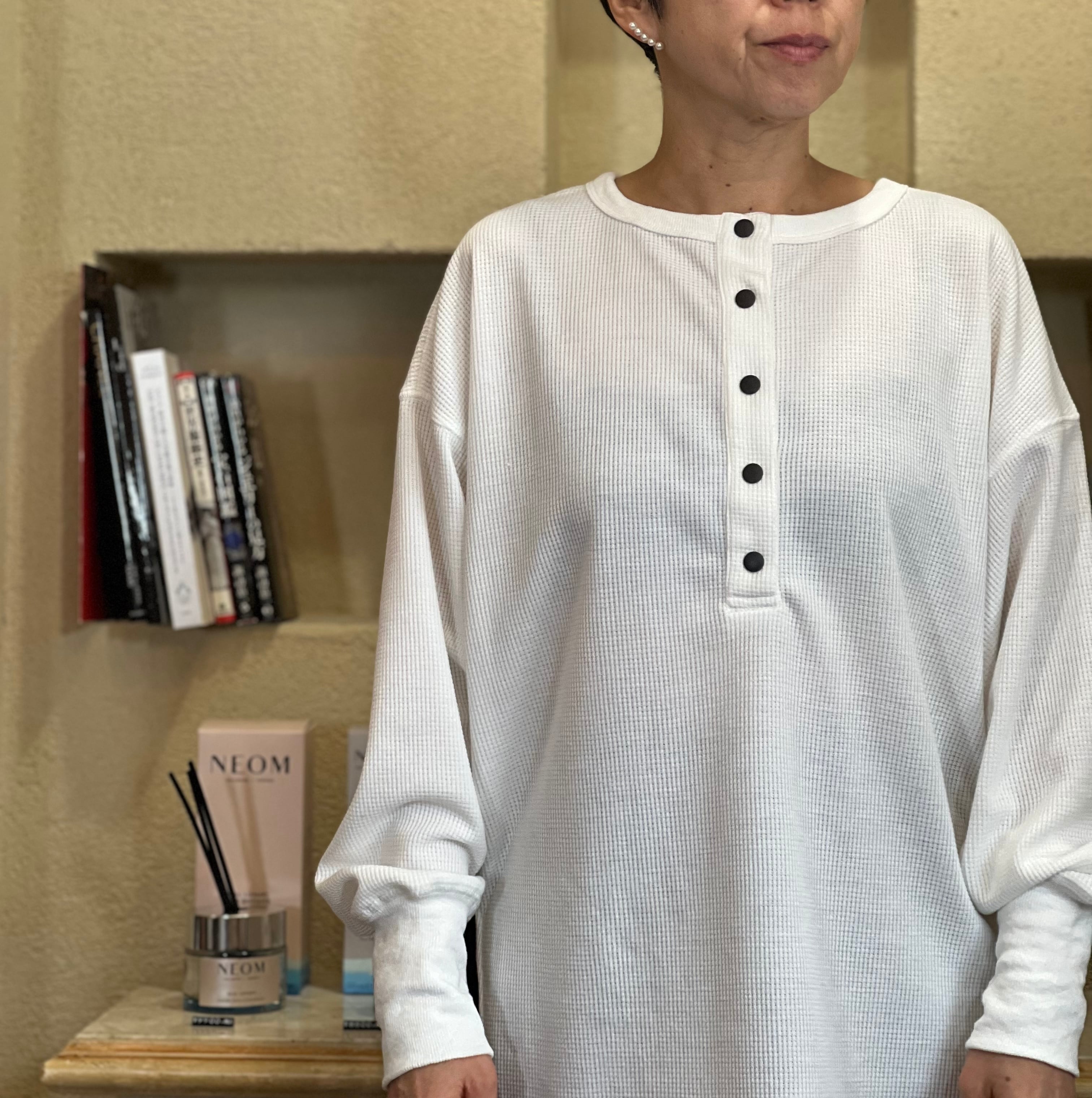 デザインはオーバーサイズをベースに、クルーとヘンリーの両方を楽しめる前後着用可能仕様とし、1枚着からレイヤードまで幅広いスタイリングに対応可能です