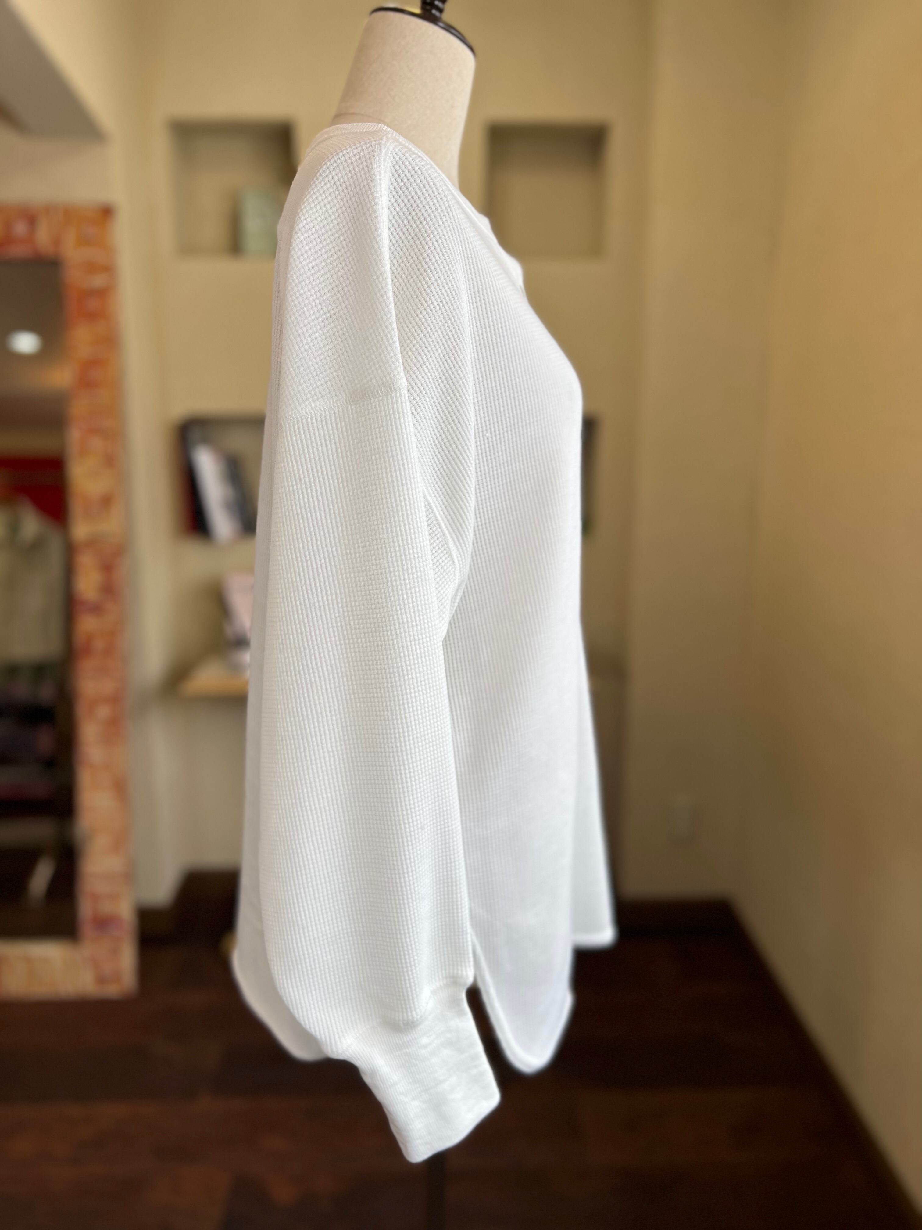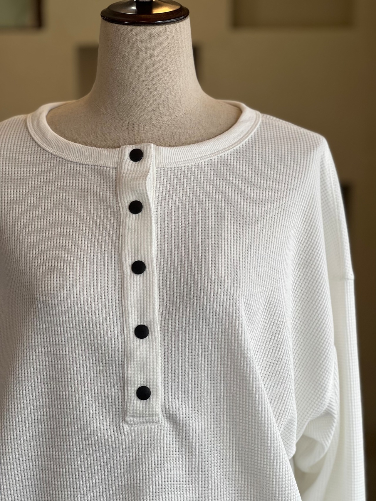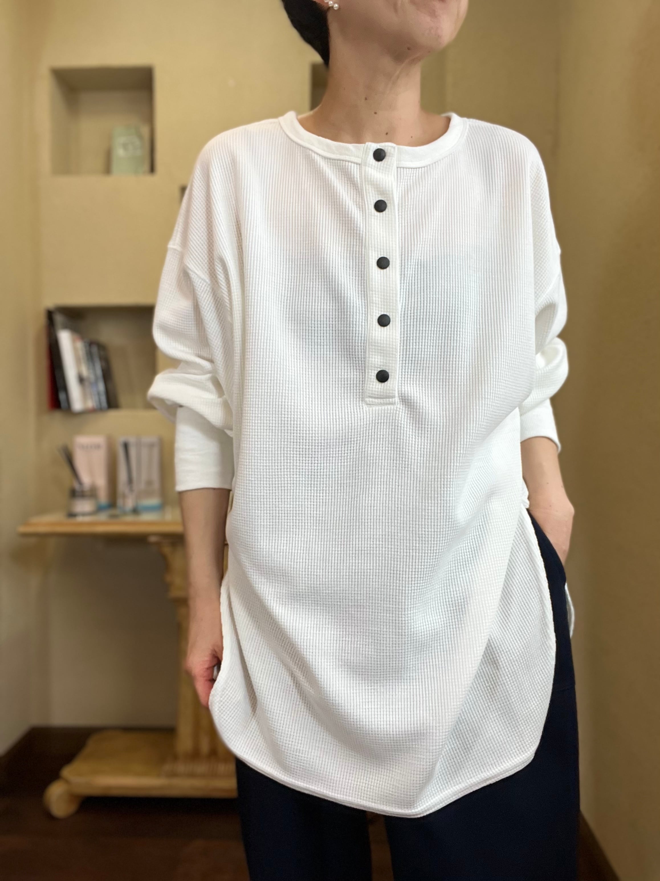 デザインはオーバーサイズをベースに、クルーとヘンリーの両方を楽しめる前後着用可能仕様とし、1枚着からレイヤードまで幅広いスタイリングに対応可能です