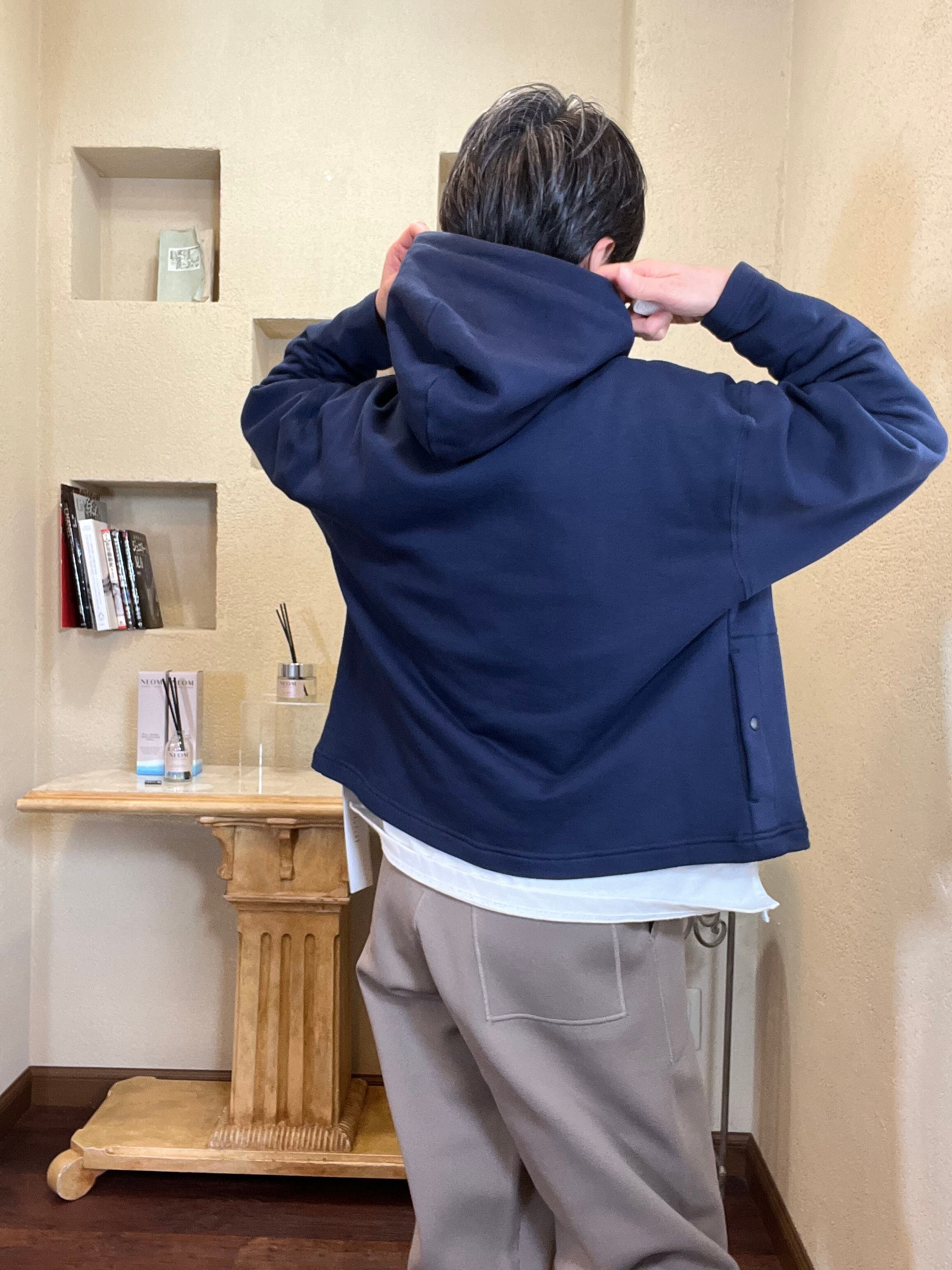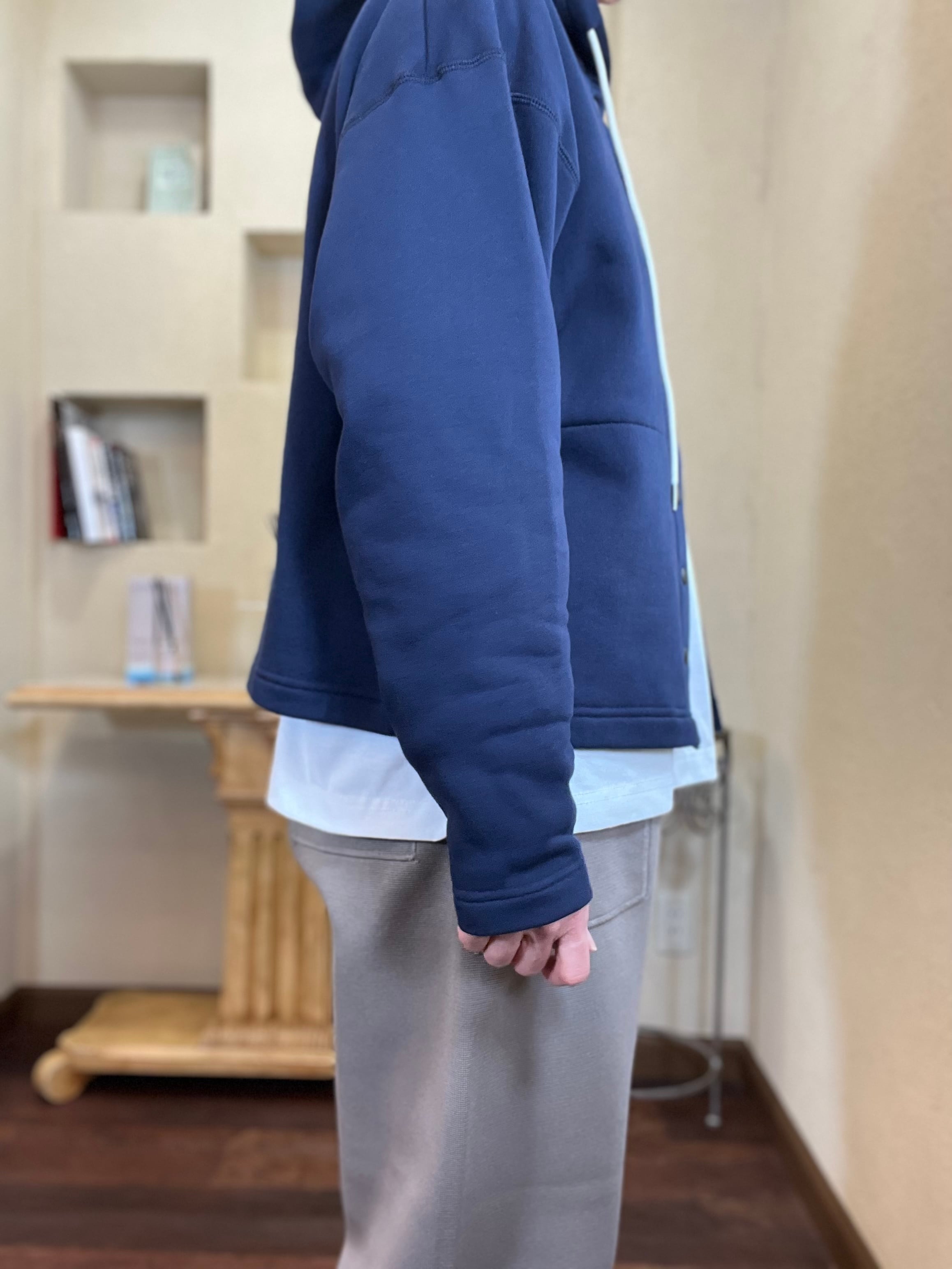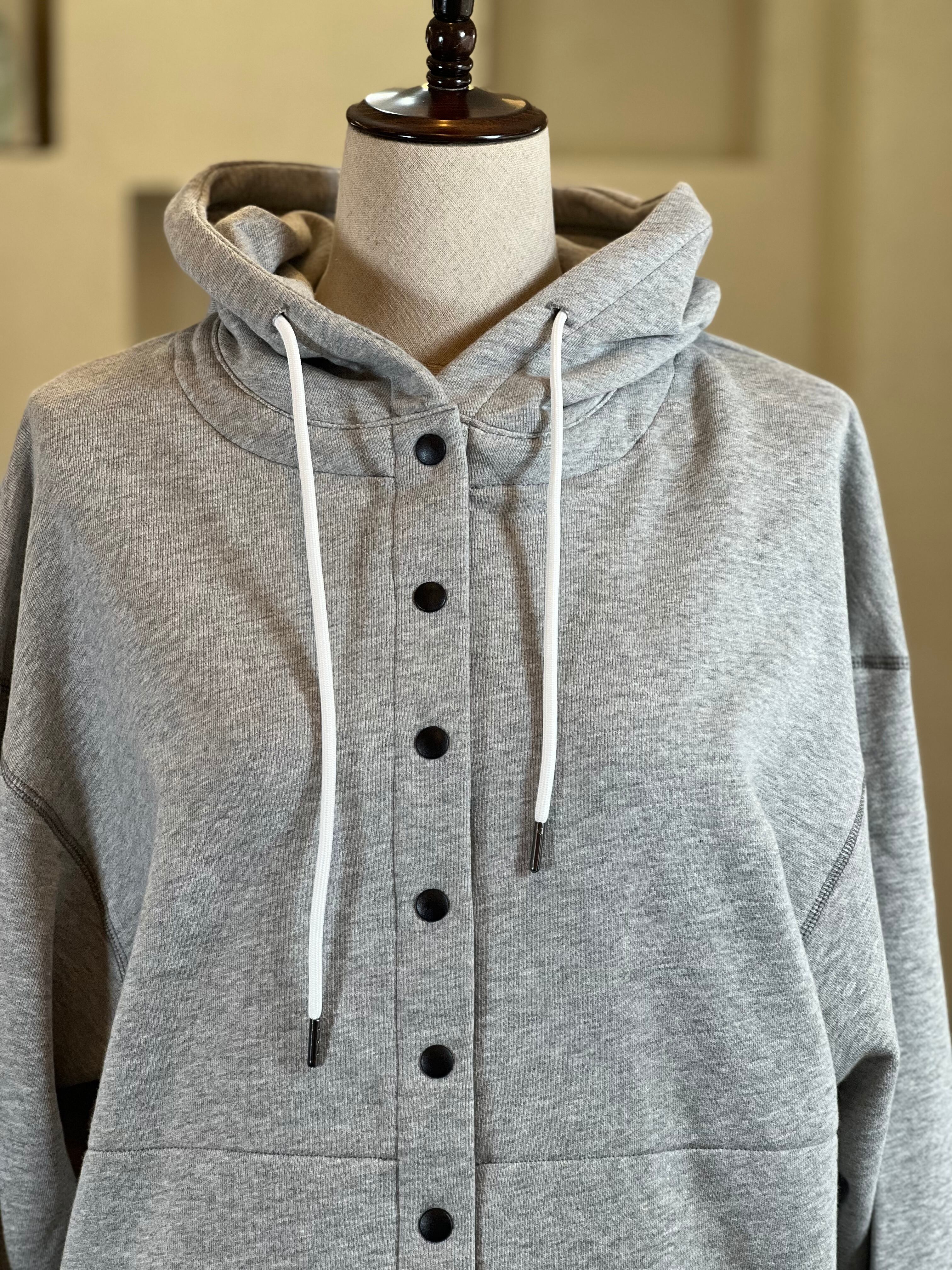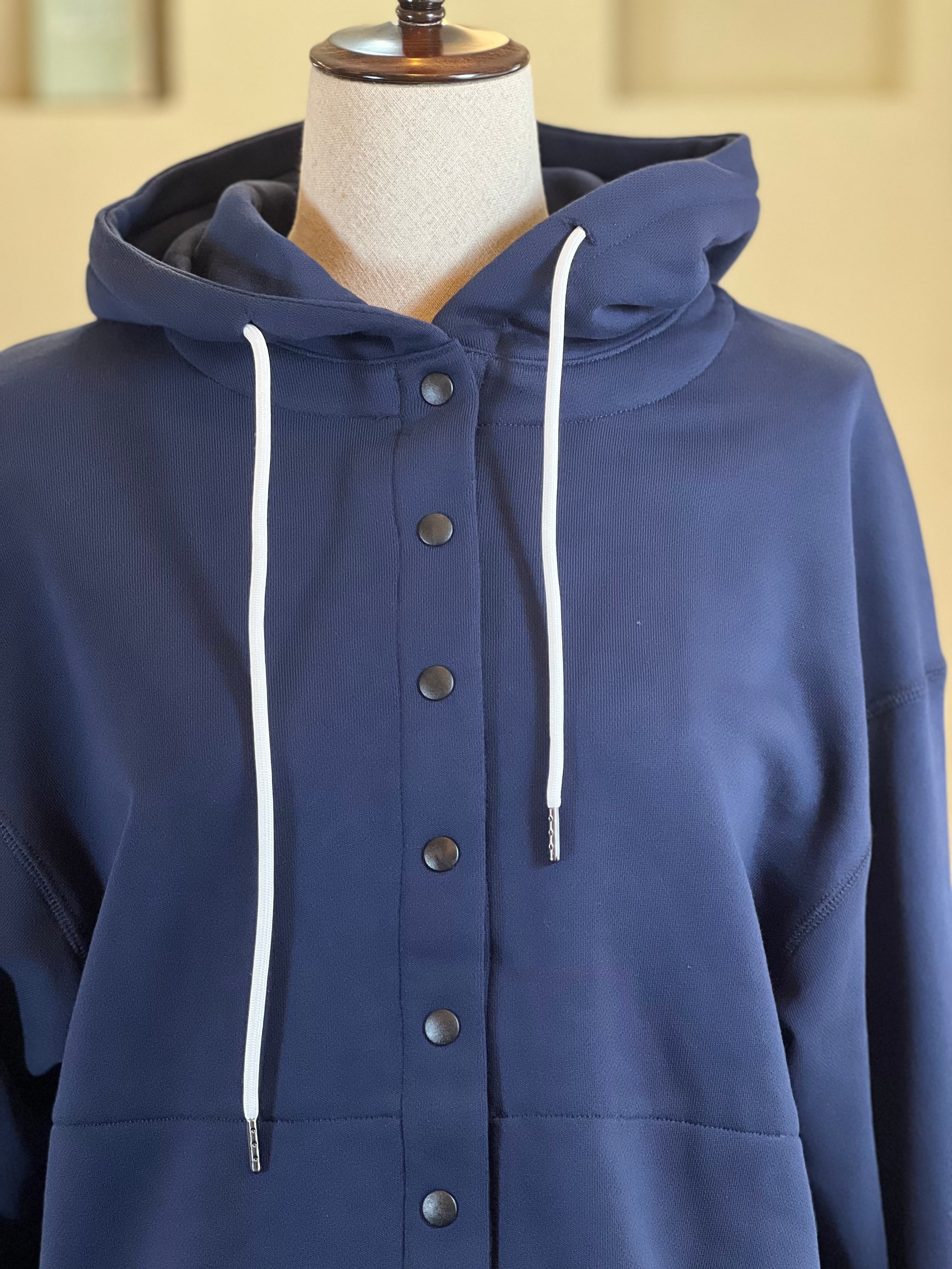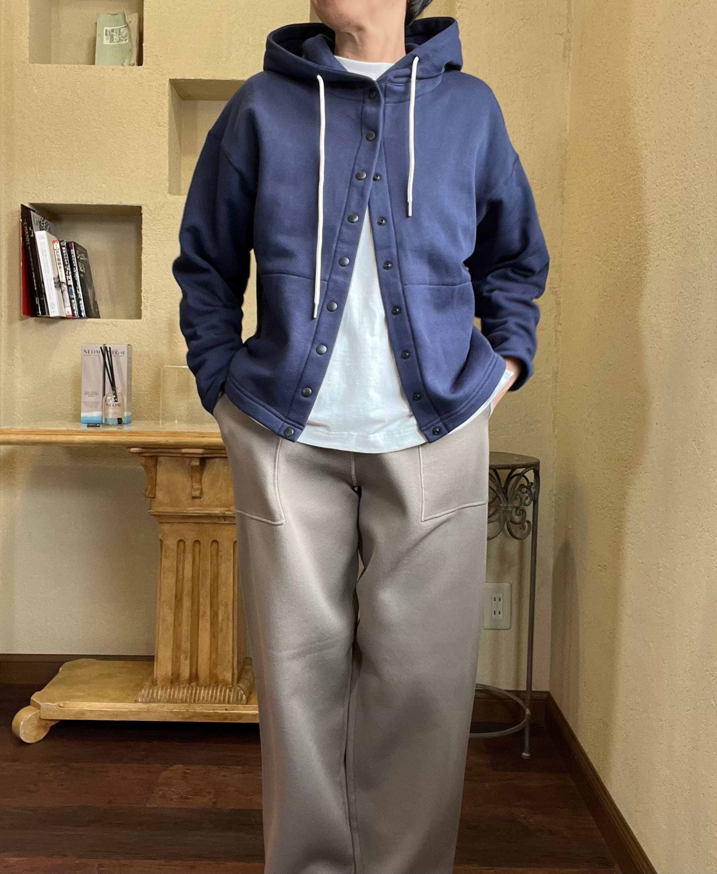 フーディーとしては珍しいカーディガンデザインなので