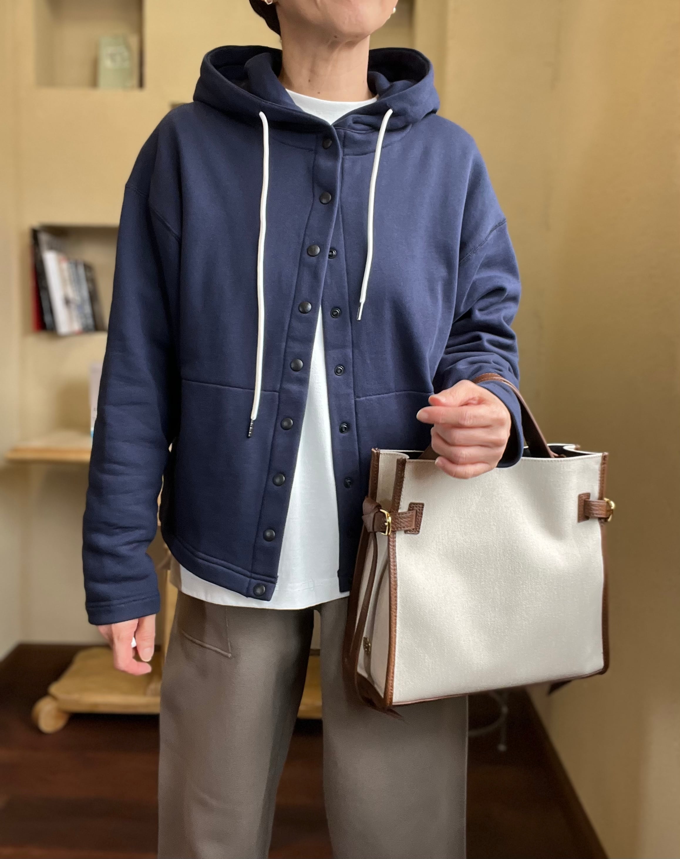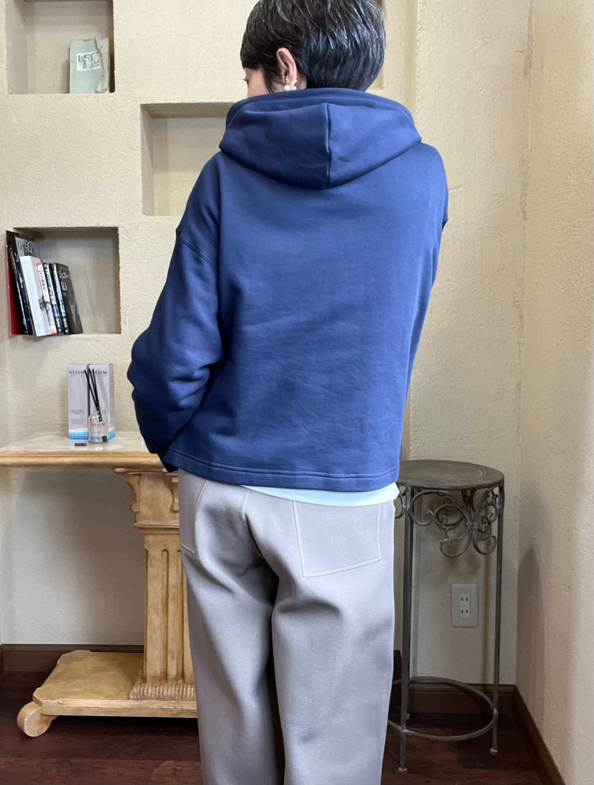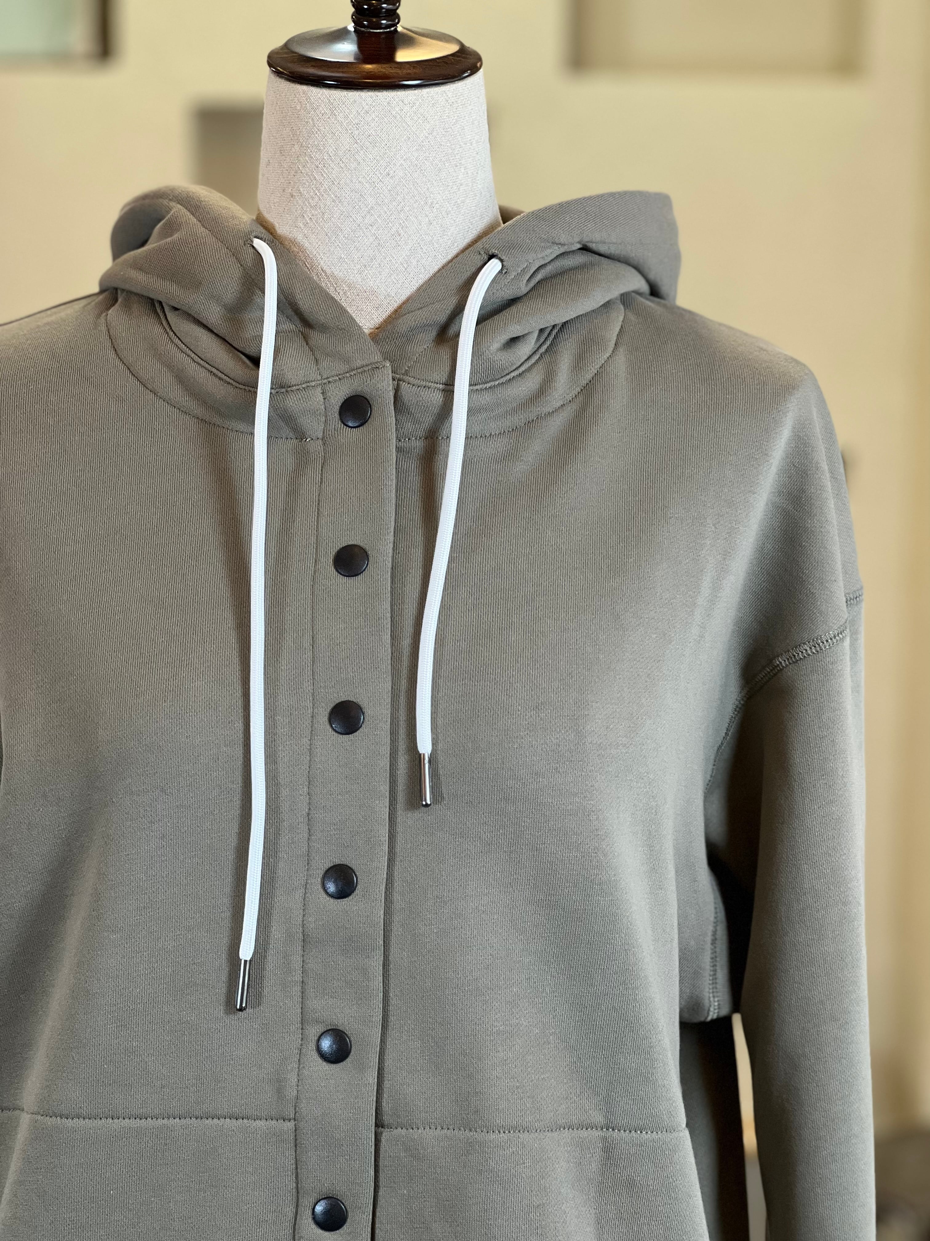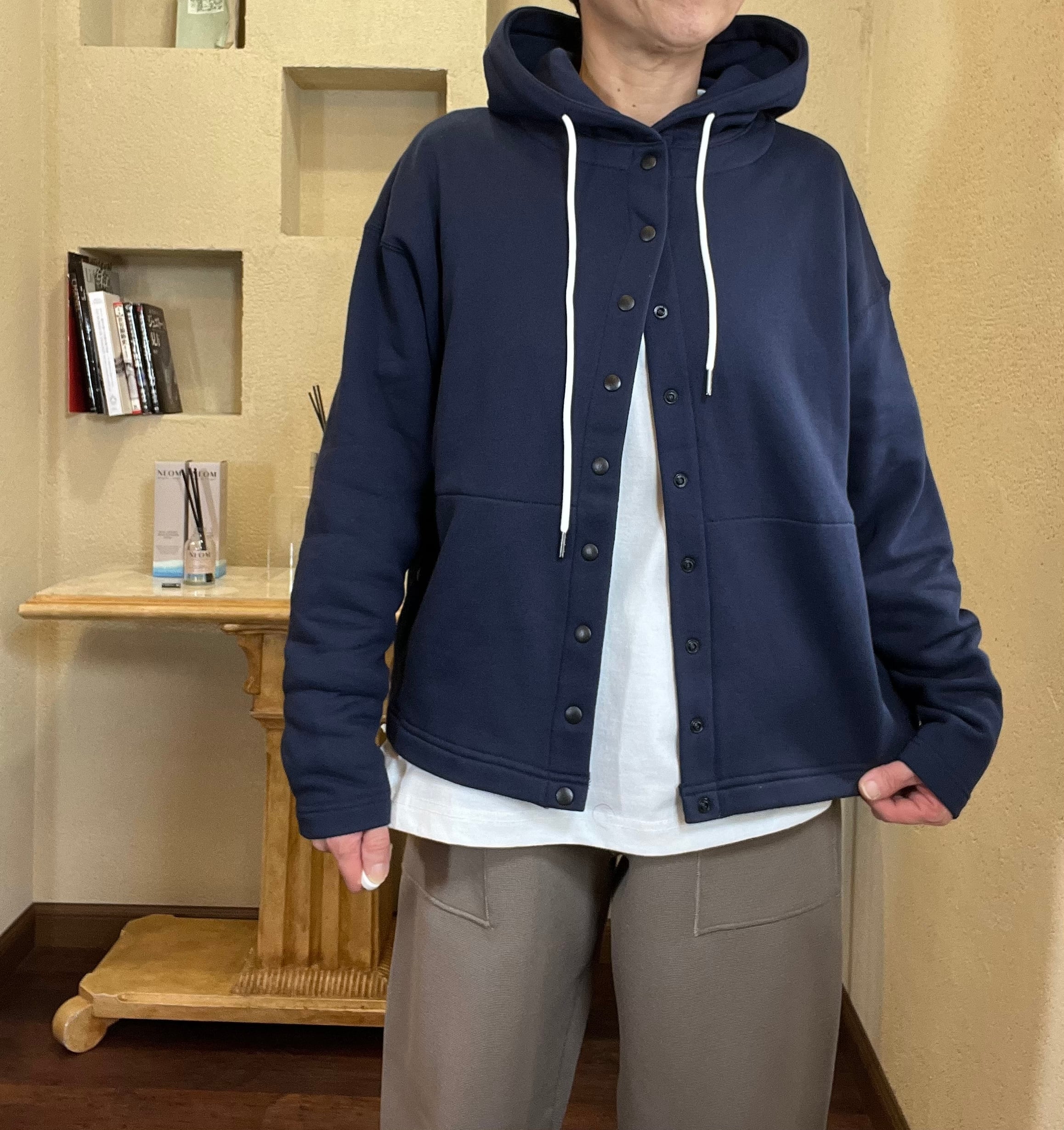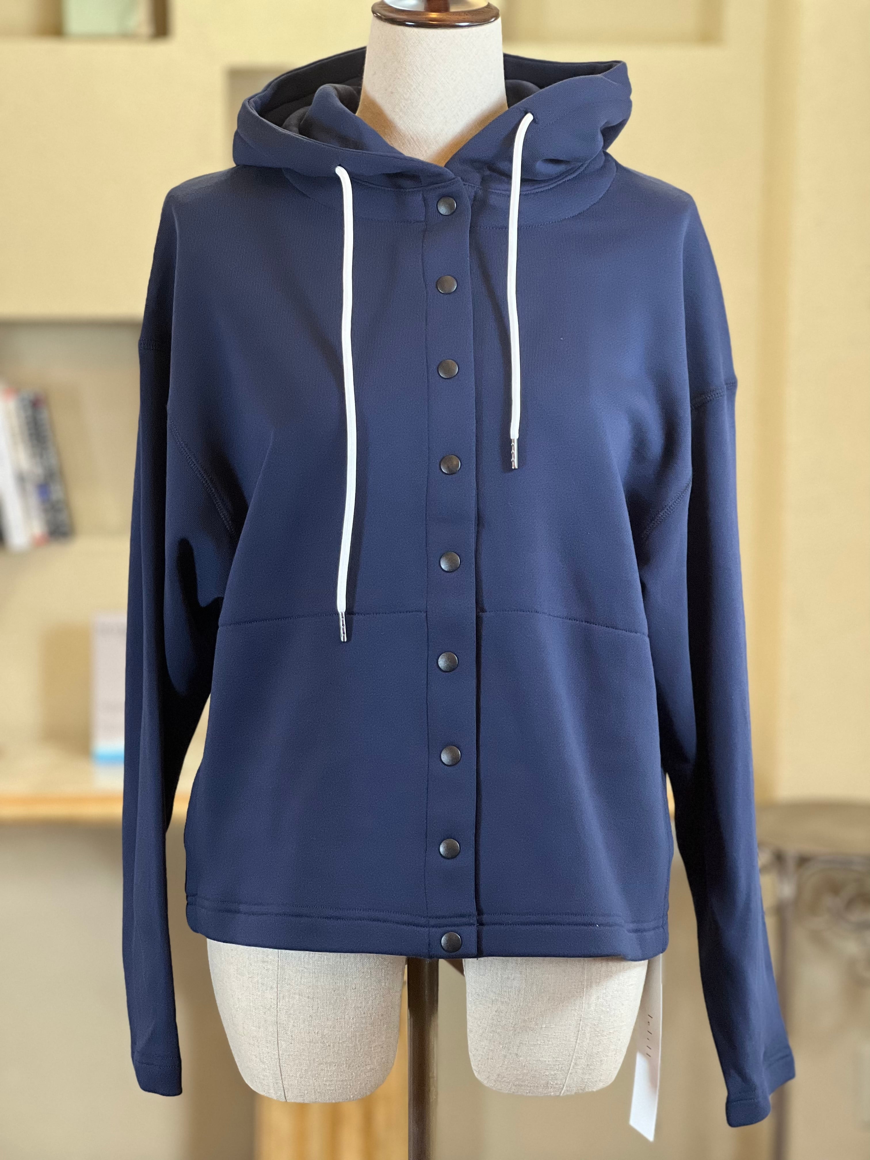 フーディーとしては珍しいカーディガンデザインなので