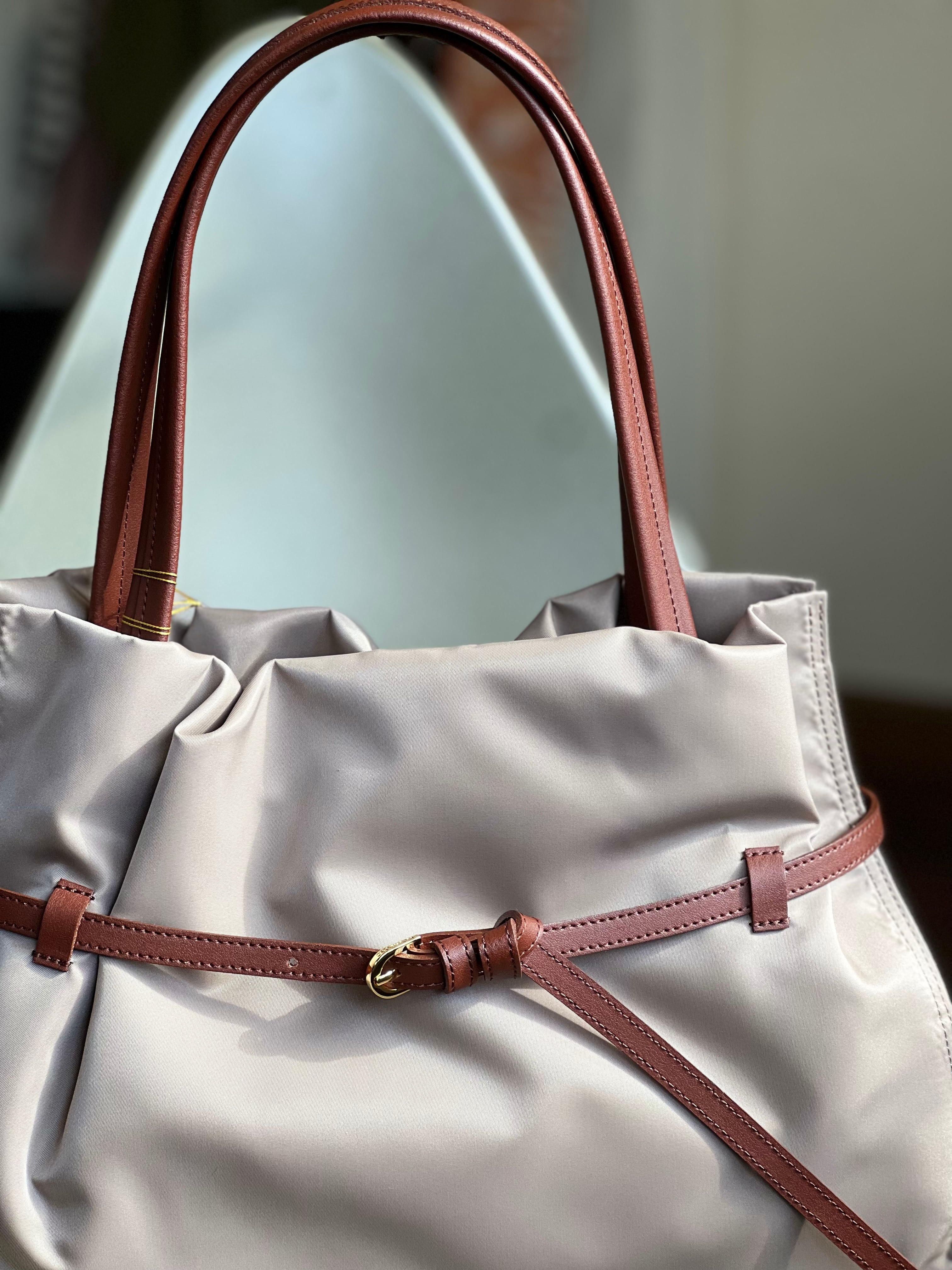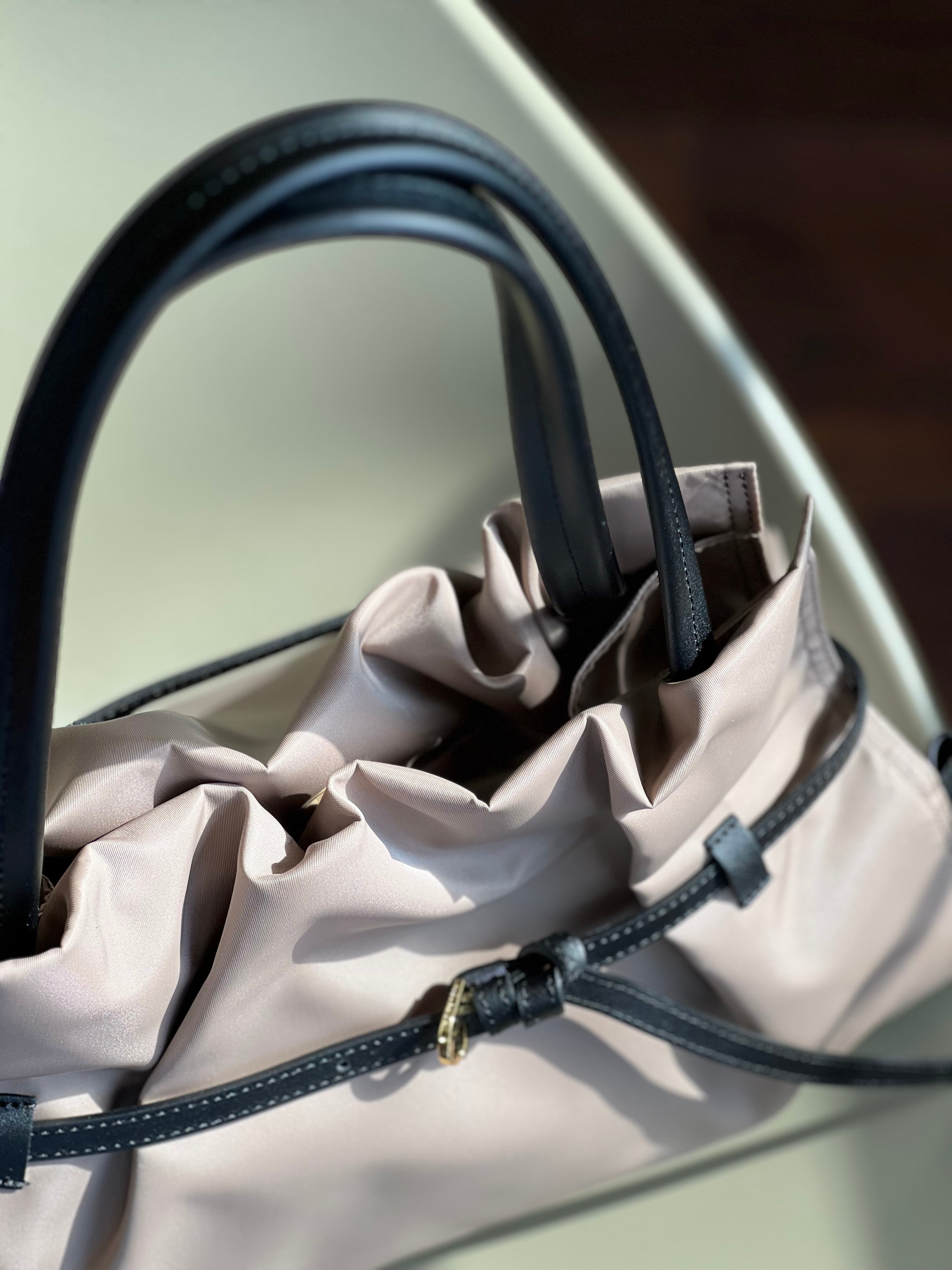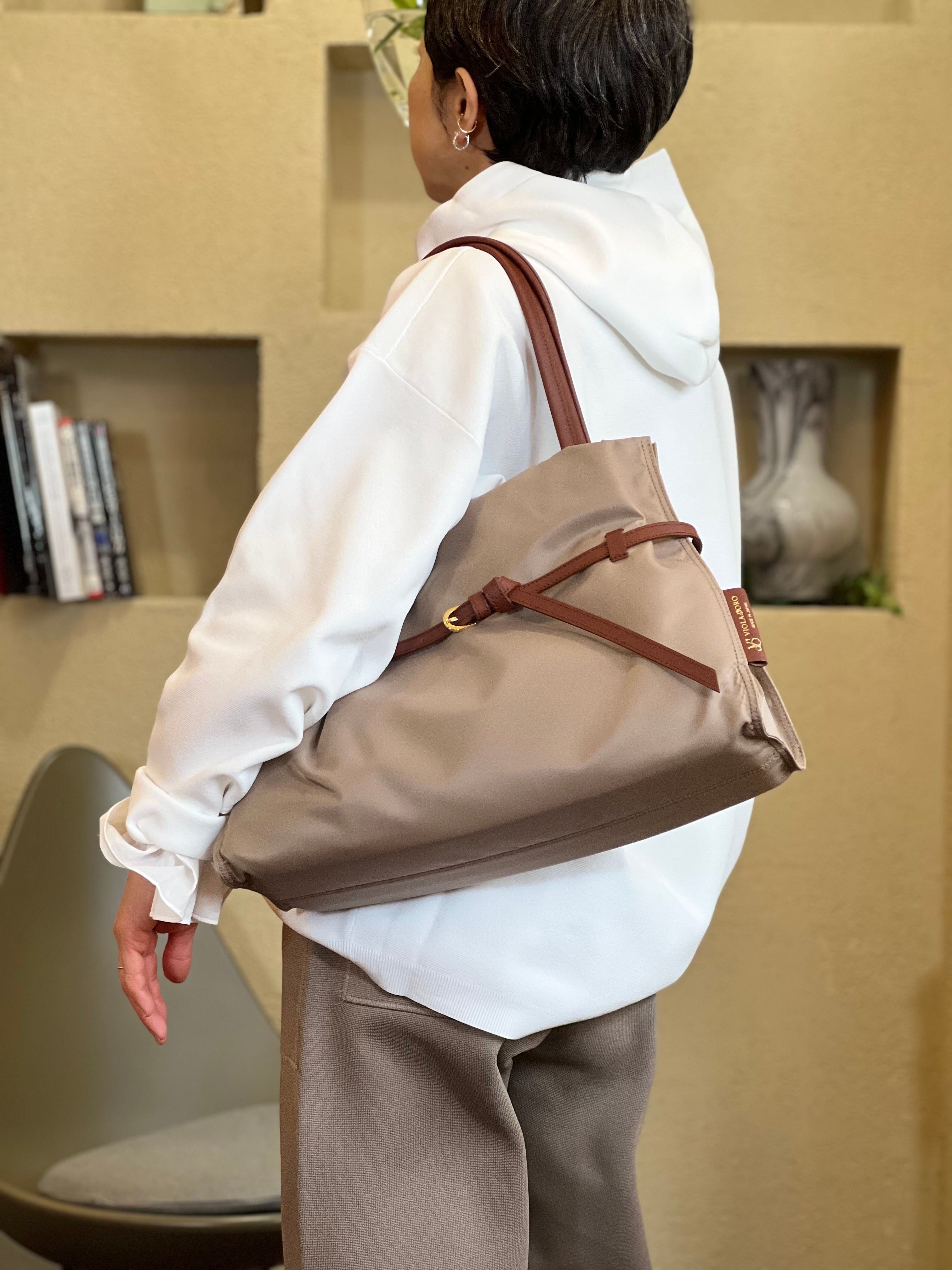 質感が柔らかく仕上がりラフになりすぎない大人が持ちやすいナイロントートです