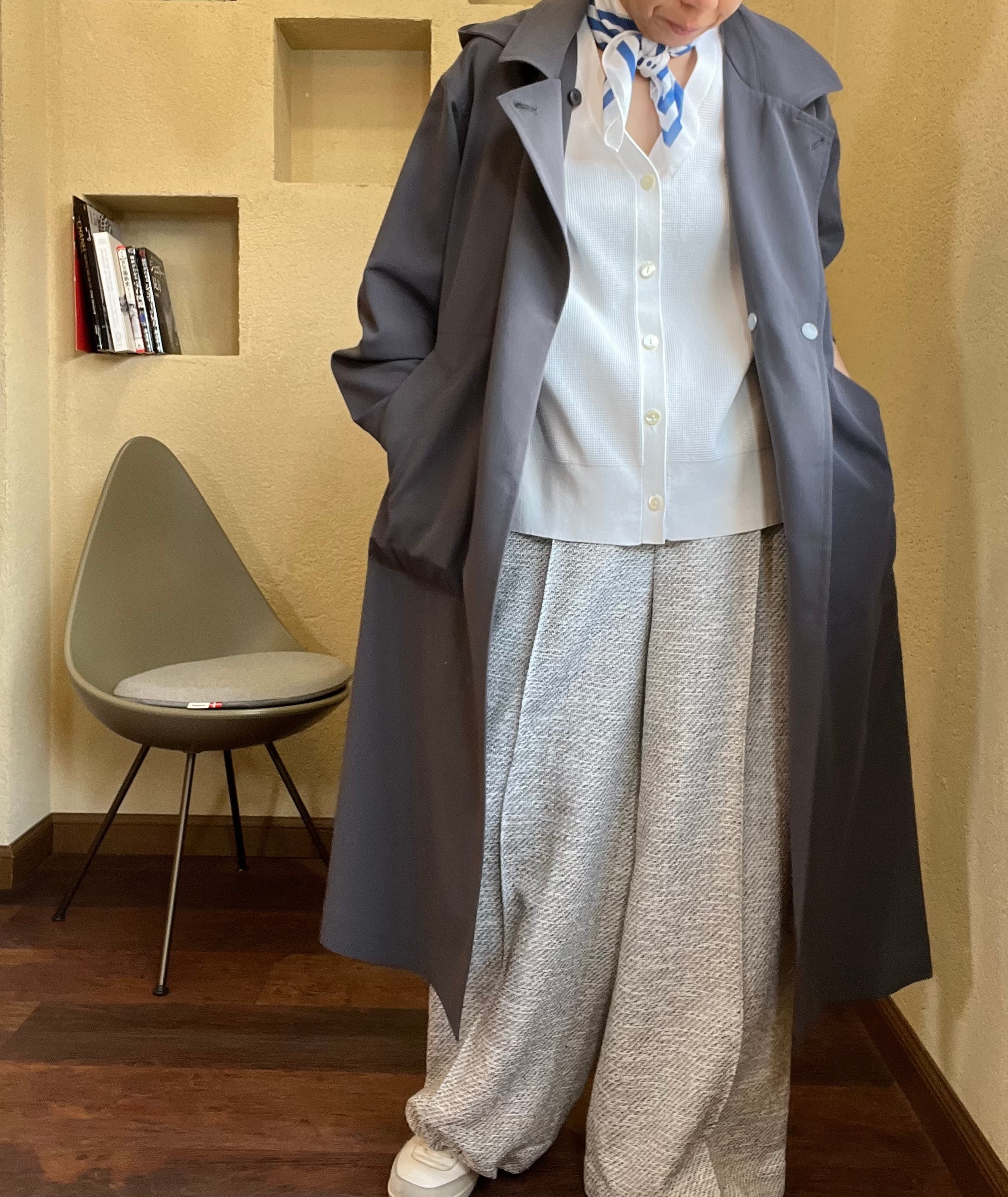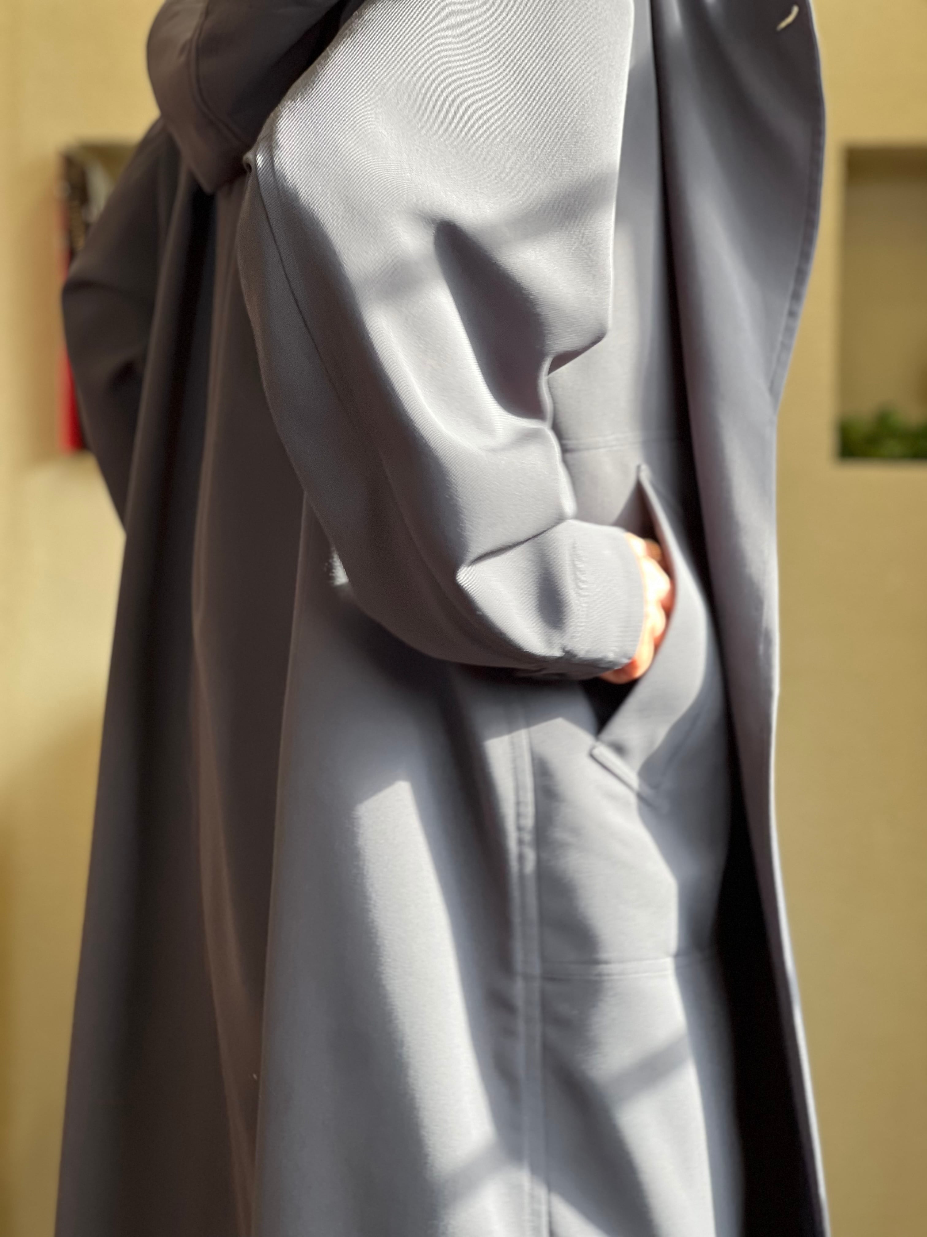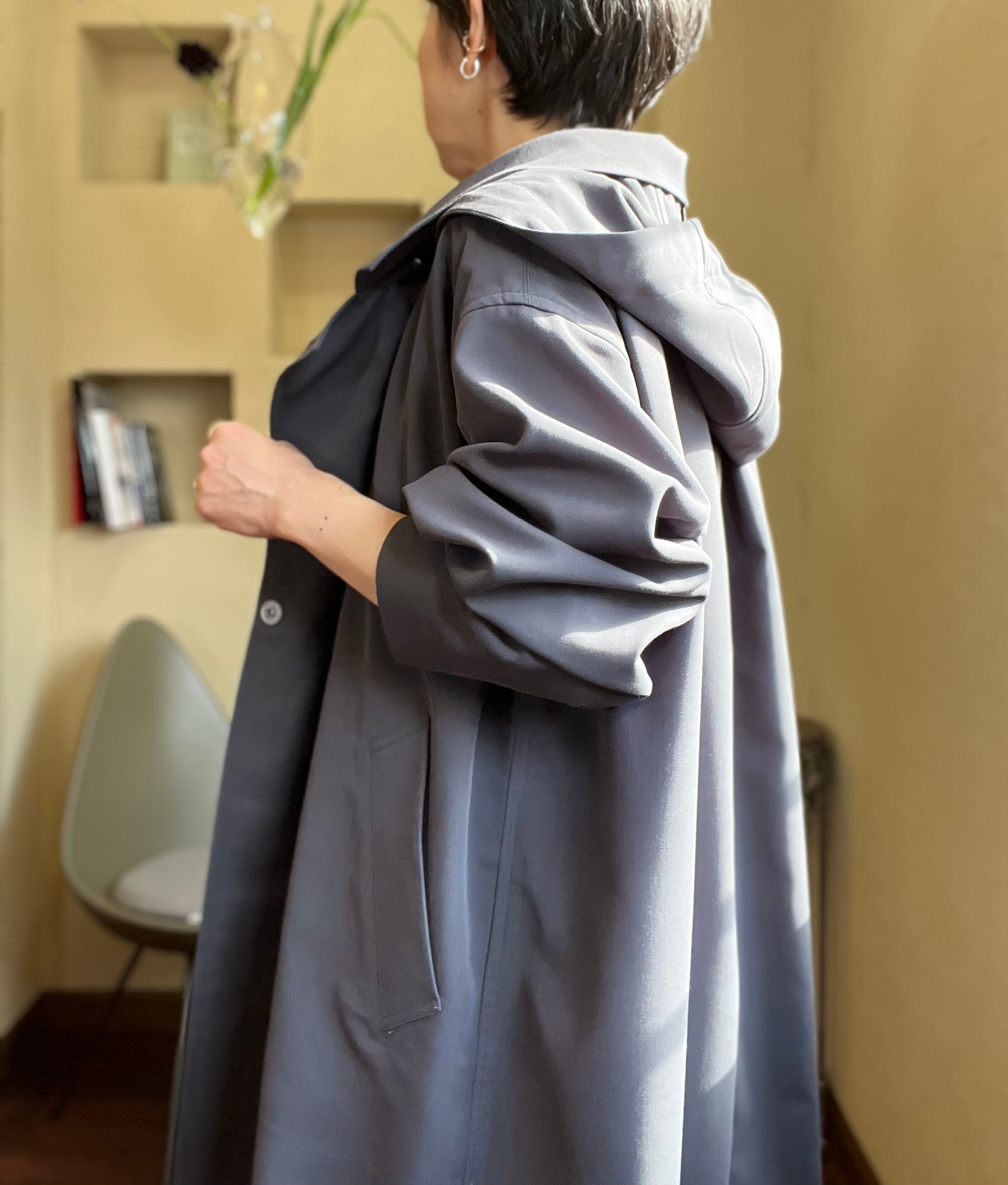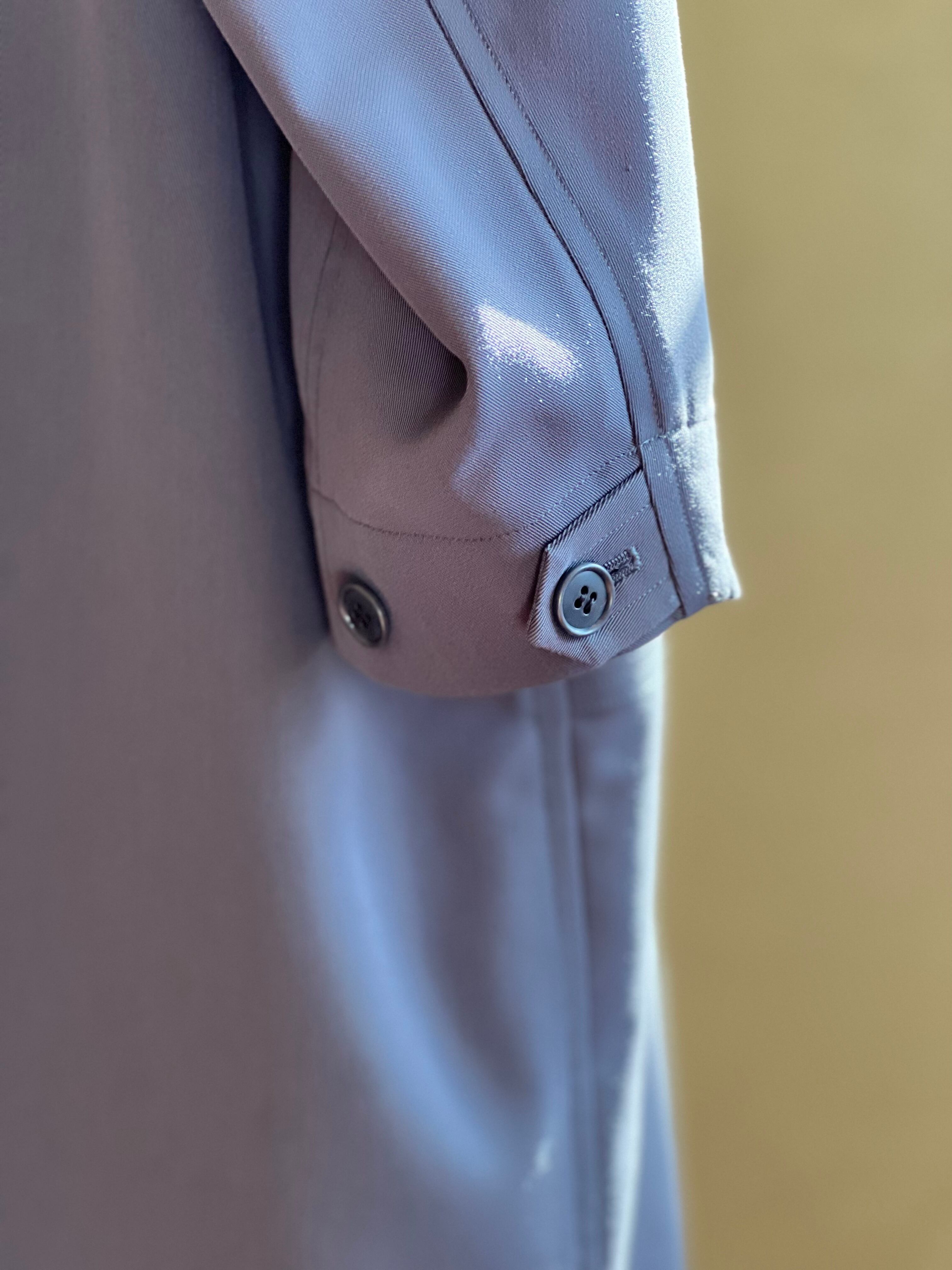 ダブル仕立てでスナップ釦での開閉、ご自宅でのケアが可能です