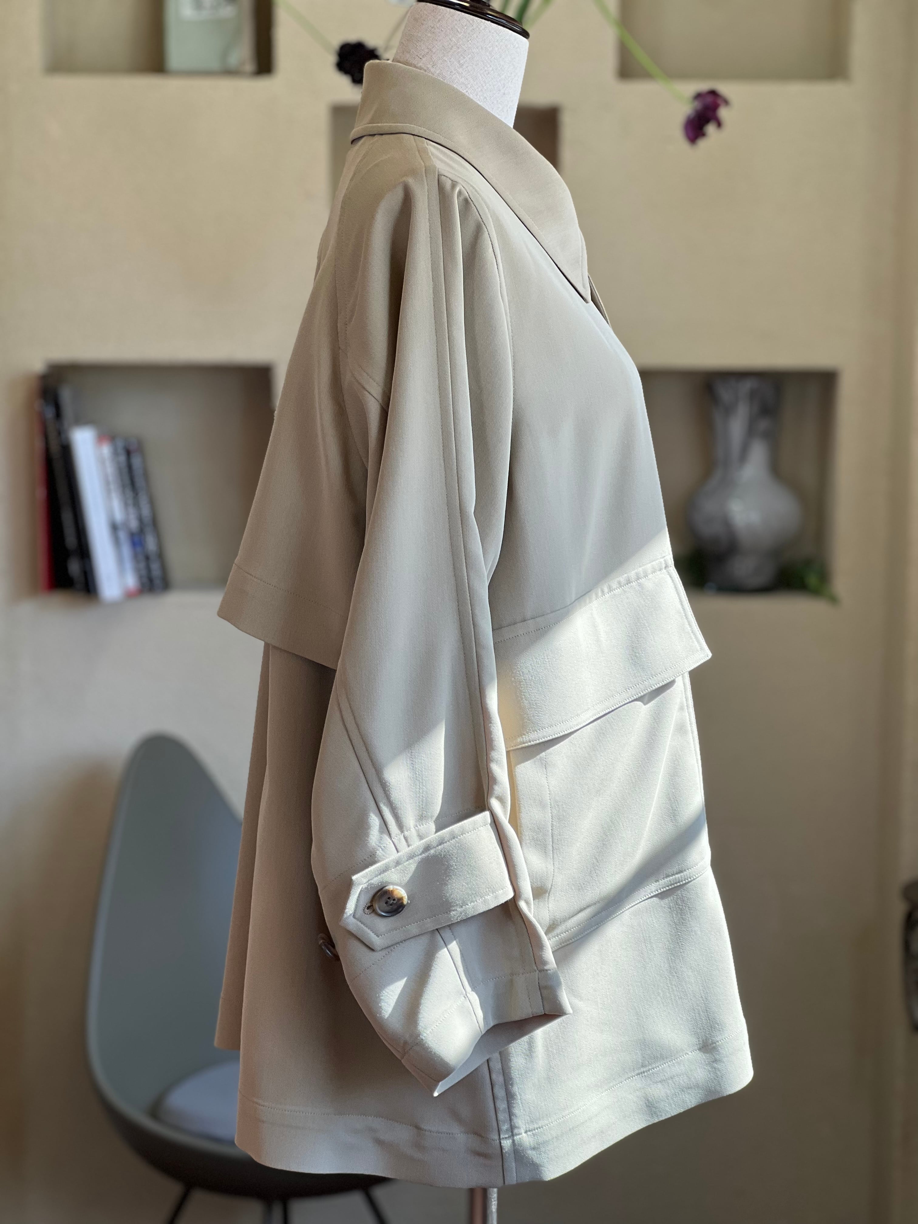 麻のようなタッチと適度なハリとドレープ性は春夏の羽織に最適です