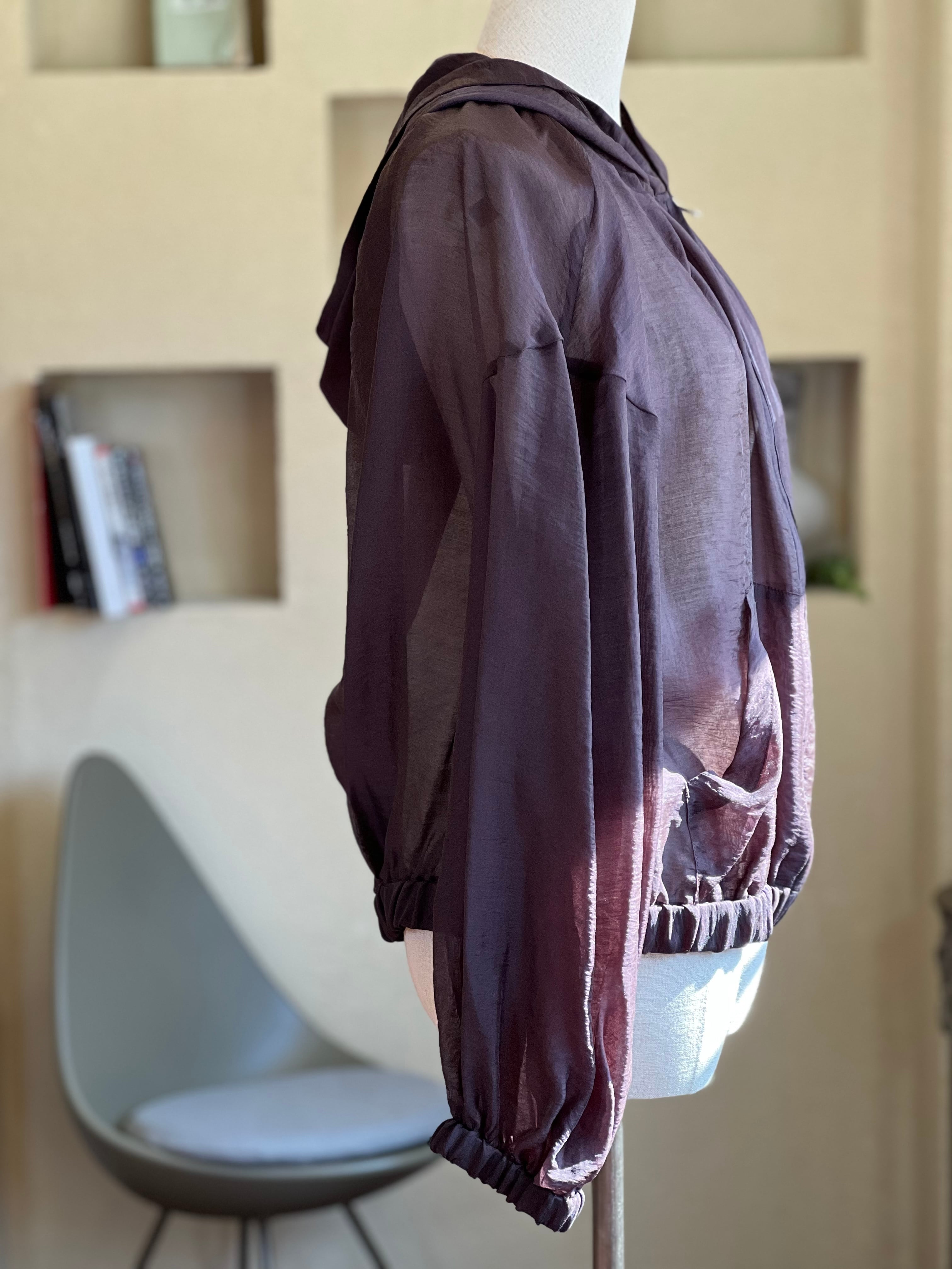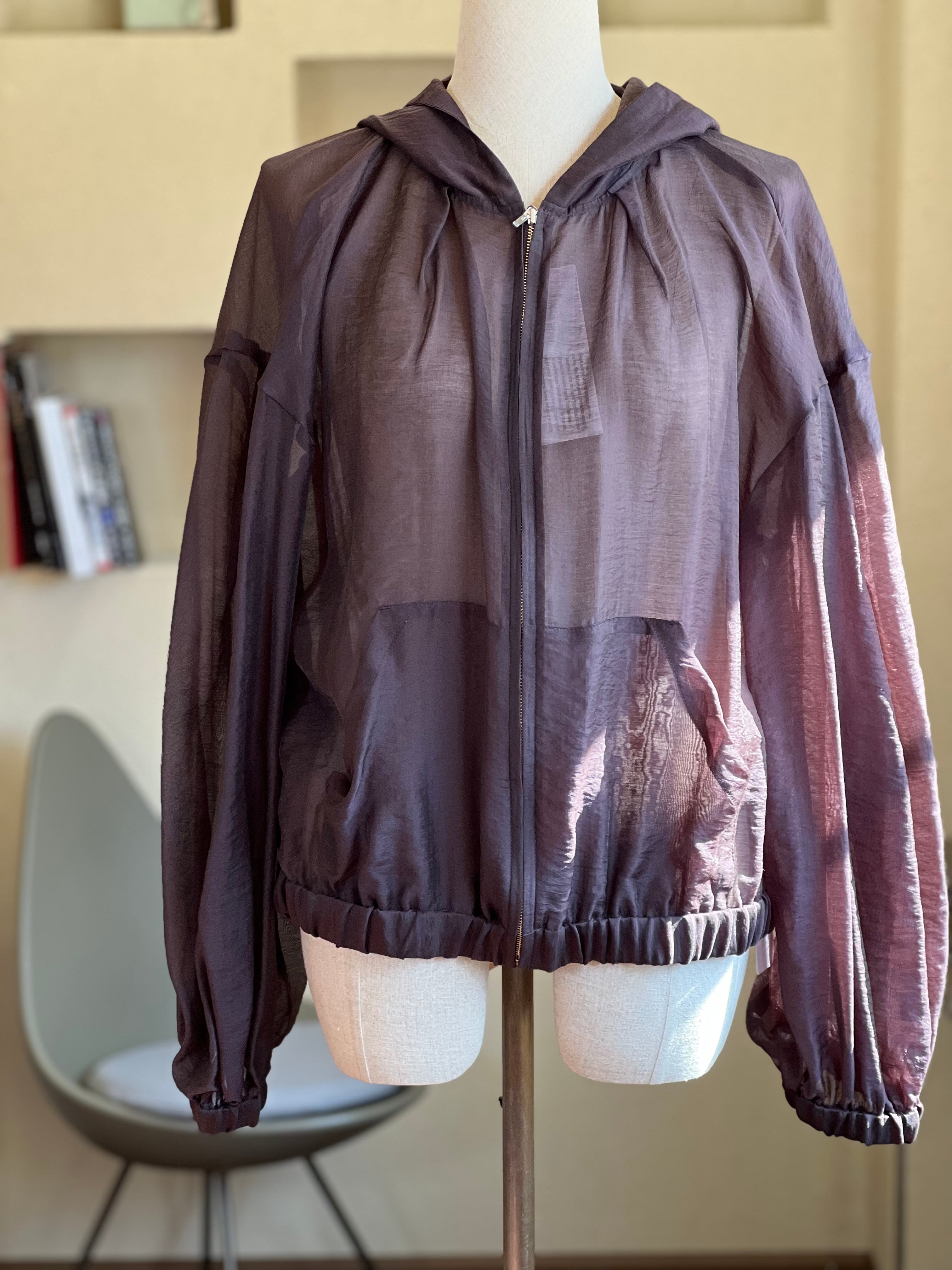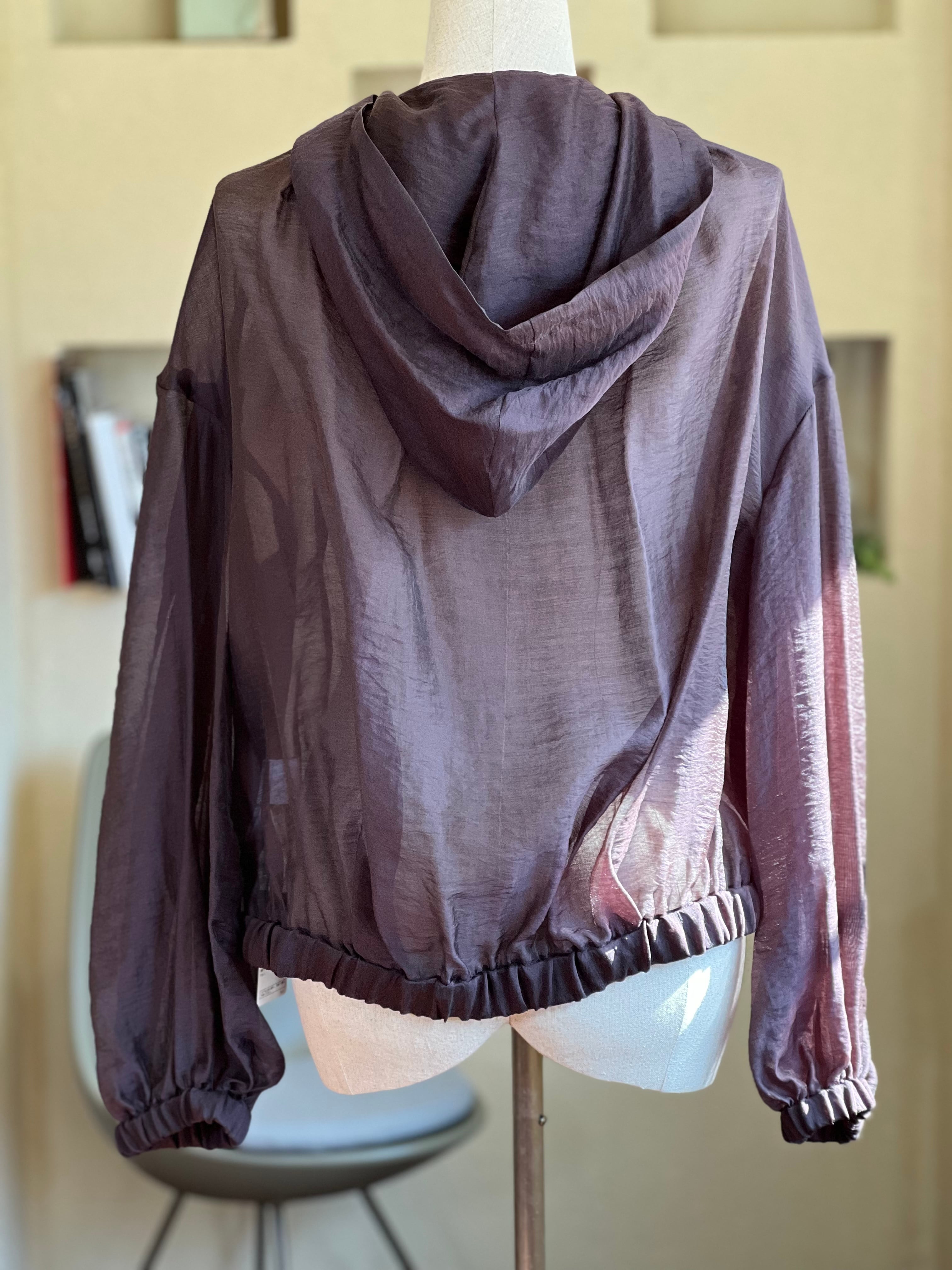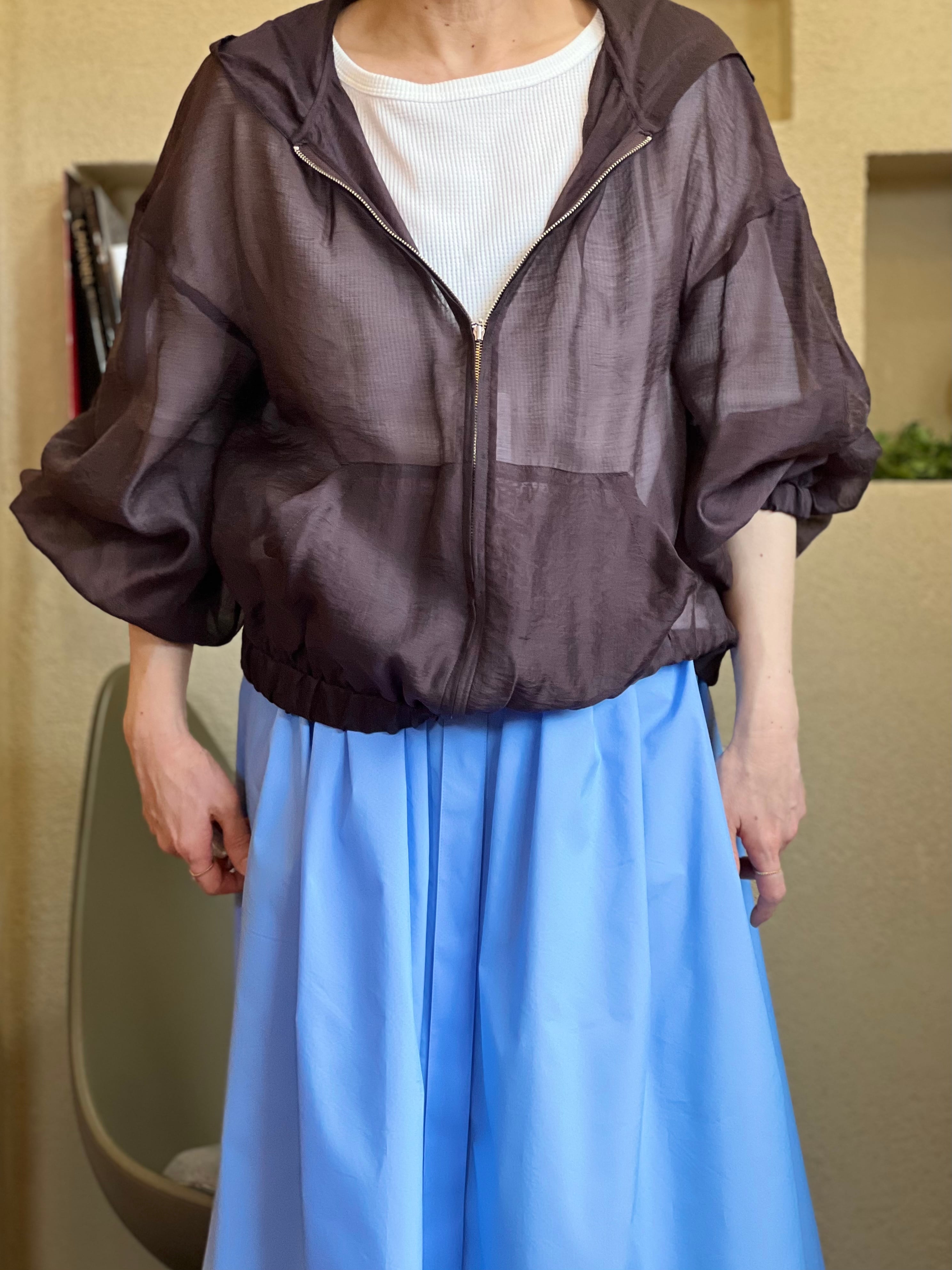 控えめな光沢感&シアー素材のボリュームジップアップフーディー